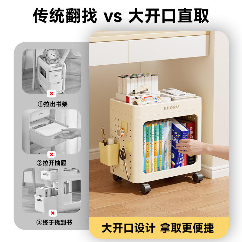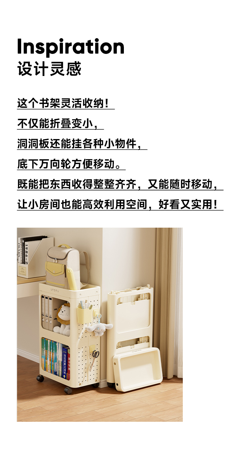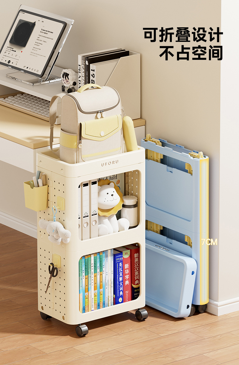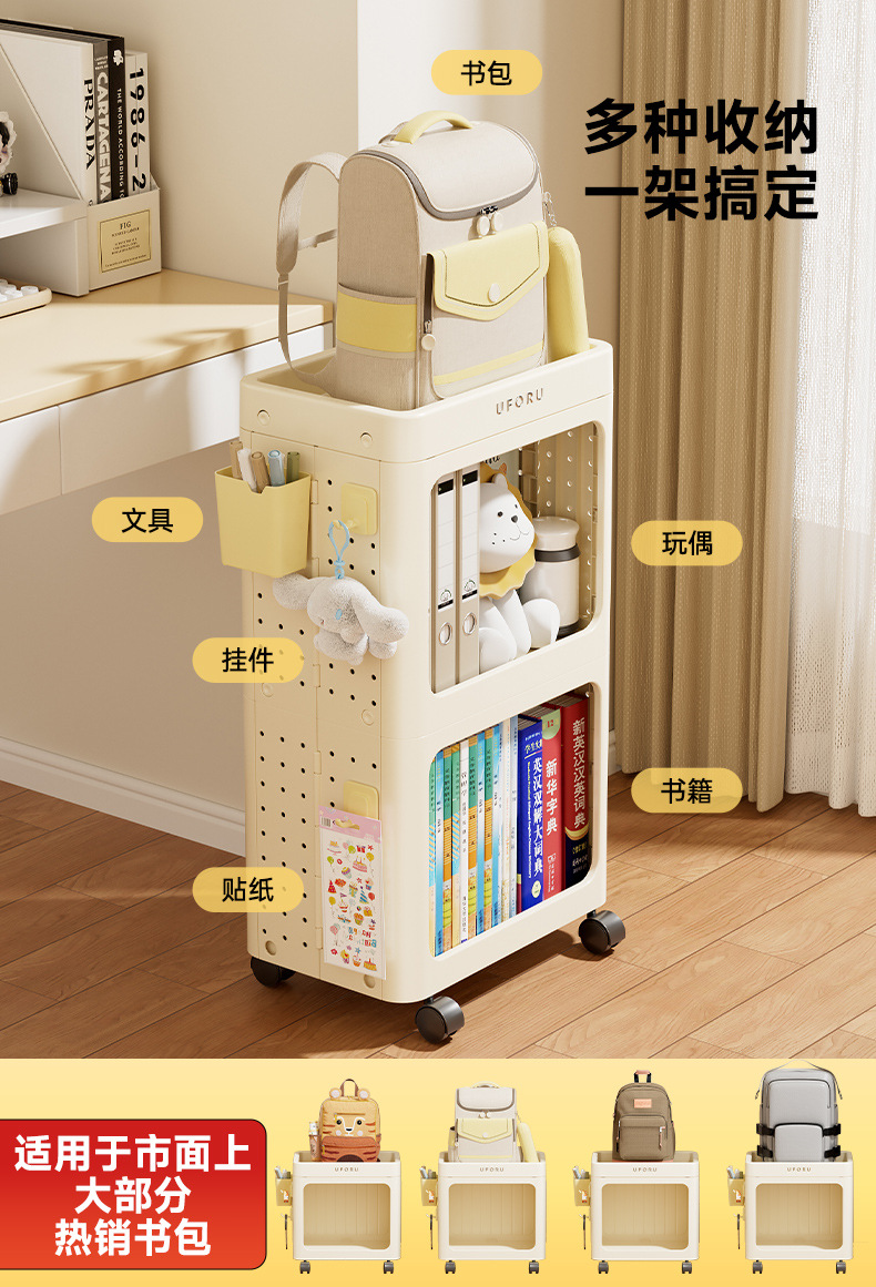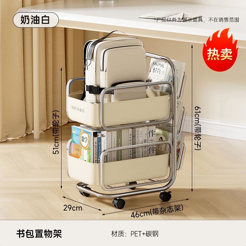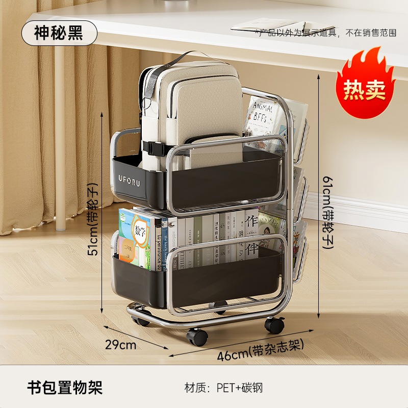 书包置物架桌下书本收纳整理可折叠可移动收纳架子落地多层小推车