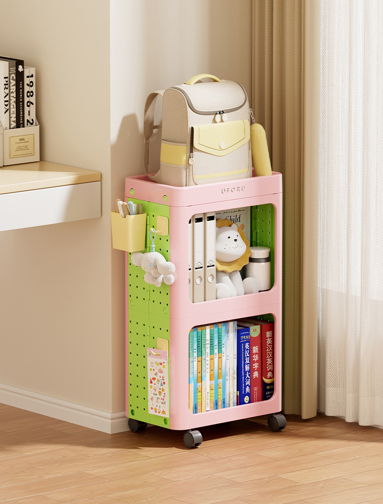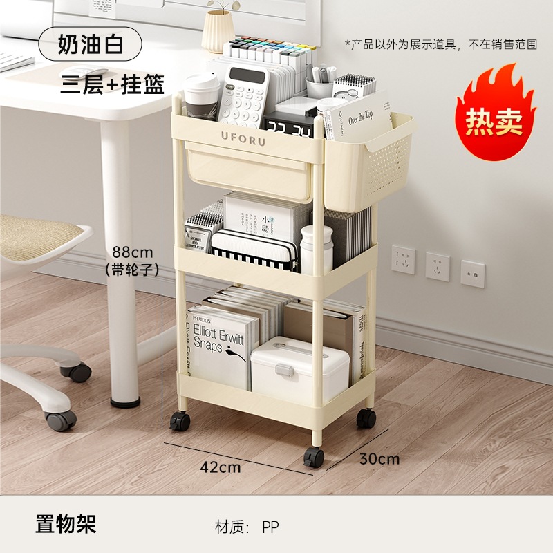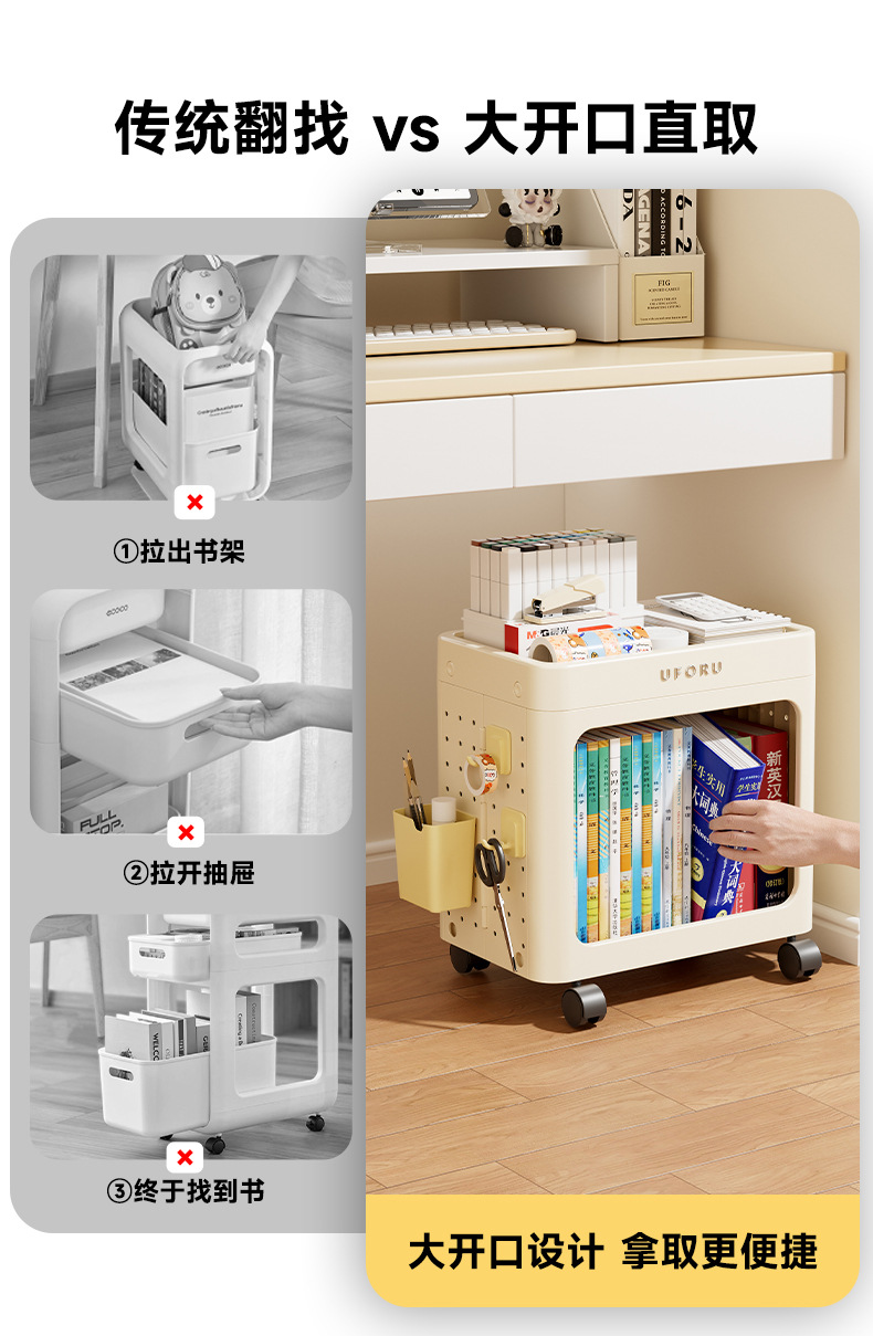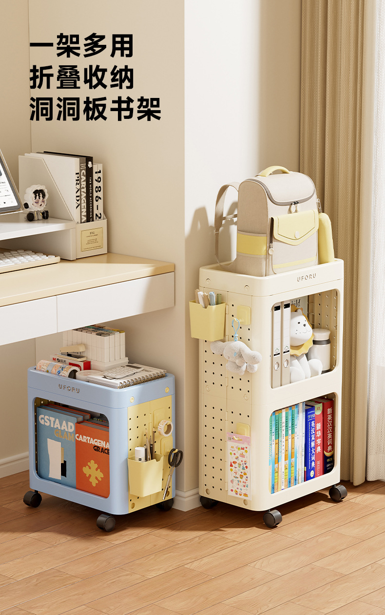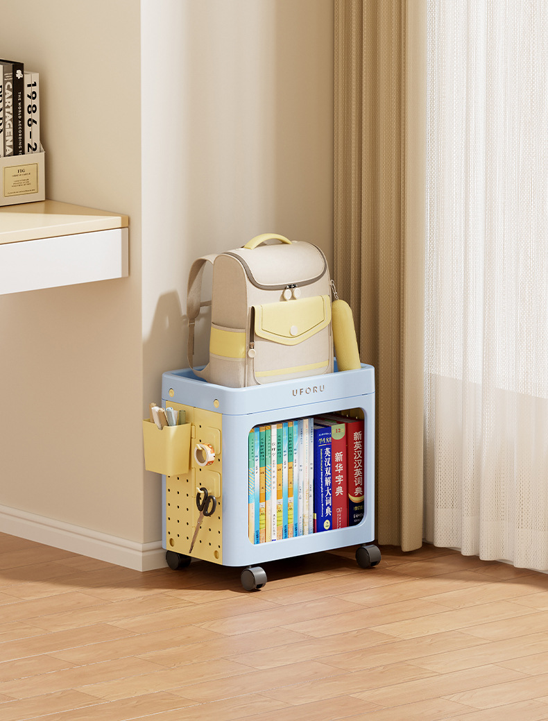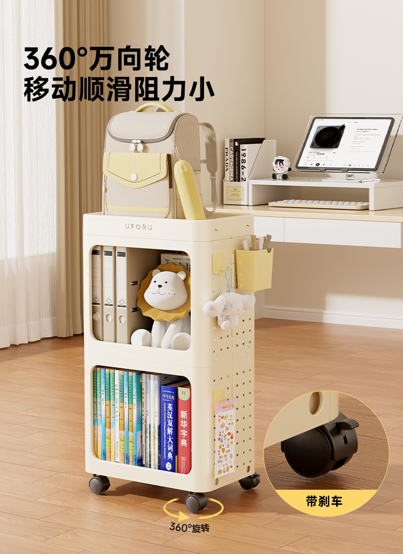 书包置物架桌下书本收纳整理可折叠可移动收纳架子落地多层小推车