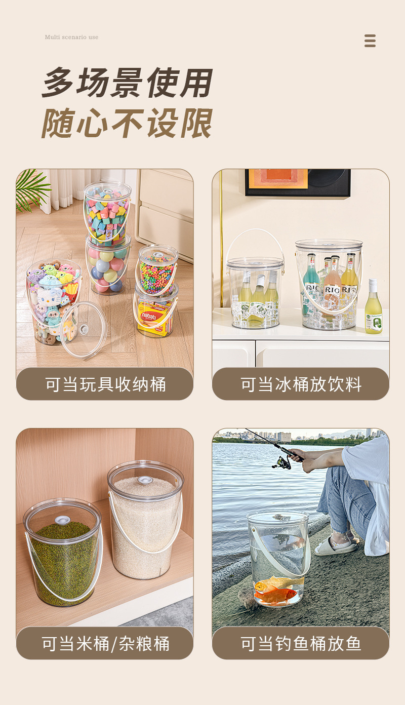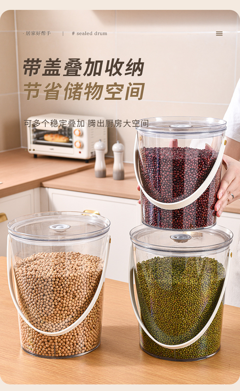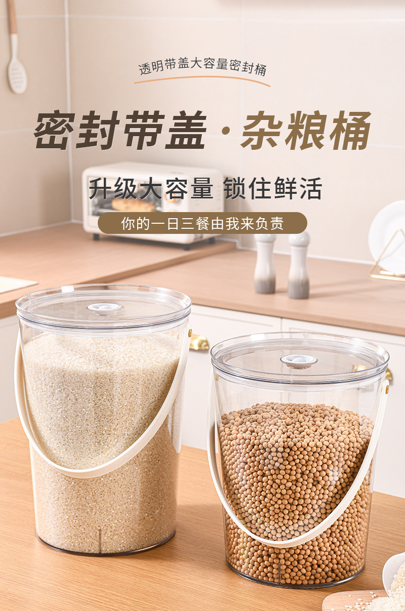 手提密封罐家用食品级塑料防潮五谷杂粮茶叶收纳透明收纳桶带盖子