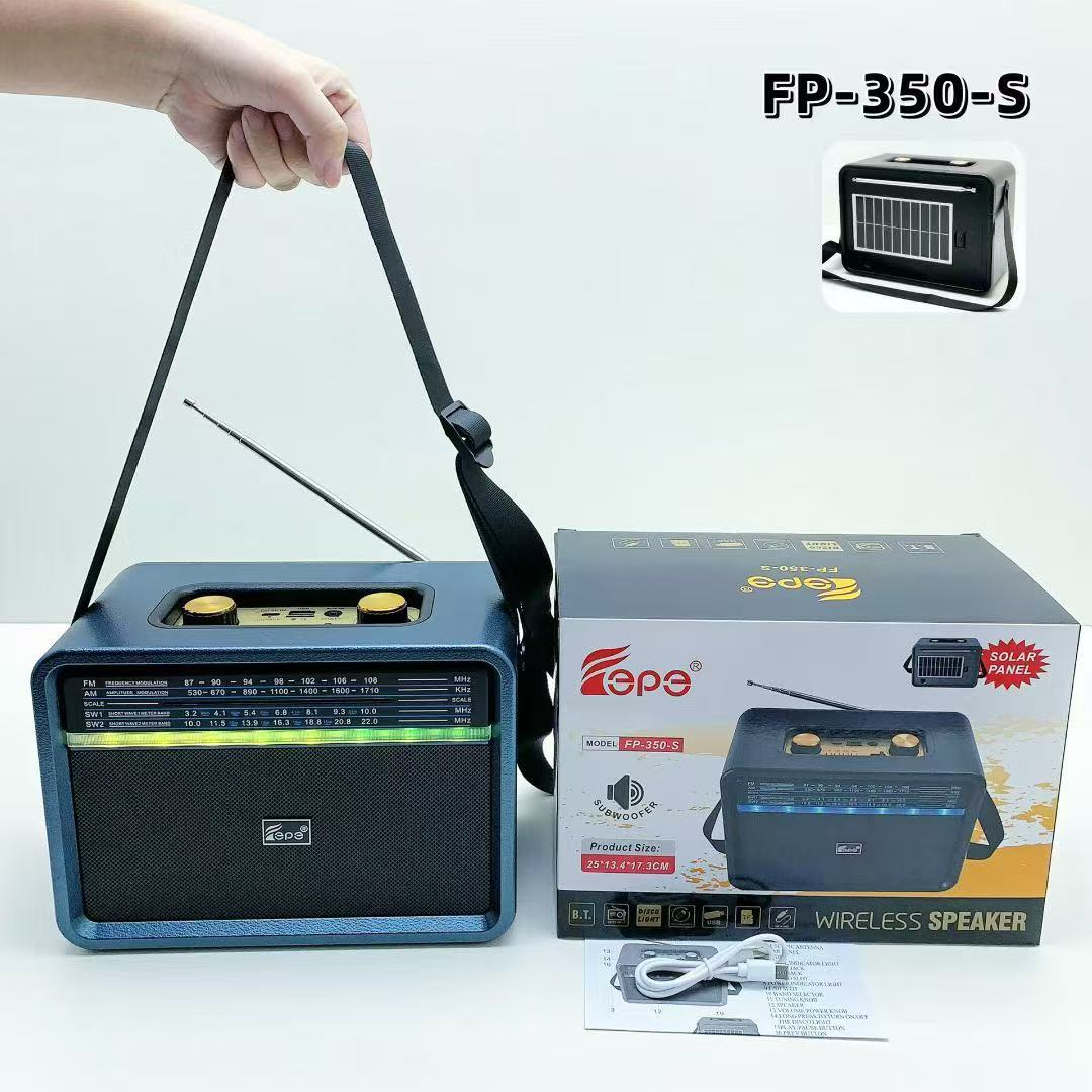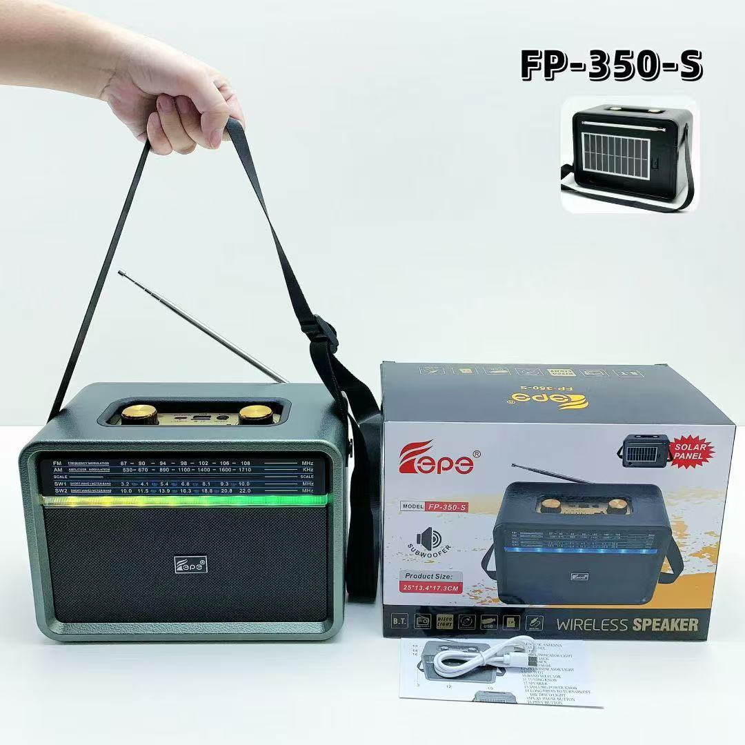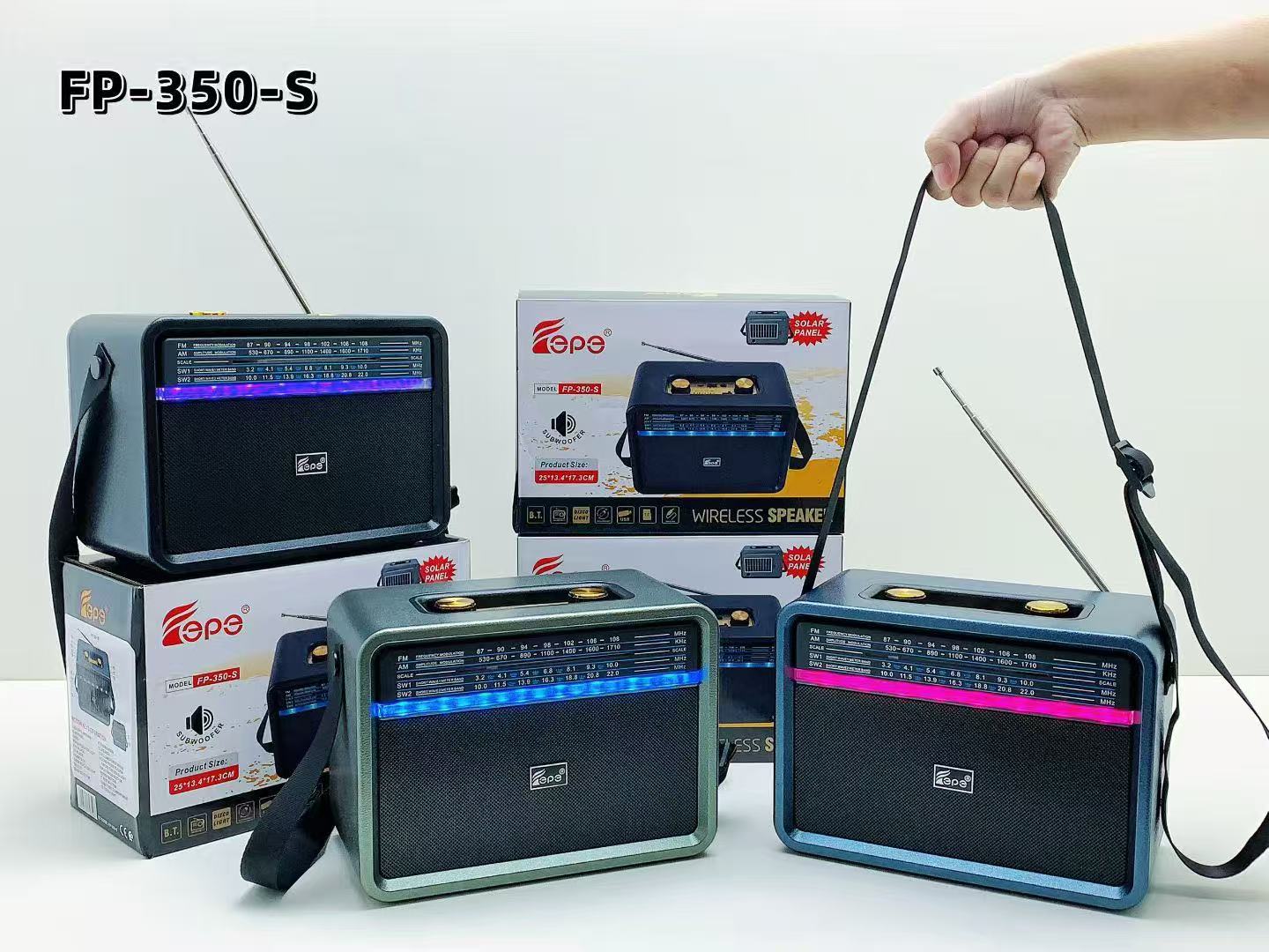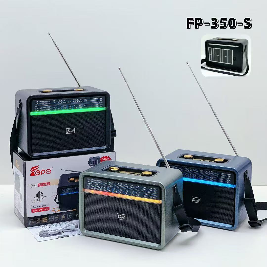 FP-350-S跨境太阳能蓝牙音箱RGB手提便携式AM/FM/SW/多功能收音机