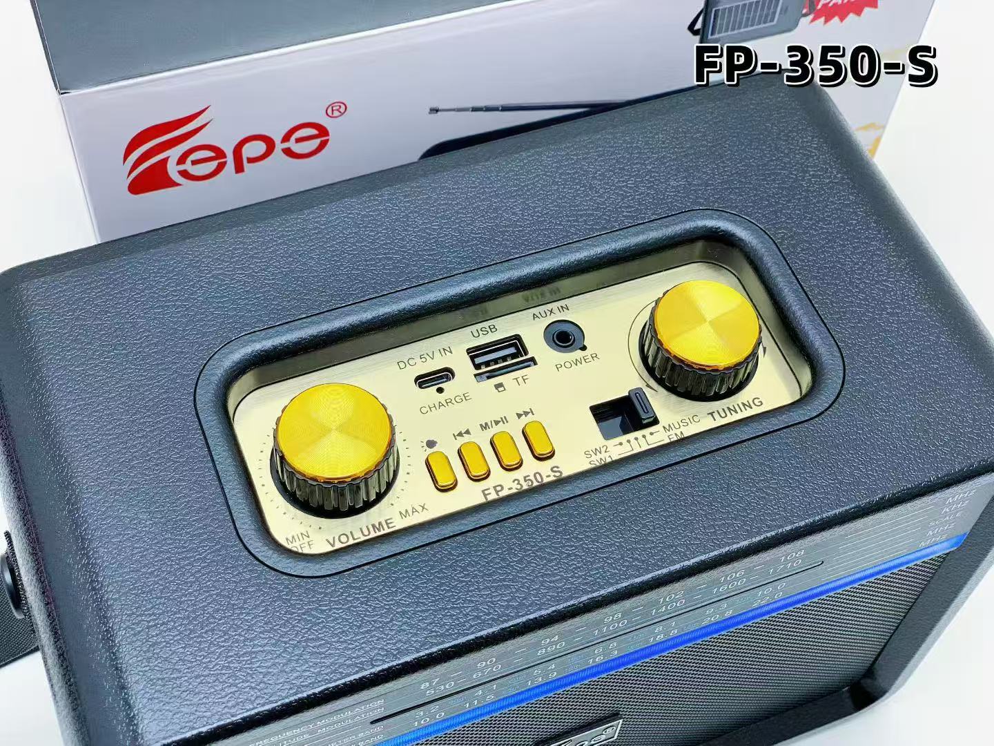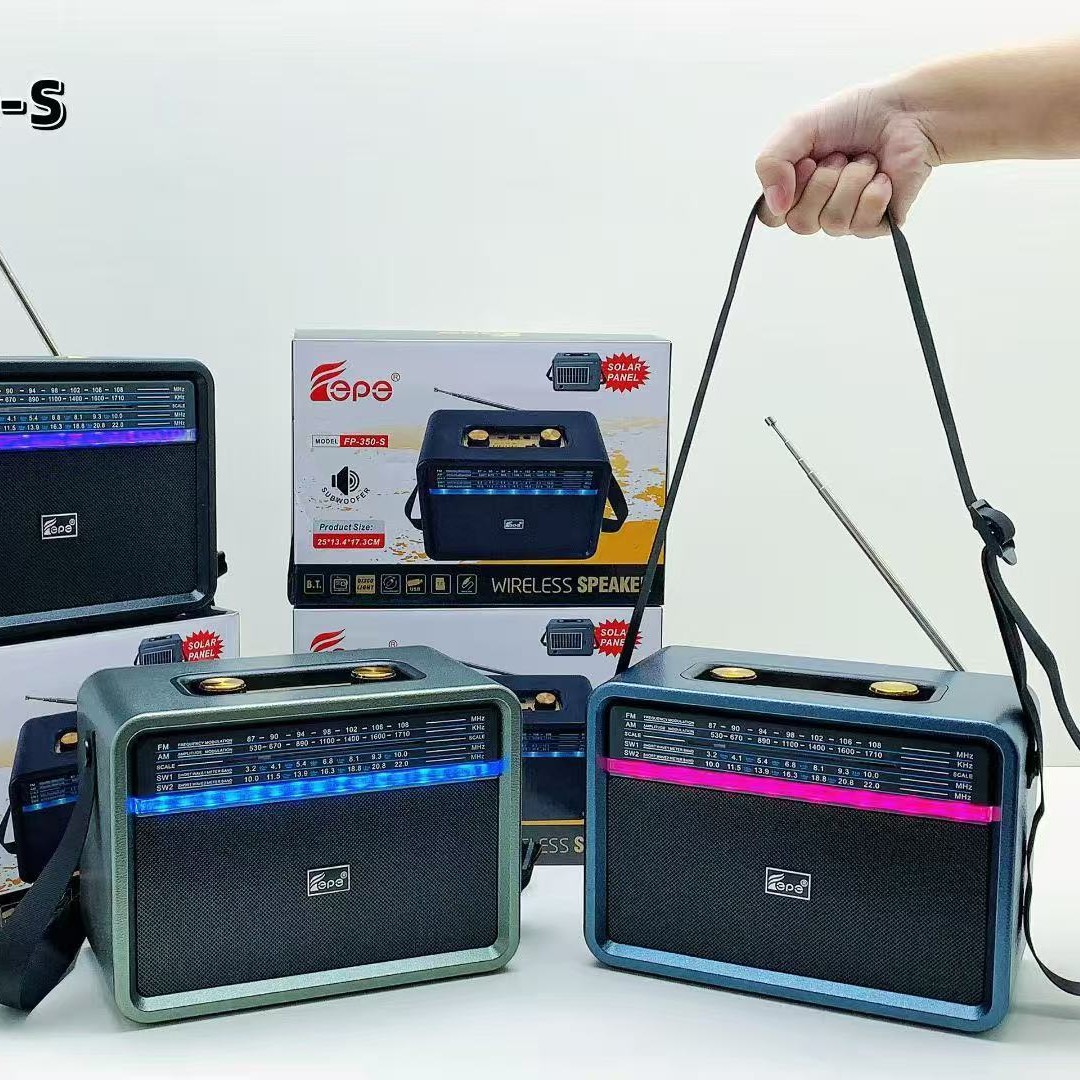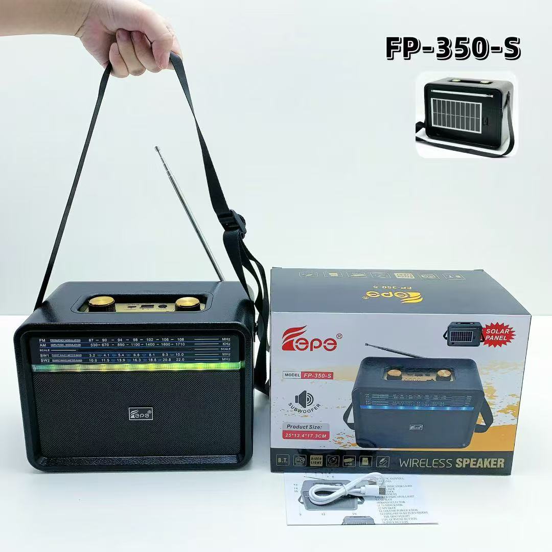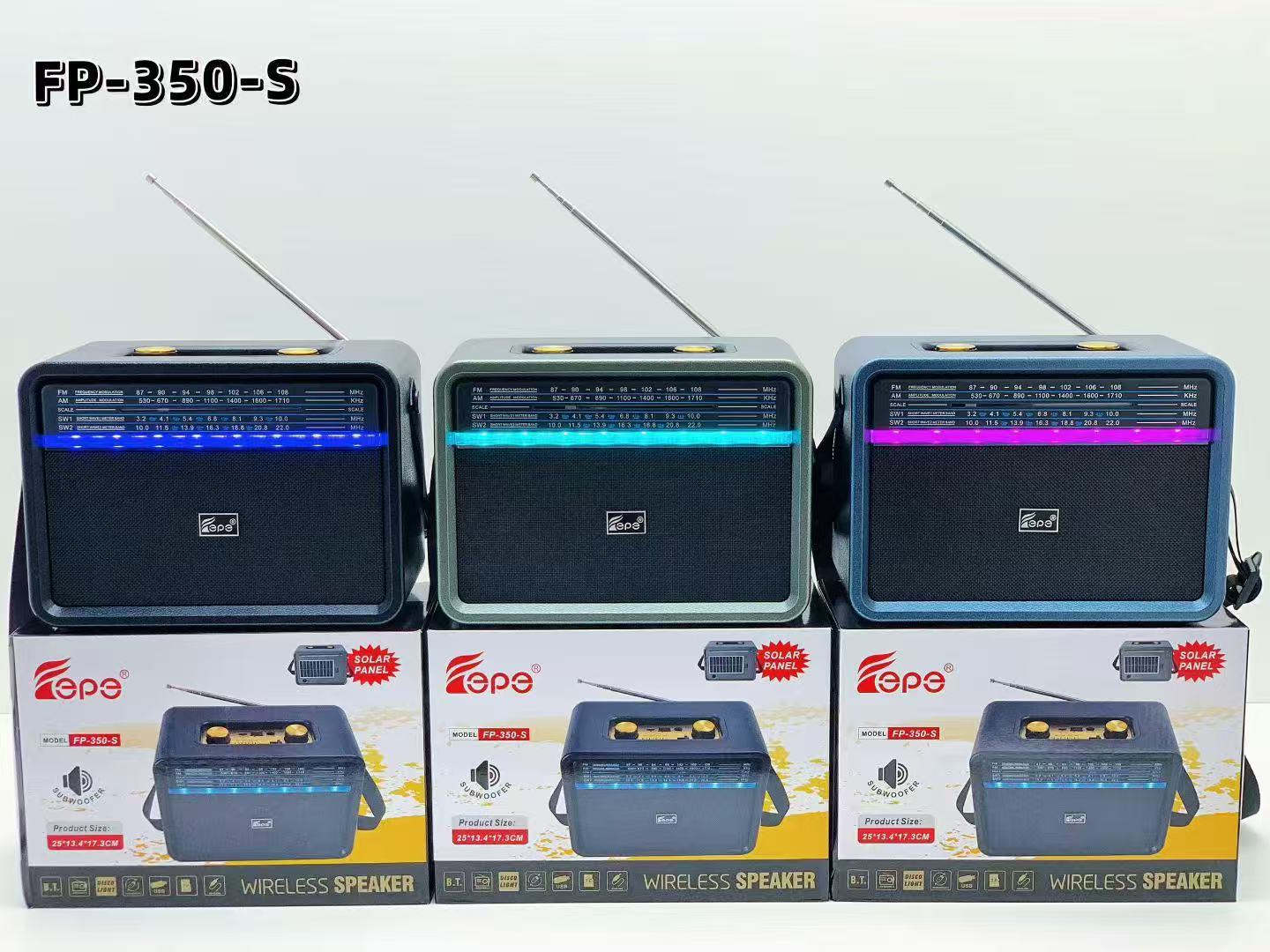 FP-350-S跨境太阳能蓝牙音箱RGB手提便携式AM/FM/SW/多功能收音机