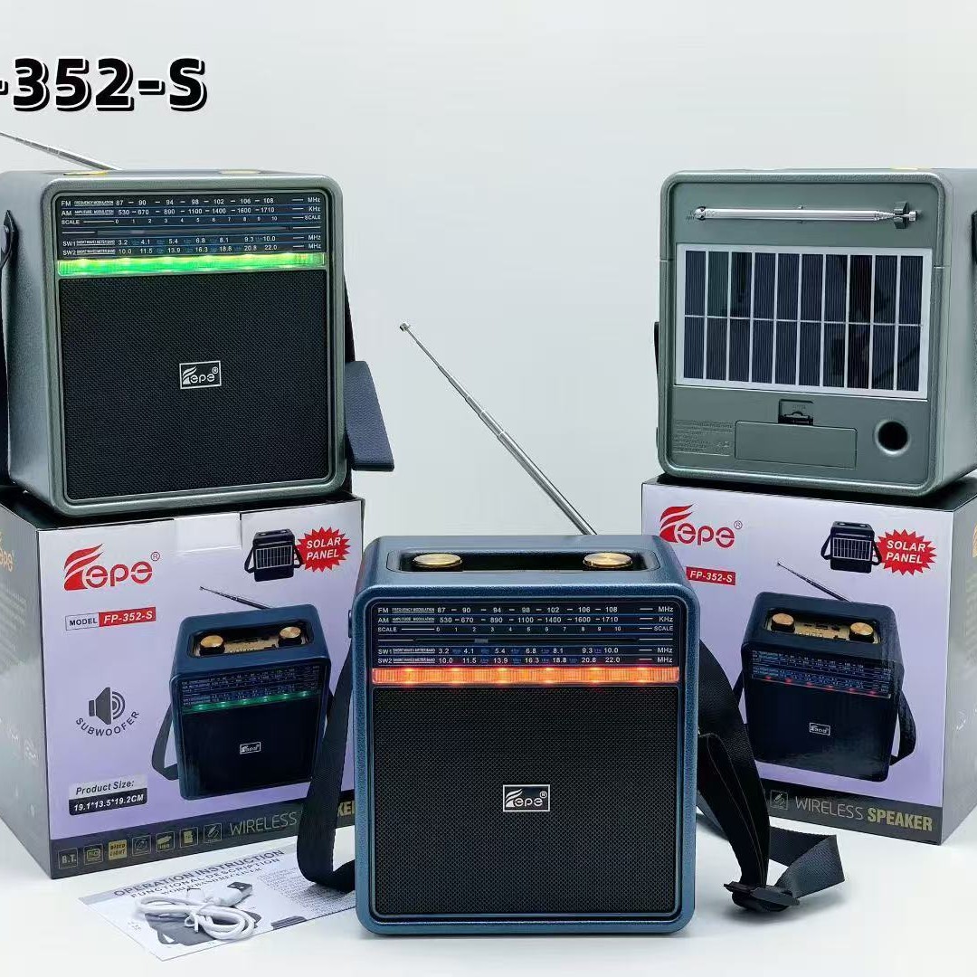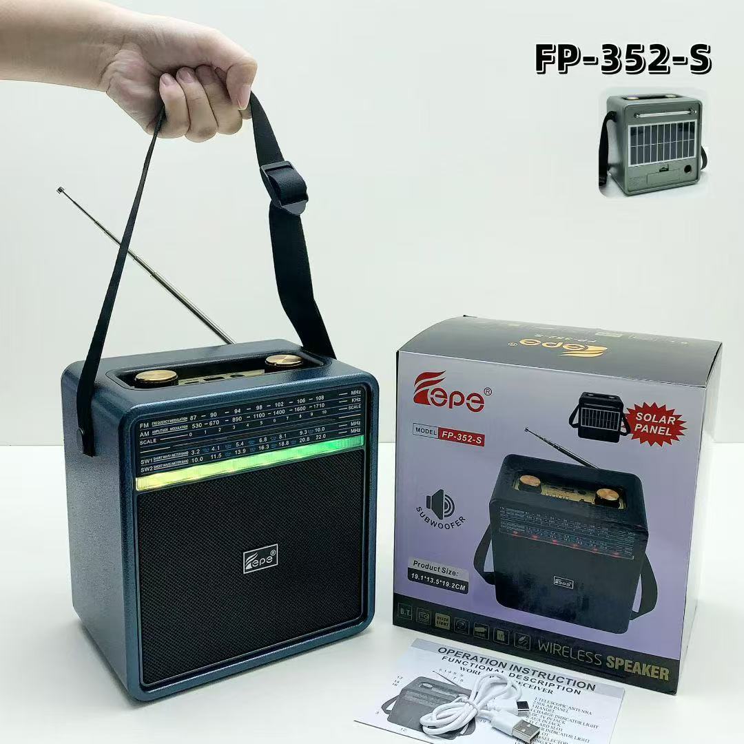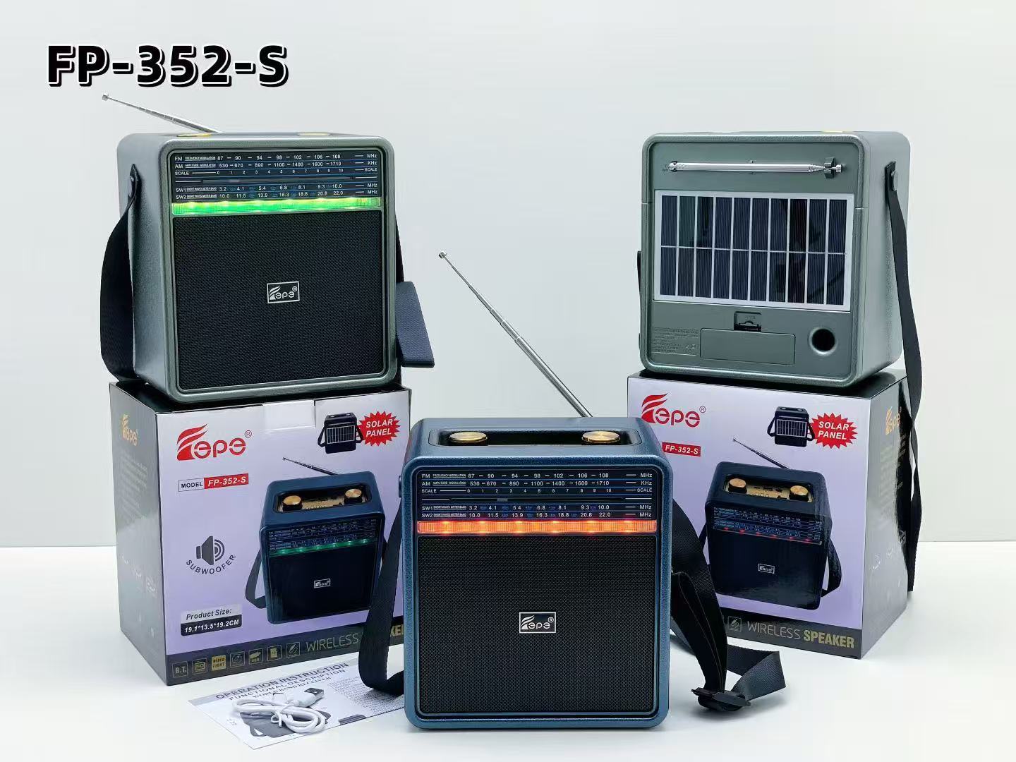 FP-352-S跨境太阳能蓝牙音箱RGB手提便携式AM/FM/SW/多功能收音机