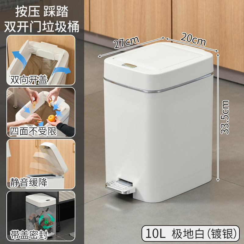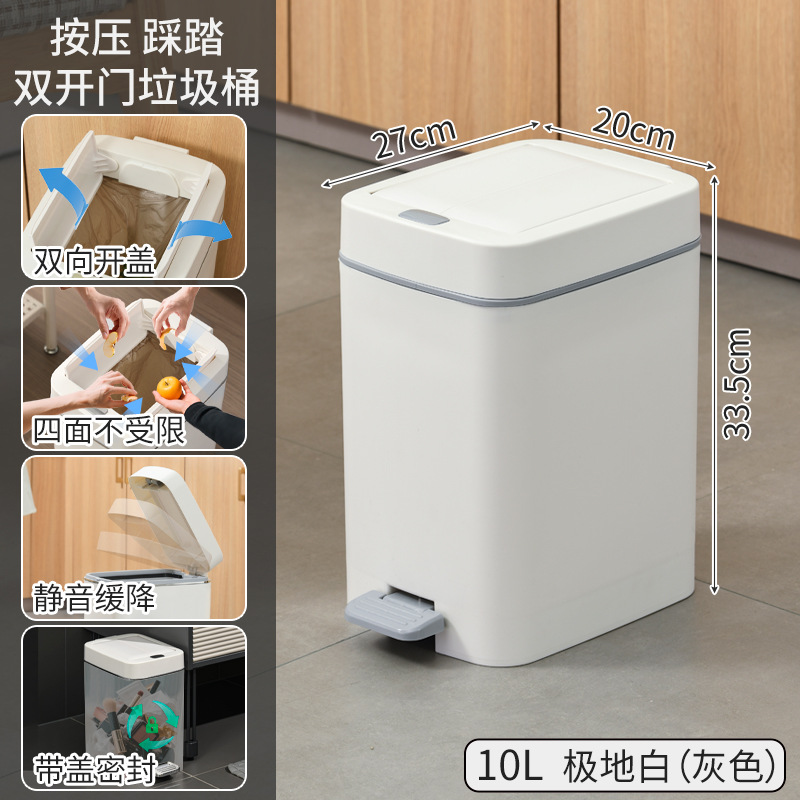 10L简约脚踏垃圾桶按压侧滑盖高级感卫生间客厅塑料垃圾筒侧开