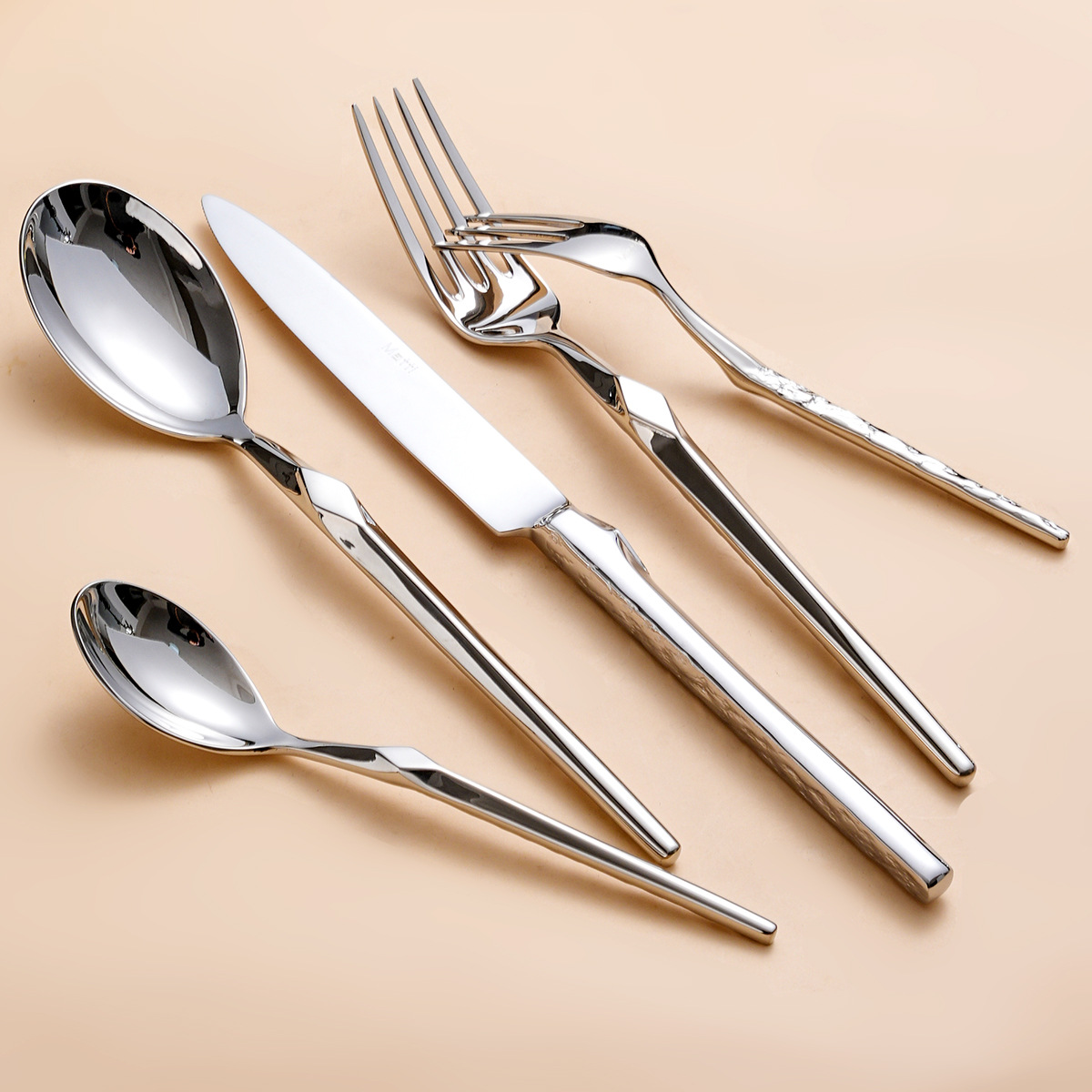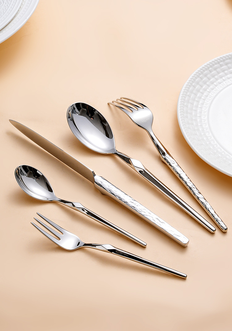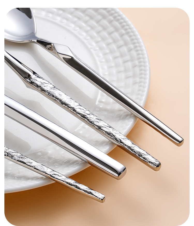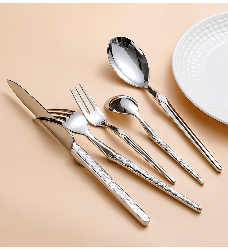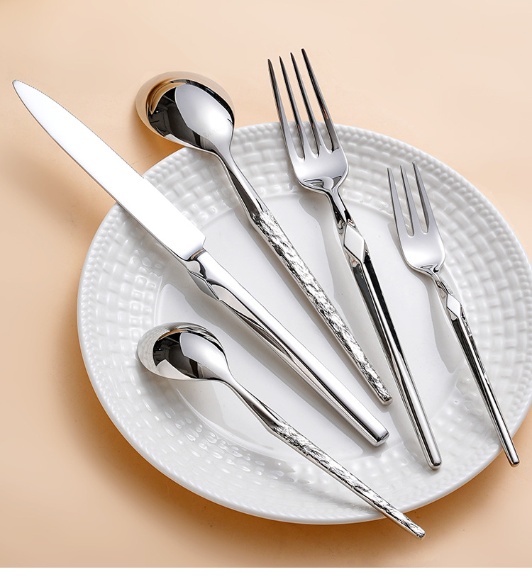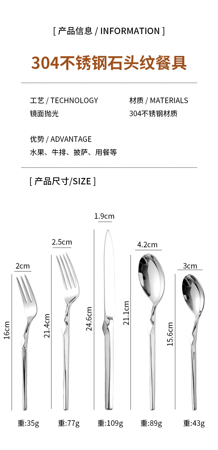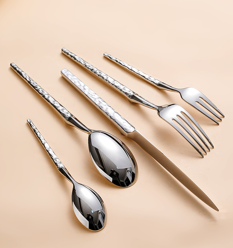 锻打石头纹304不锈钢刀叉勺酒店餐厅牛排刀加厚西餐具套装批发