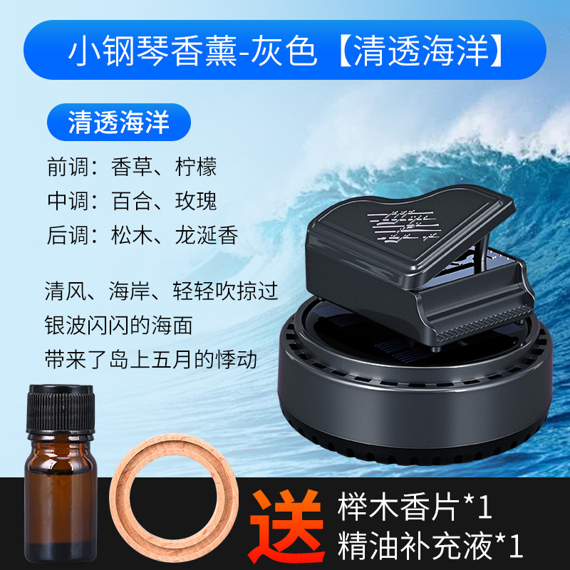 汽车太阳能创意旋转钢琴香薰摆件车载香水座车用内饰装饰品香氛