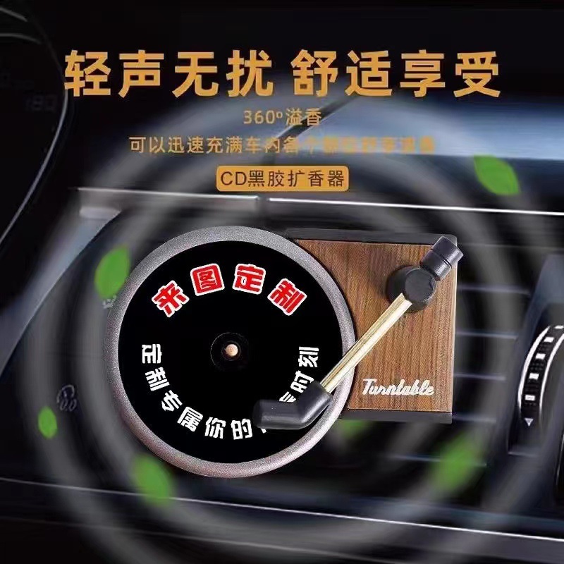 厂家批发复古唱片机香薰出风口旋转香膏片车内香膏片香水装饰摆件