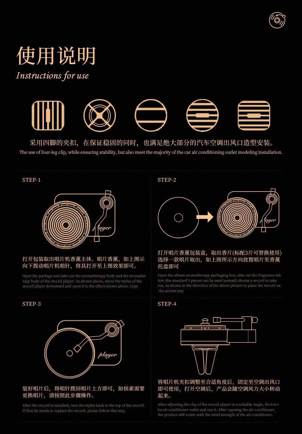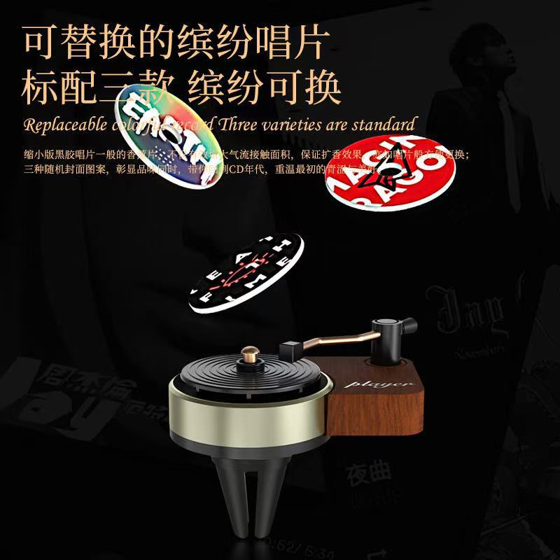 车载香薰复古唱片机香薰车载饰品摆件汽车用品香薰香水出风口香薰