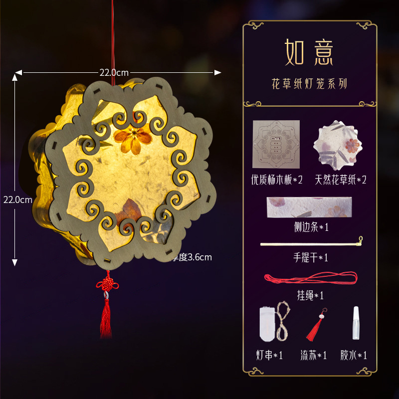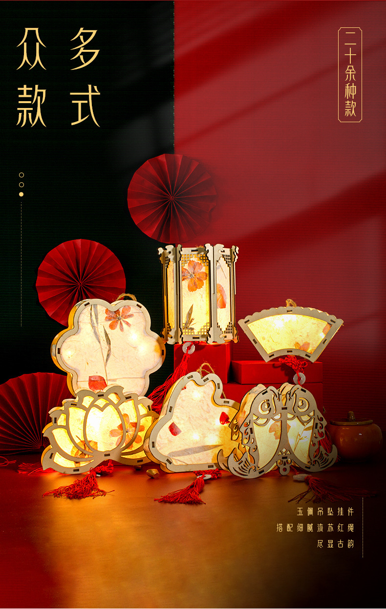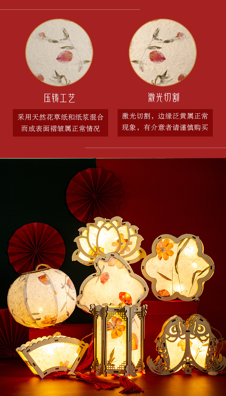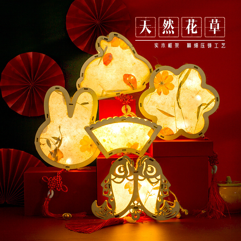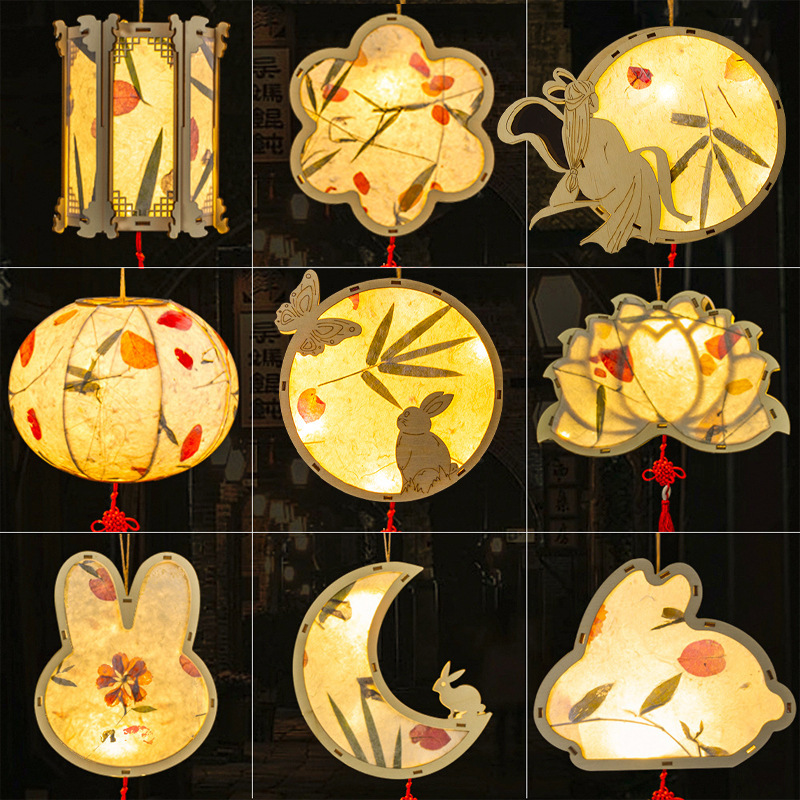 中秋节复古灯笼儿童手工diy材料木质古风花草纸手提宫灯彩花灯批
