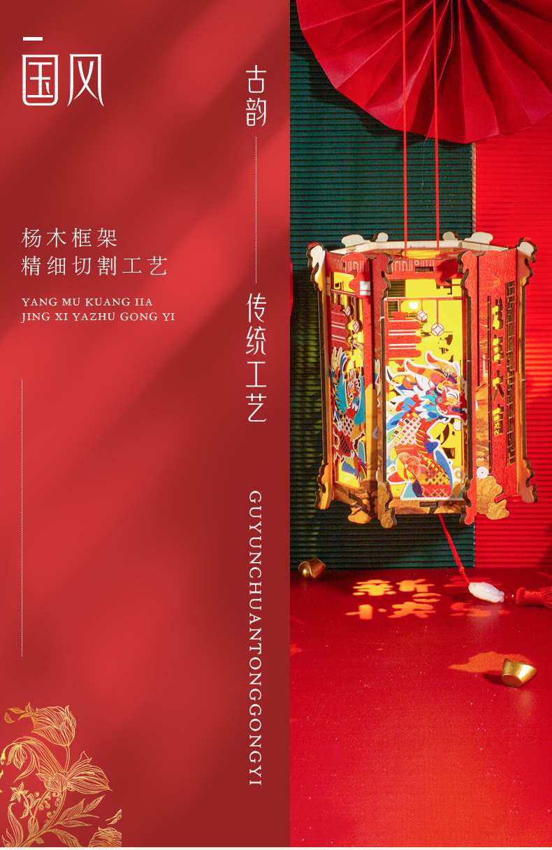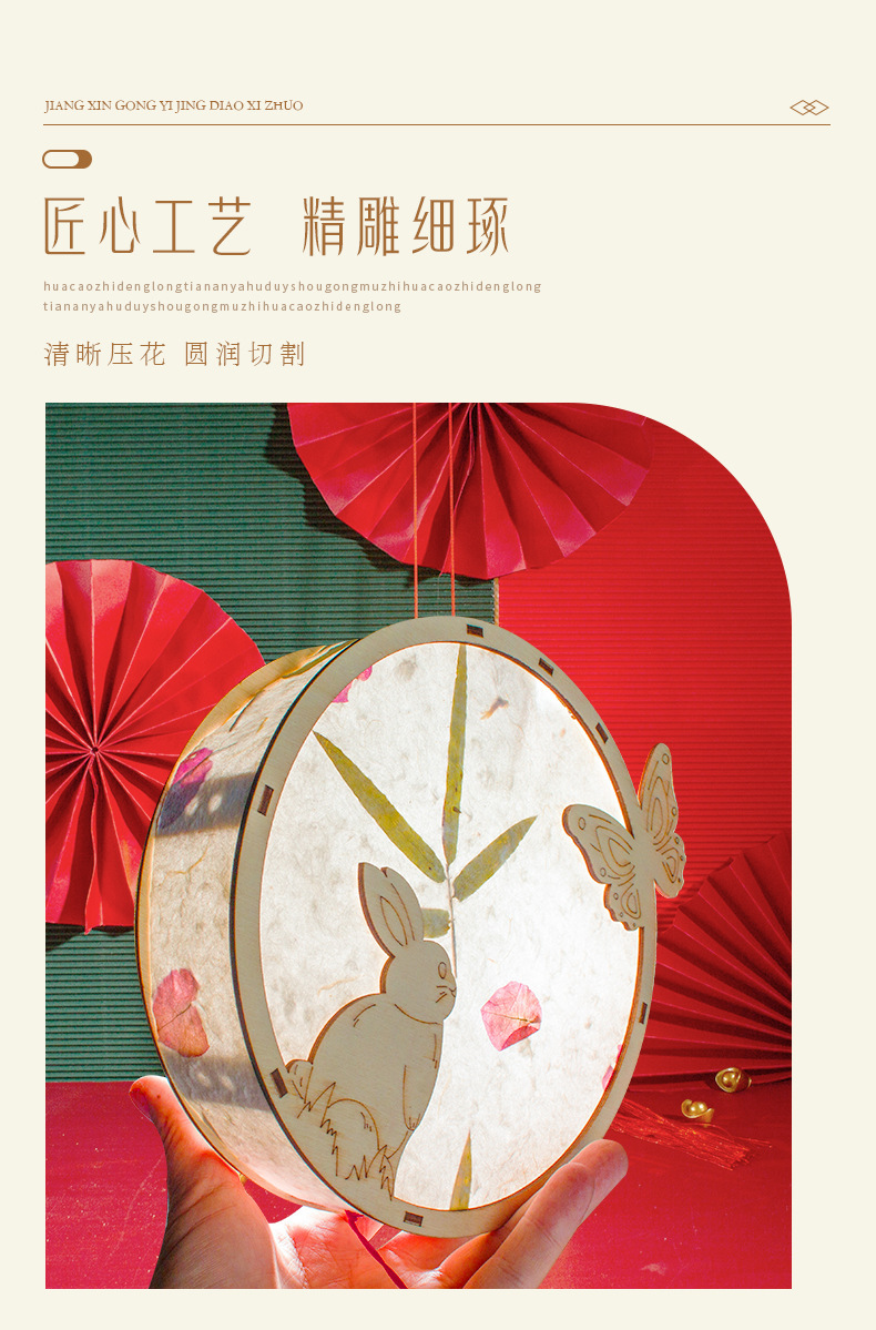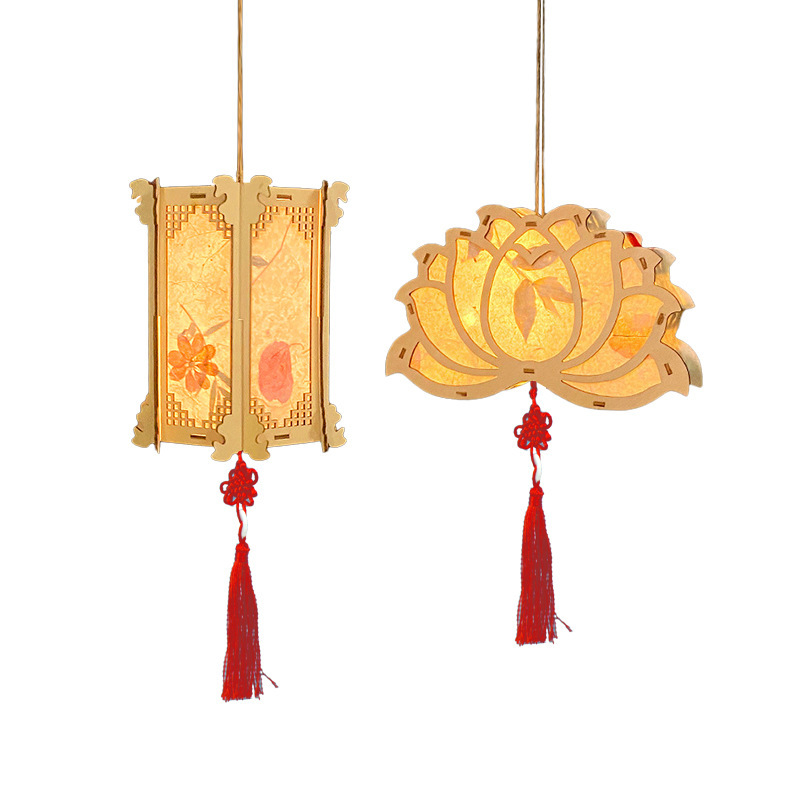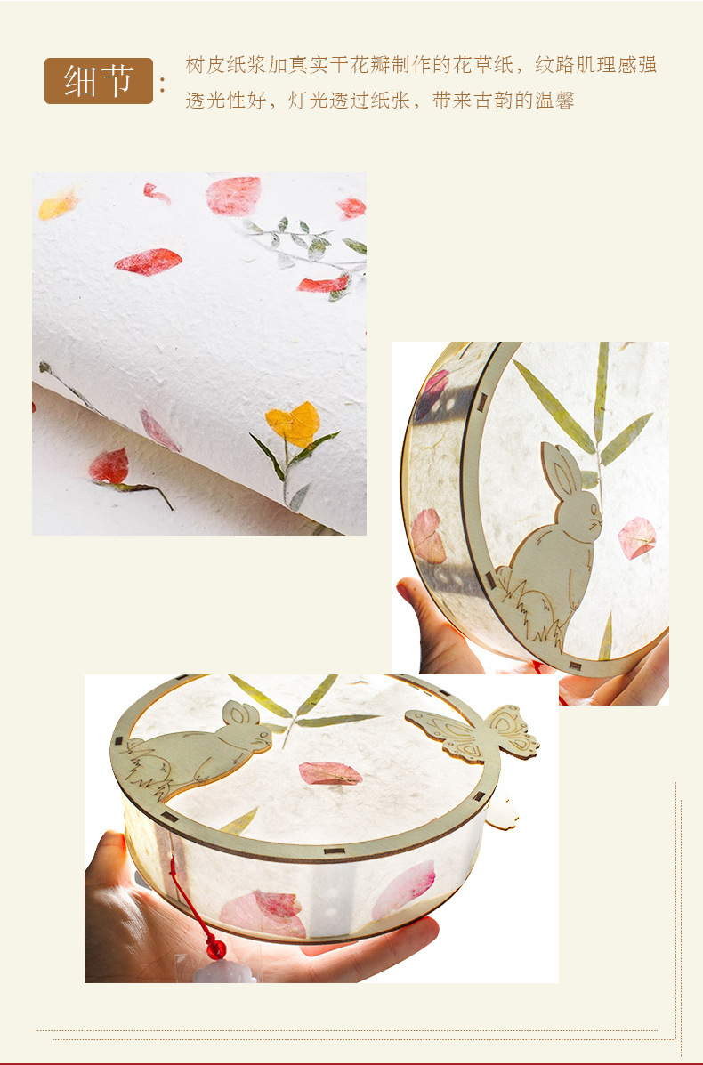 中秋节复古灯笼儿童手工diy材料木质古风花草纸手提宫灯彩花灯批