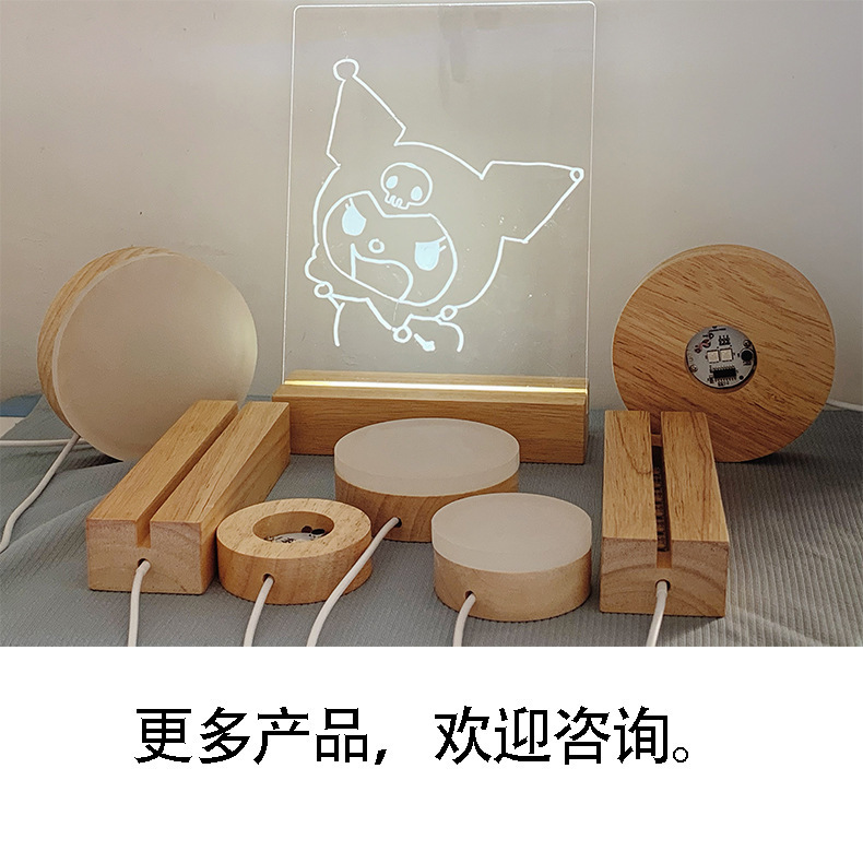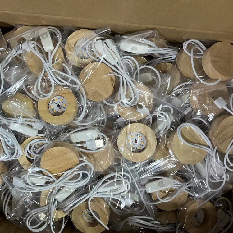 电池盒款亚马逊圆形实木发光底座LED水晶灯座小夜灯7号电池带开关