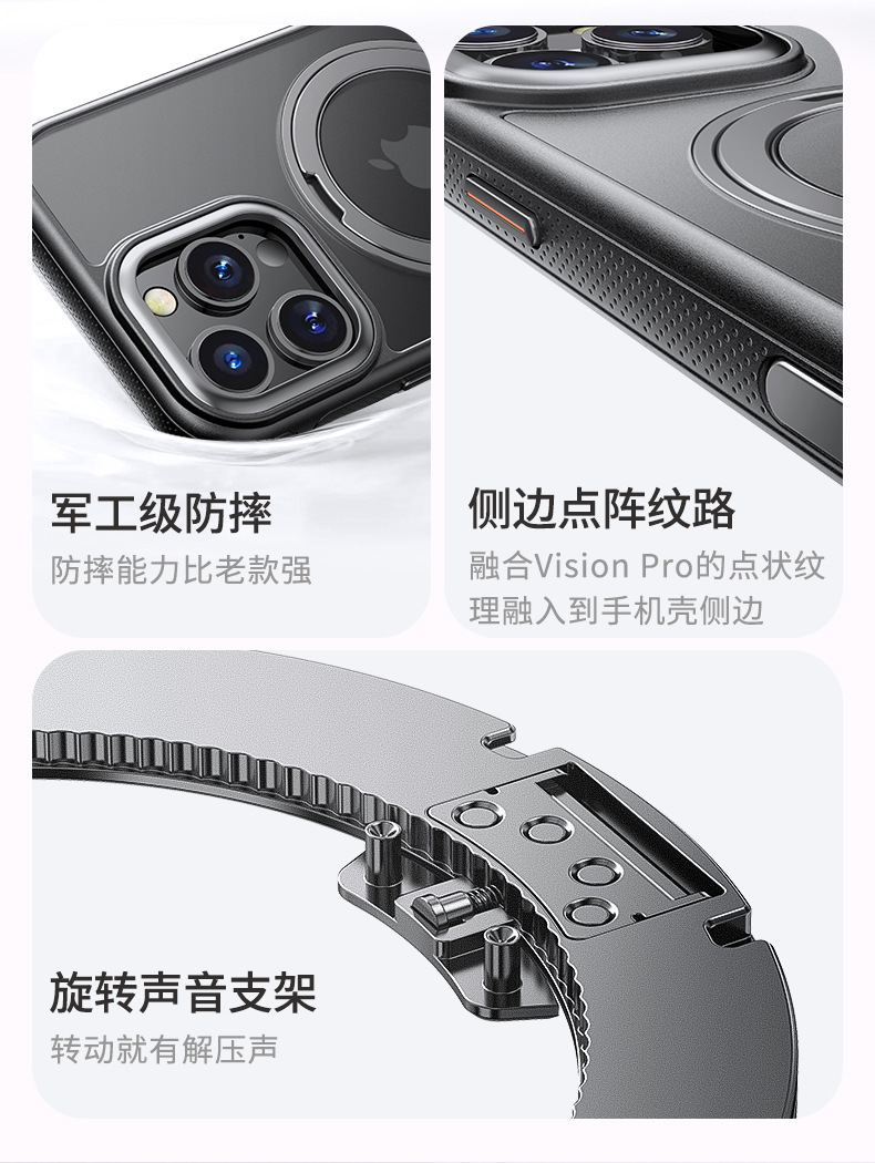 适用iPhone16pro手机壳齿轮360磁吸支架苹果16手机壳带AI触控按键