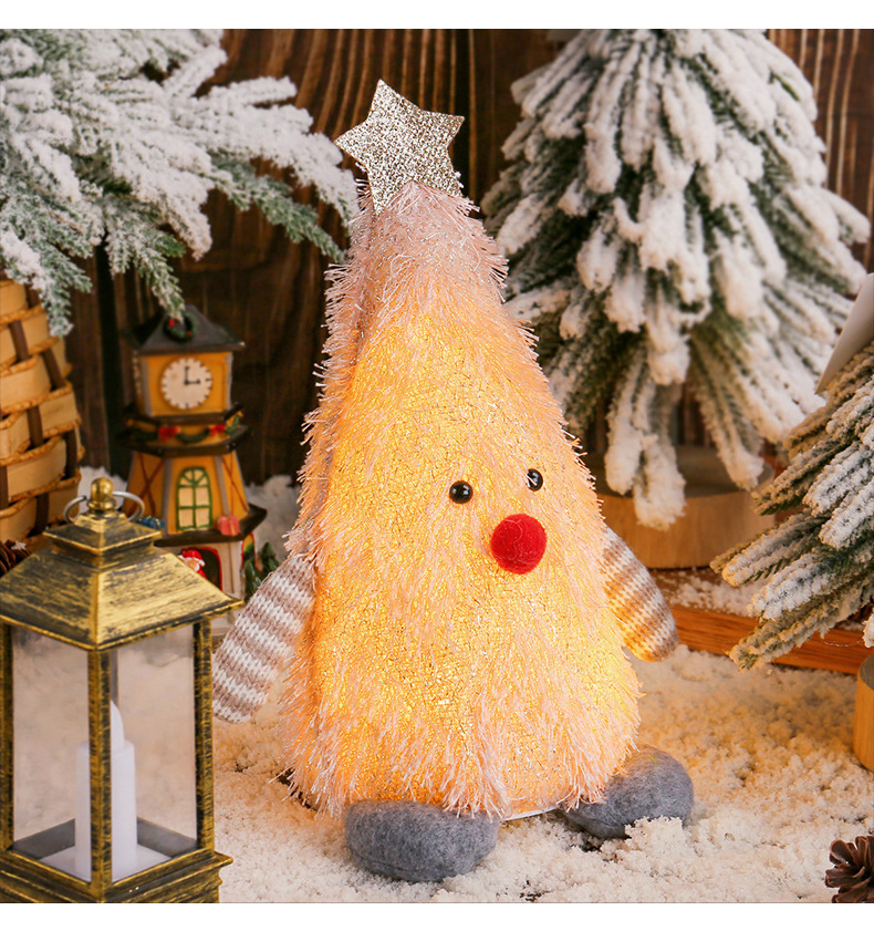 创意圣诞树形带灯公仔摆件 发光站姿圣诞小树桌面装饰树圣诞用品