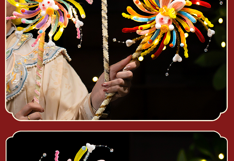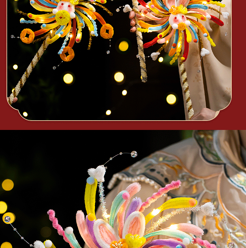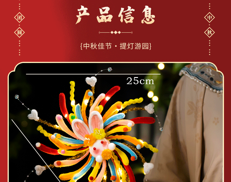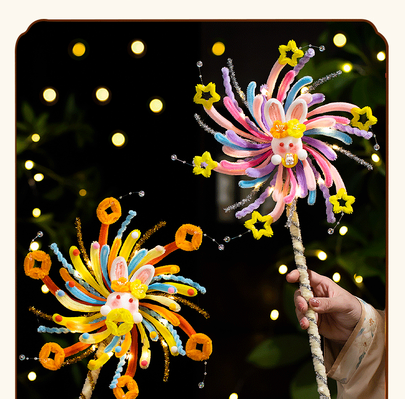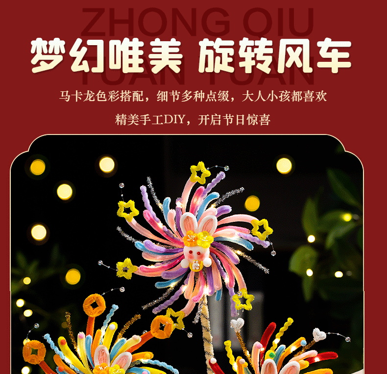 中秋节灯笼 儿童手工diy材料古风发光手提花灯兔子扭扭棒旋转风车