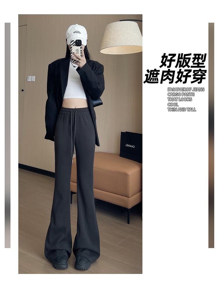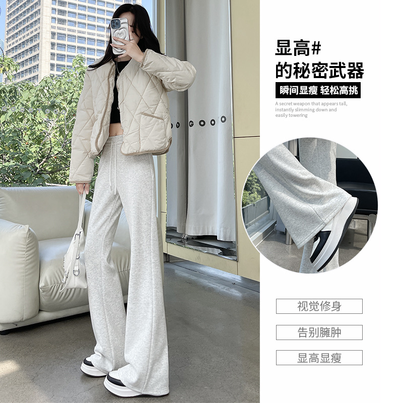 灰色微喇运动裤子女春秋2025新款高腰显瘦垂感休闲喇叭马蹄裤长裤