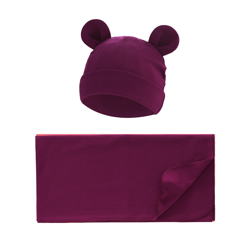 外贸欧美新生儿襁褓包巾弹力婴儿抱被帽子发带三件套821040