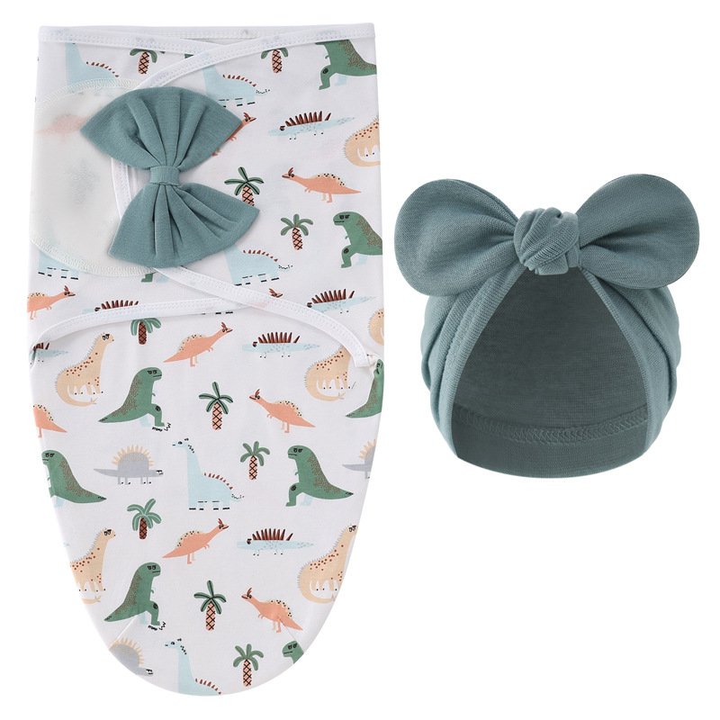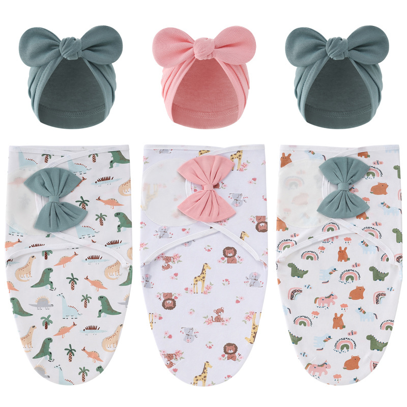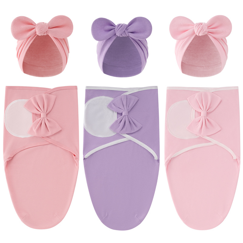 外贸欧美新生儿蝴蝶结襁褓婴儿春蚕睡袋宝宝印度帽产房包巾