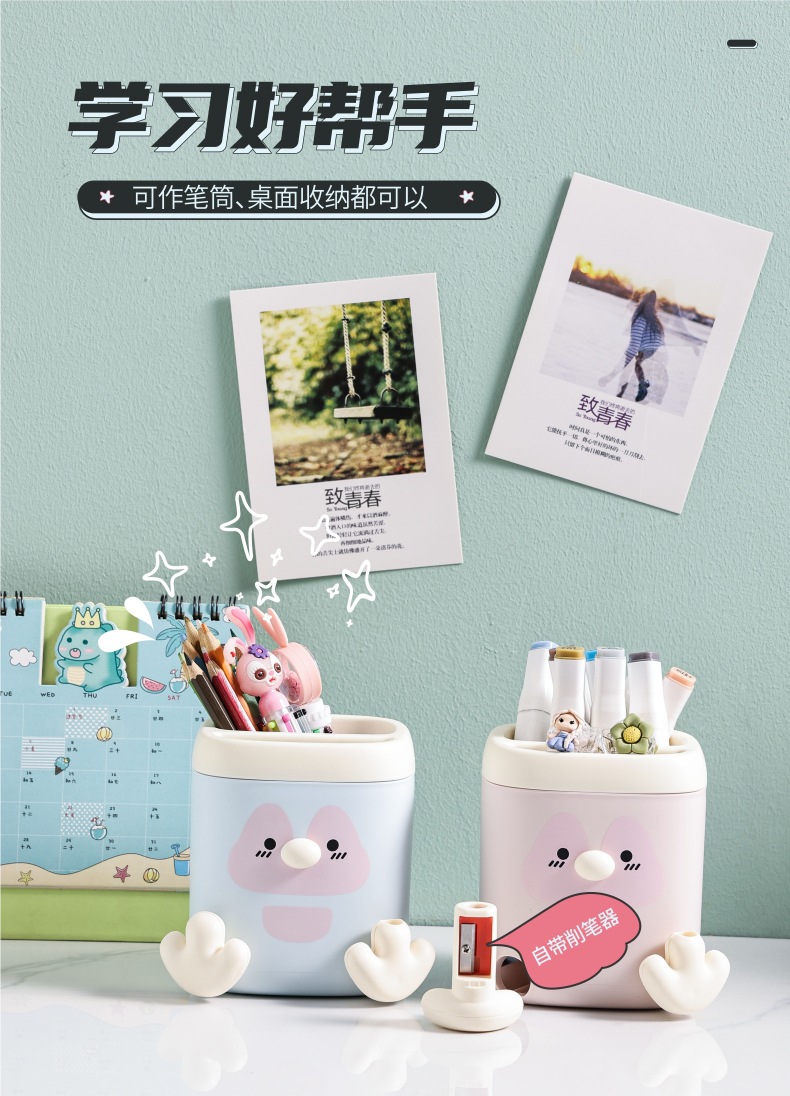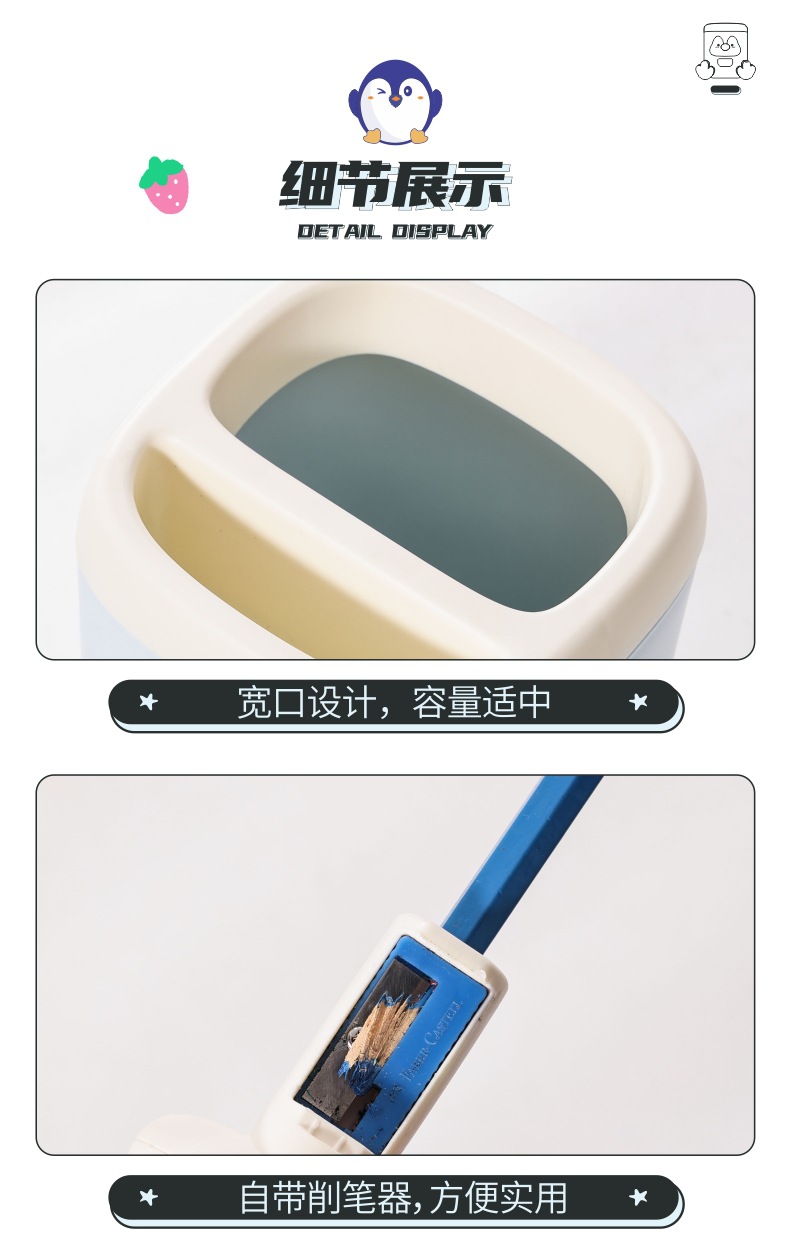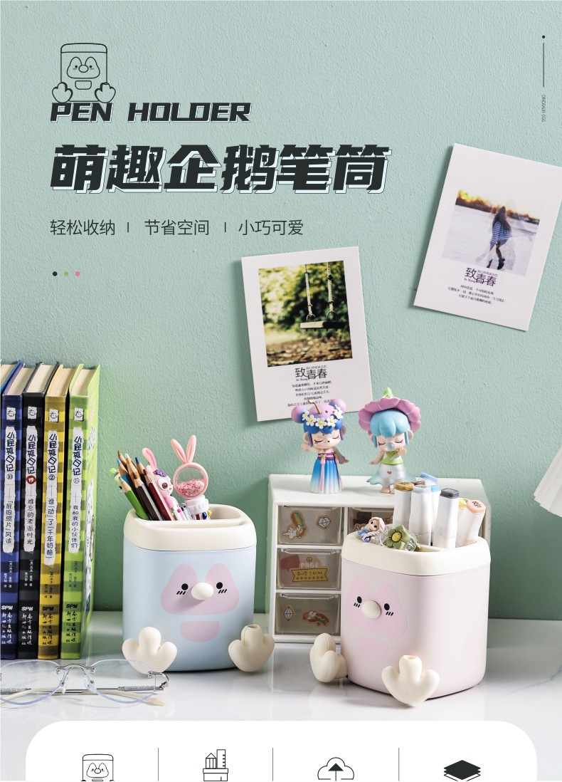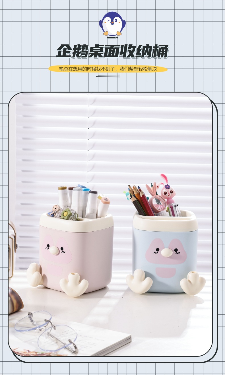 新品创意卡通企鹅笔筒办公文具桌面收纳筒带削笔刀多功能笔筒