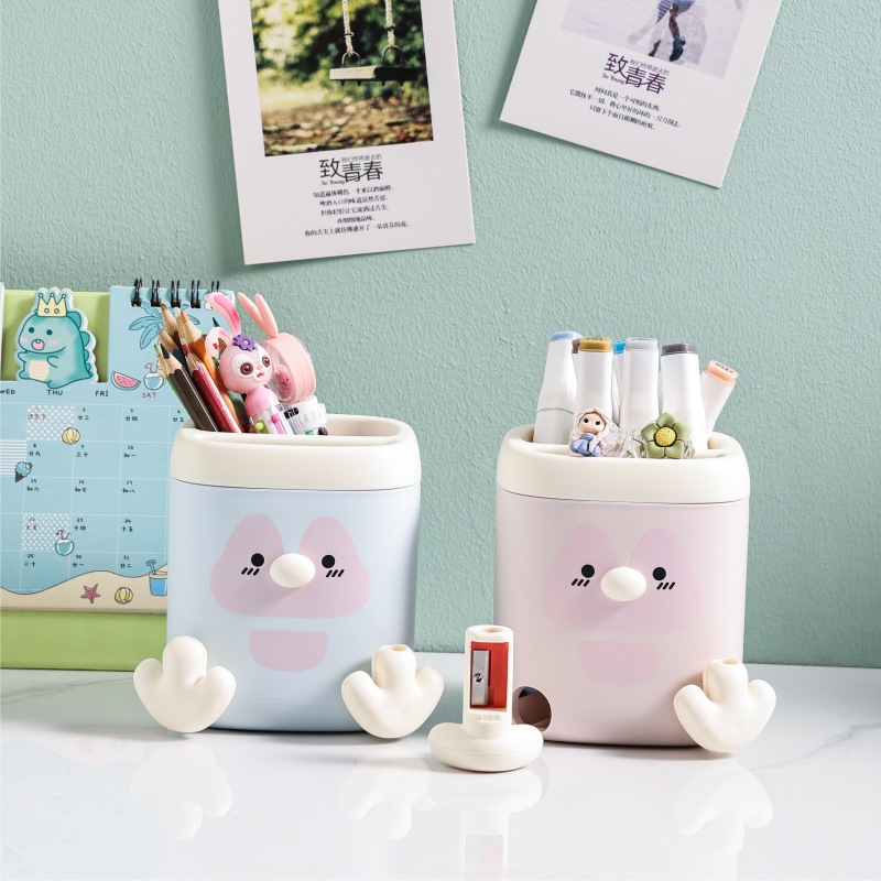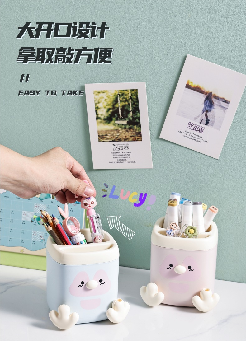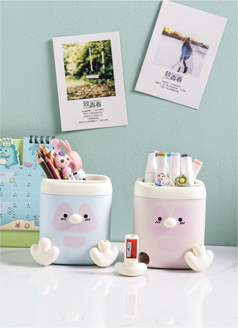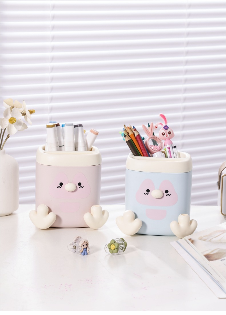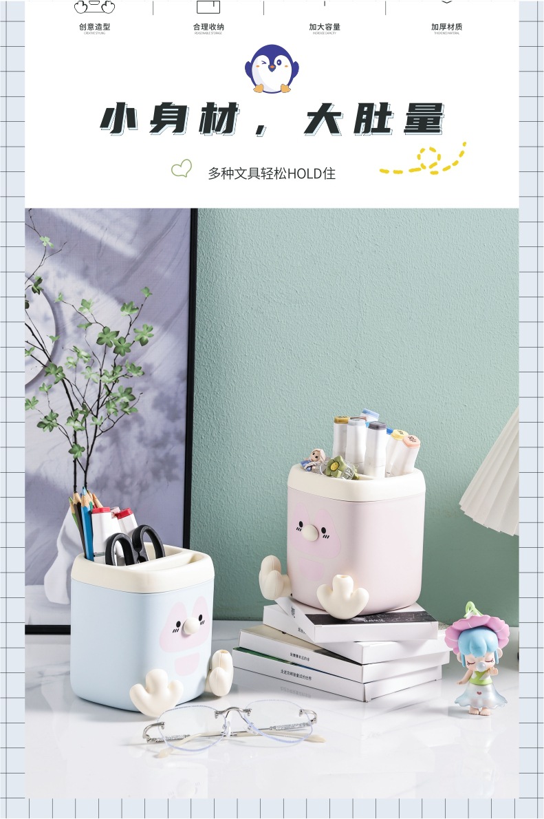 新品创意卡通企鹅笔筒办公文具桌面收纳筒带削笔刀多功能笔筒