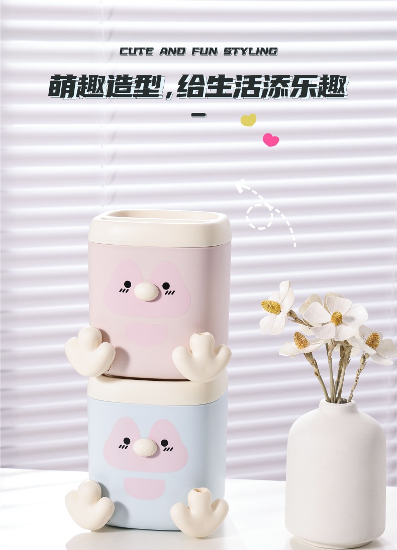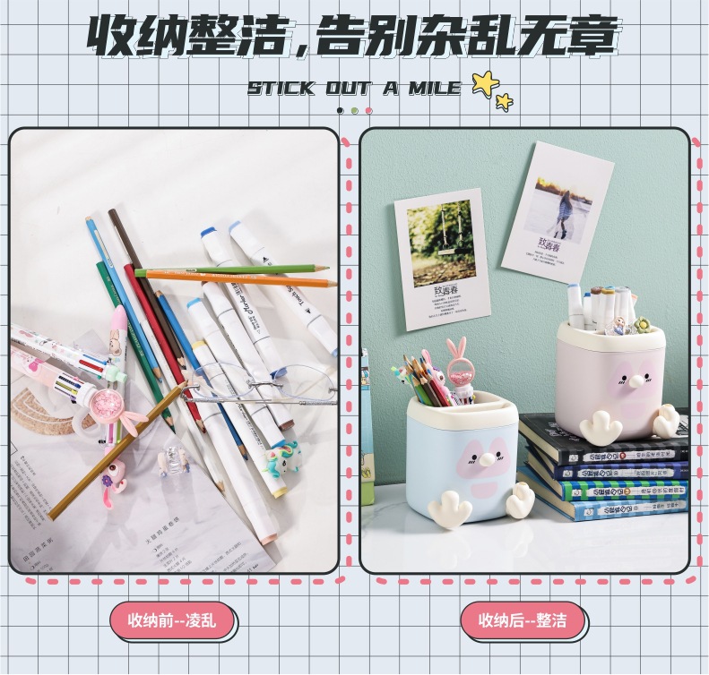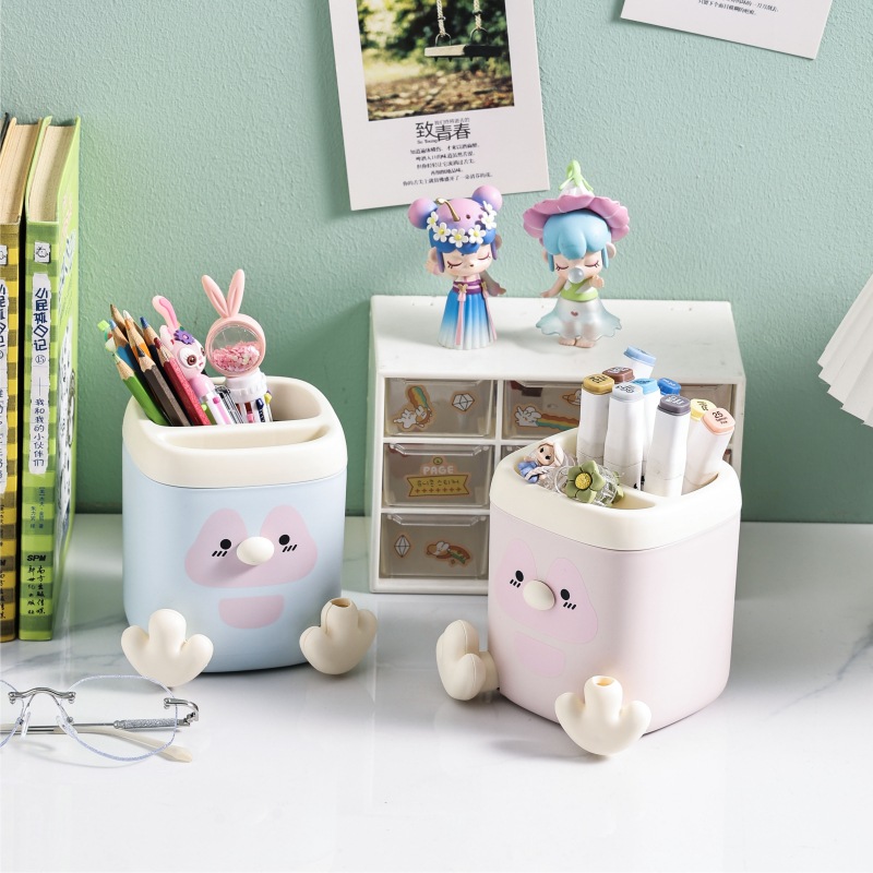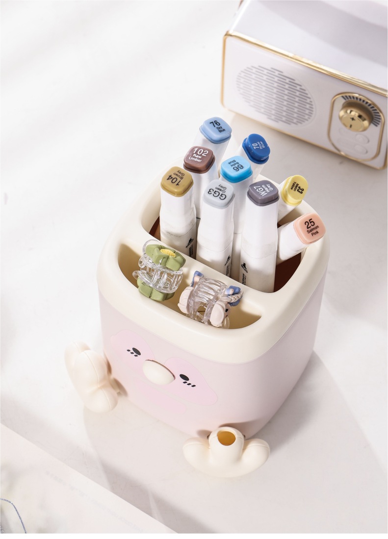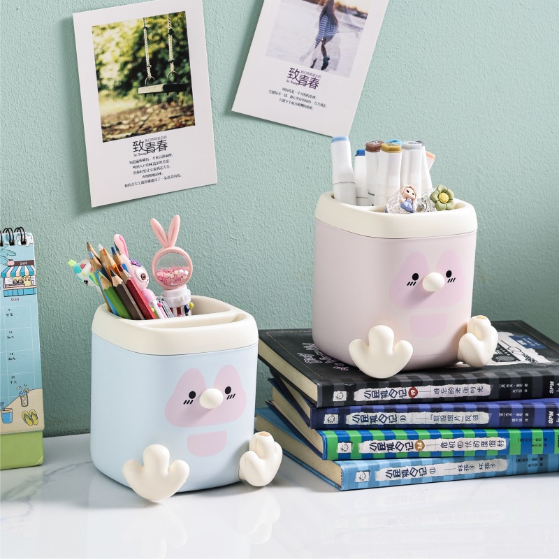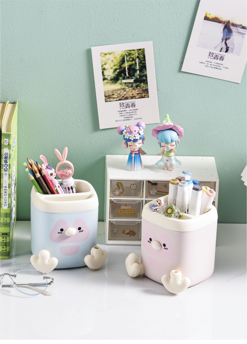 新品创意卡通企鹅笔筒办公文具桌面收纳筒带削笔刀多功能笔筒