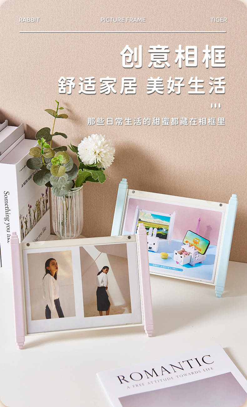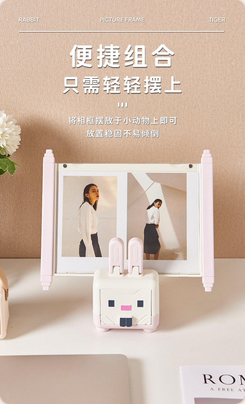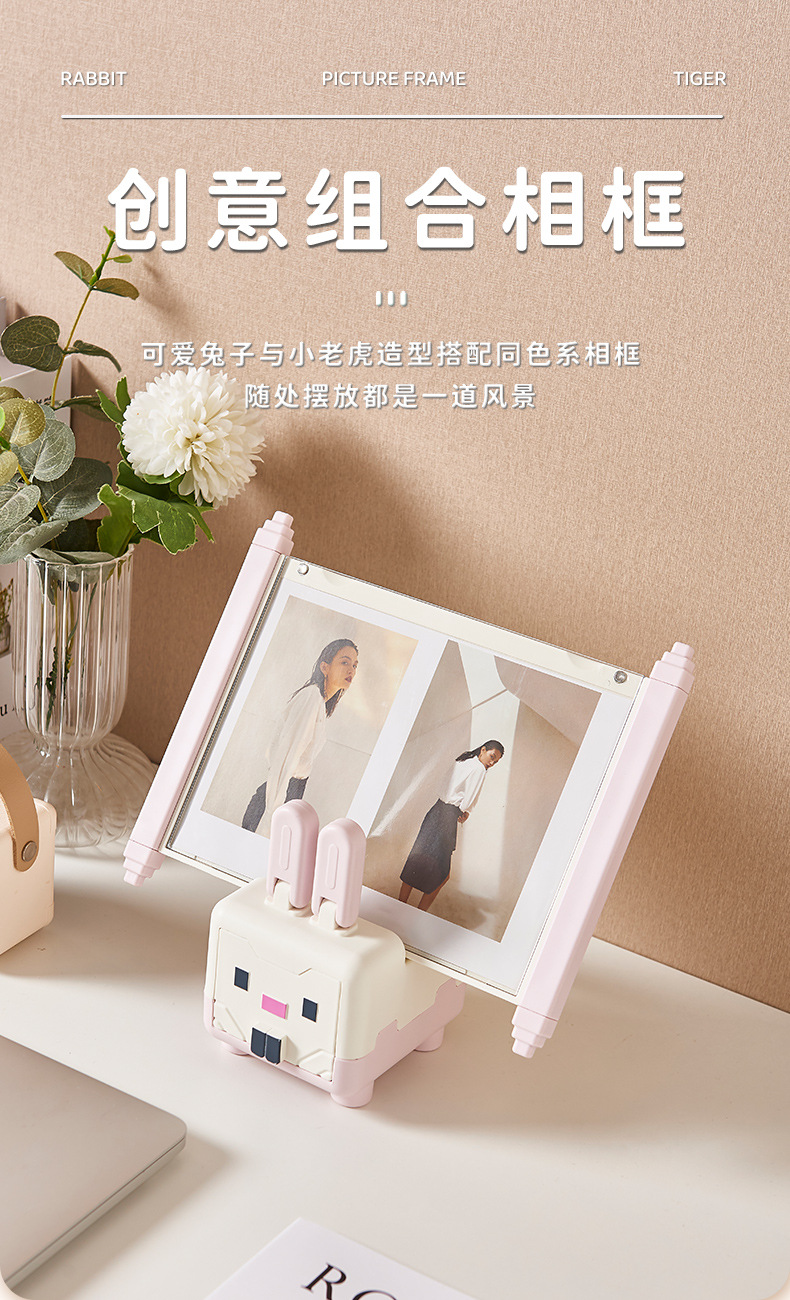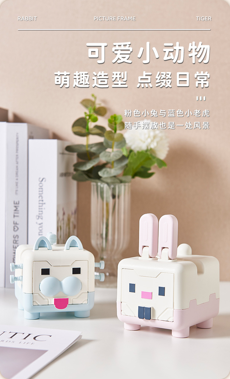 创意客厅桌面收纳盒迷你卡通手机支架家庭装相框组合装饰摆件