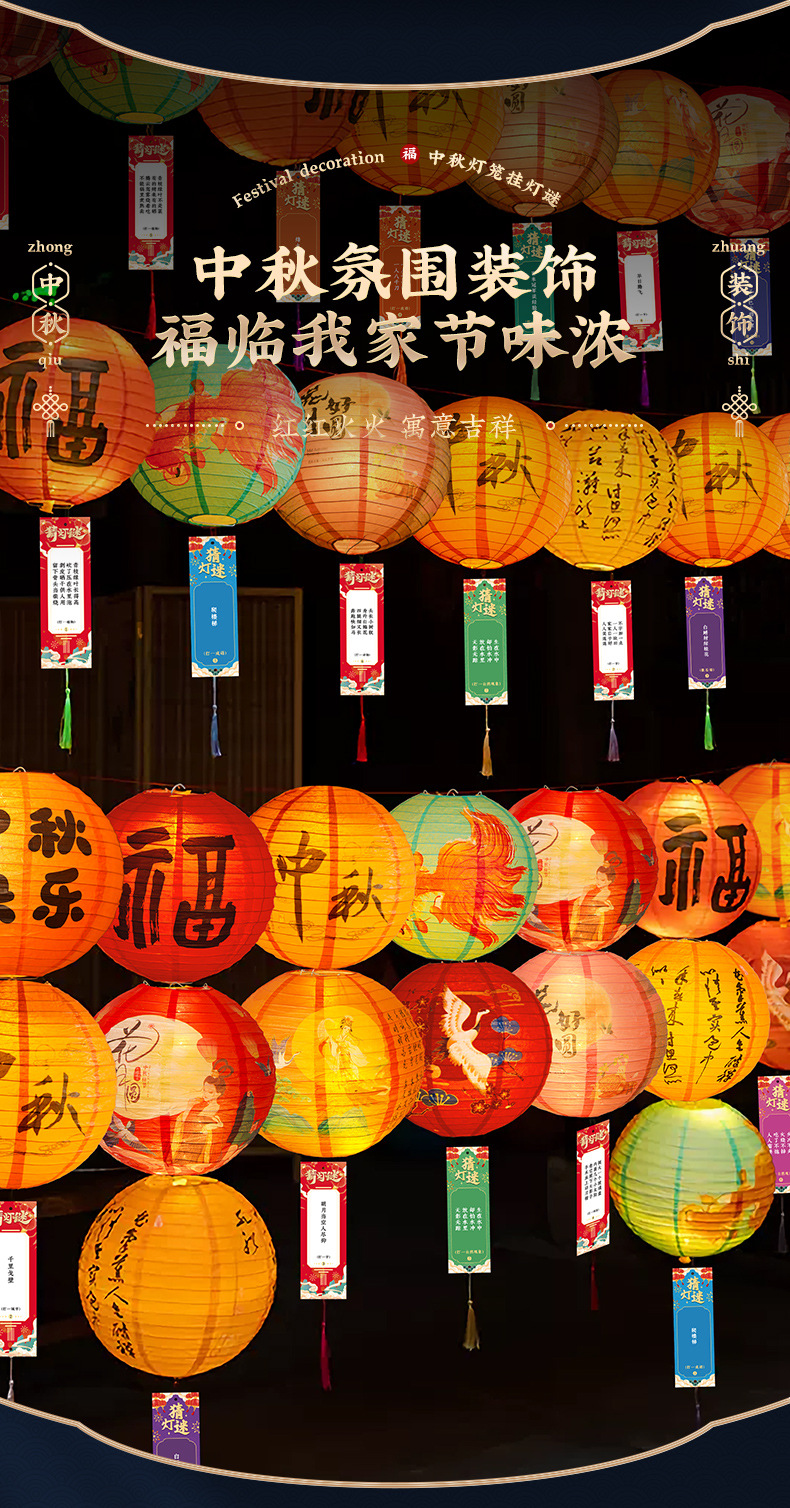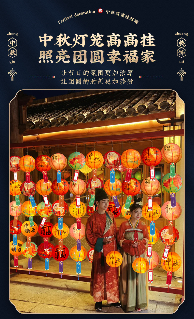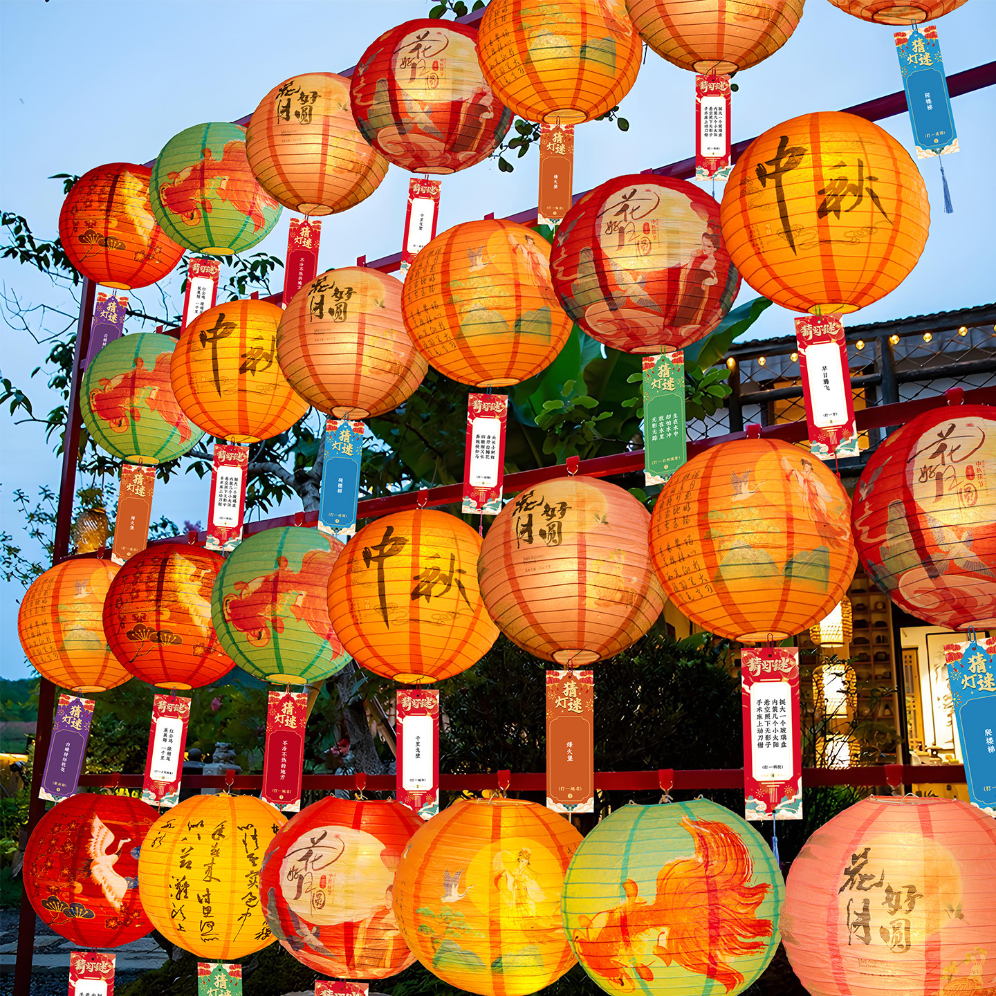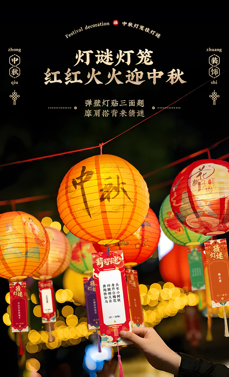 中秋节纸灯笼挂饰2025新款商场门店铺活动装饰布置古风猜灯谜宫灯