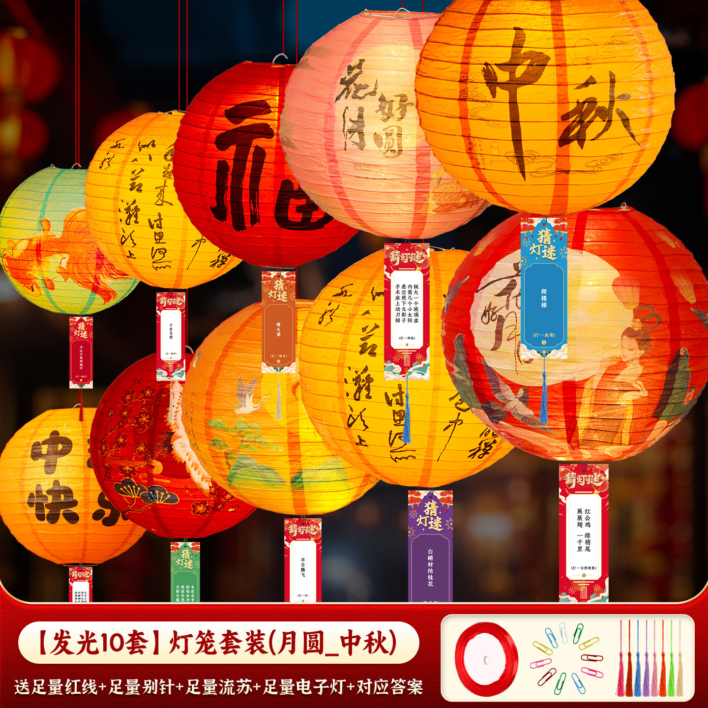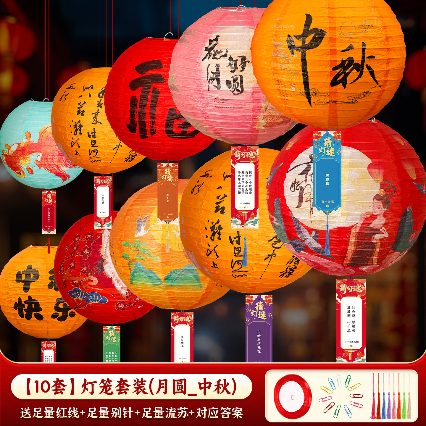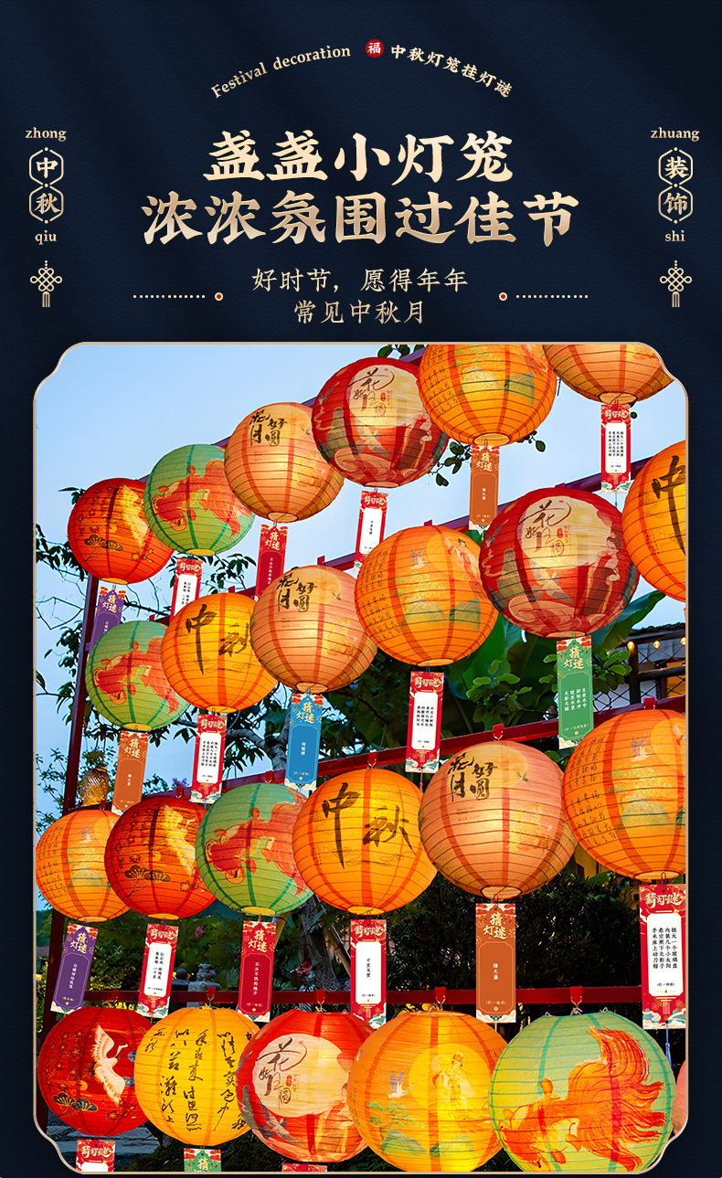 中秋节纸灯笼挂饰2025新款商场门店铺活动装饰布置古风猜灯谜宫灯