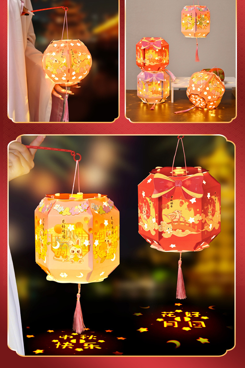 中秋节灯笼古风灯笼手工diy材料包儿童2025花灯古风手提纸灯笼