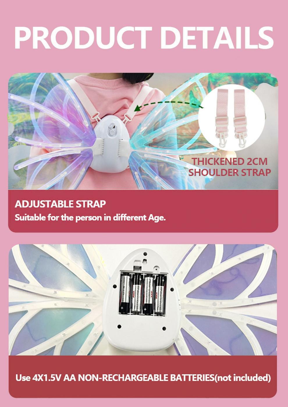 跨境精灵羽翼电动蝴蝶翅膀发光玩具蝴蝶背饰女孩子玩具花仙子儿童
