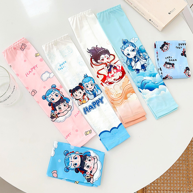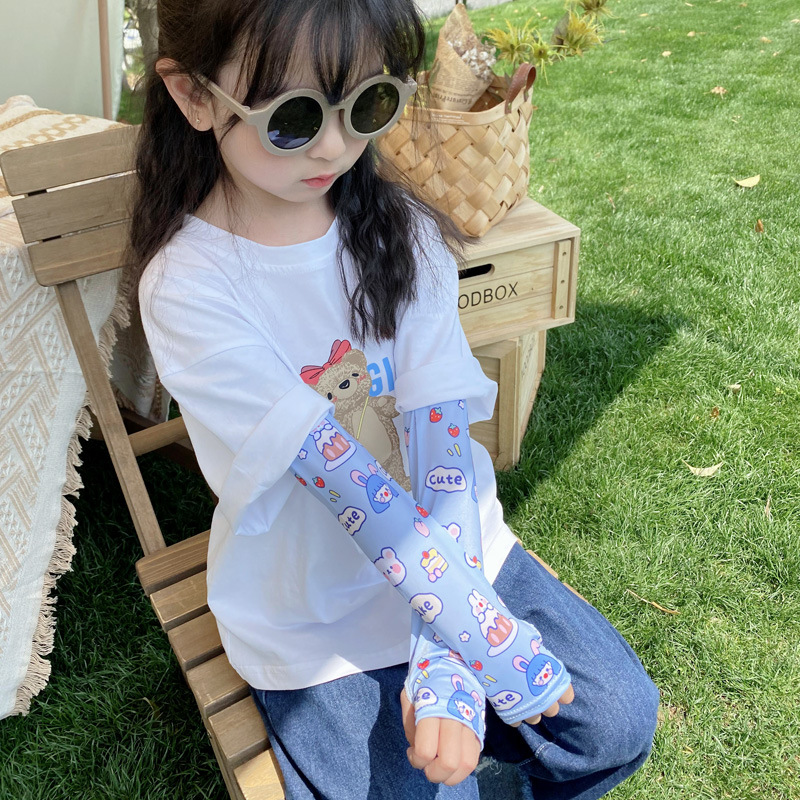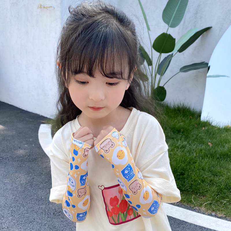 儿童冰袖夏季薄款可爱卡通袖套男女宝宝防紫外线冰丝护臂防晒套袖
