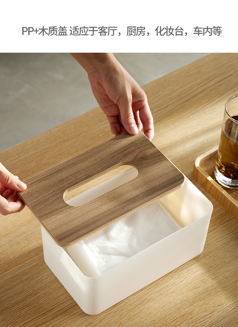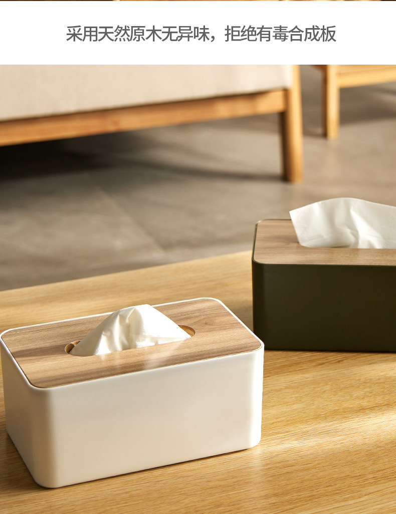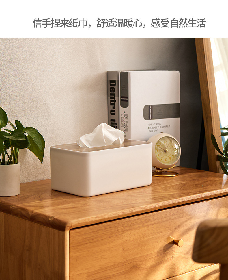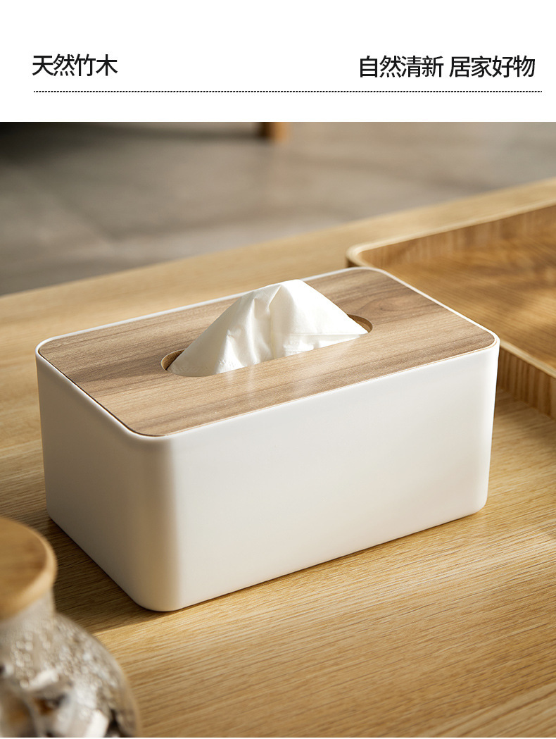纸巾盒塑料简约抽纸盒桌面日式竹木创意家用客厅多功能纸盒