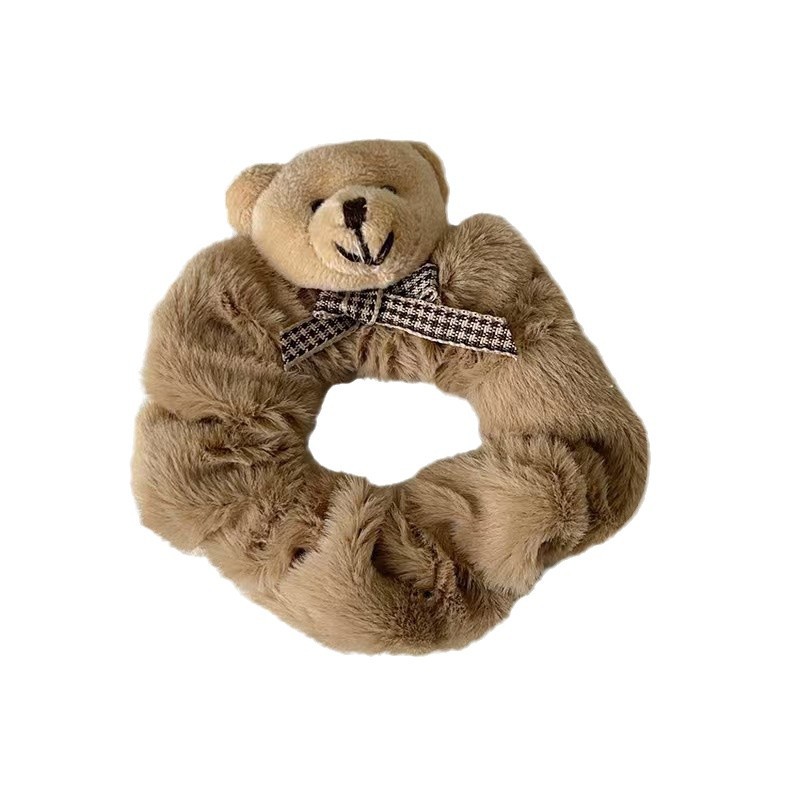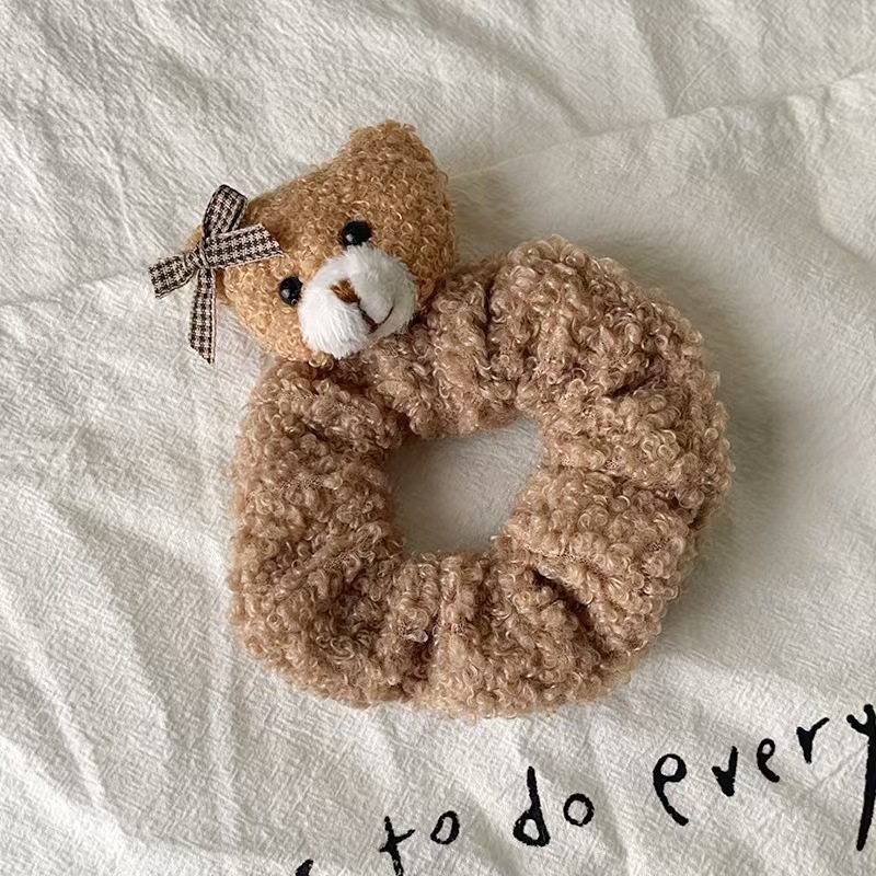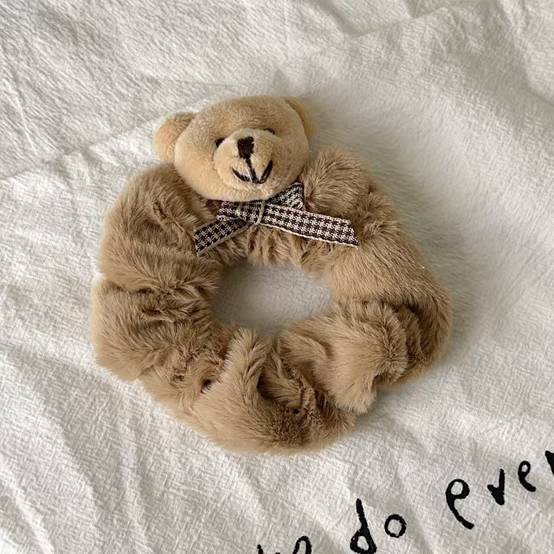 2024秋冬毛绒发圈甜美可爱小熊头绳毛茸茸大肠圈扎丸子头皮筋头饰