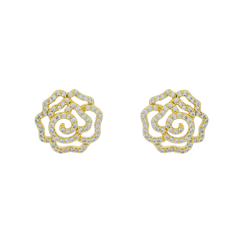 旭平欧美外贸跨境时尚微镶锆石甜美气质玫瑰花耳钉优雅气质耳饰女