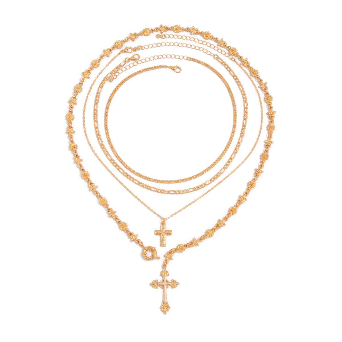 欧美跨境甜酷ins小花链条项链套装 嘻哈风叠戴十字架吊坠锁骨项饰