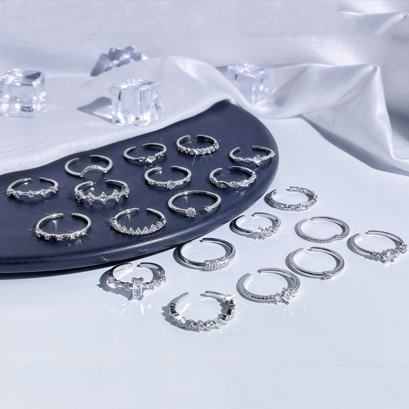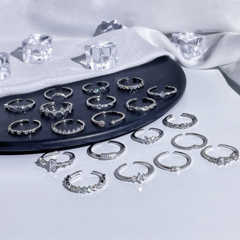戒指女小众设计感个性简约细圈锆石开口戒冷淡风气质叠戴食指戒潮