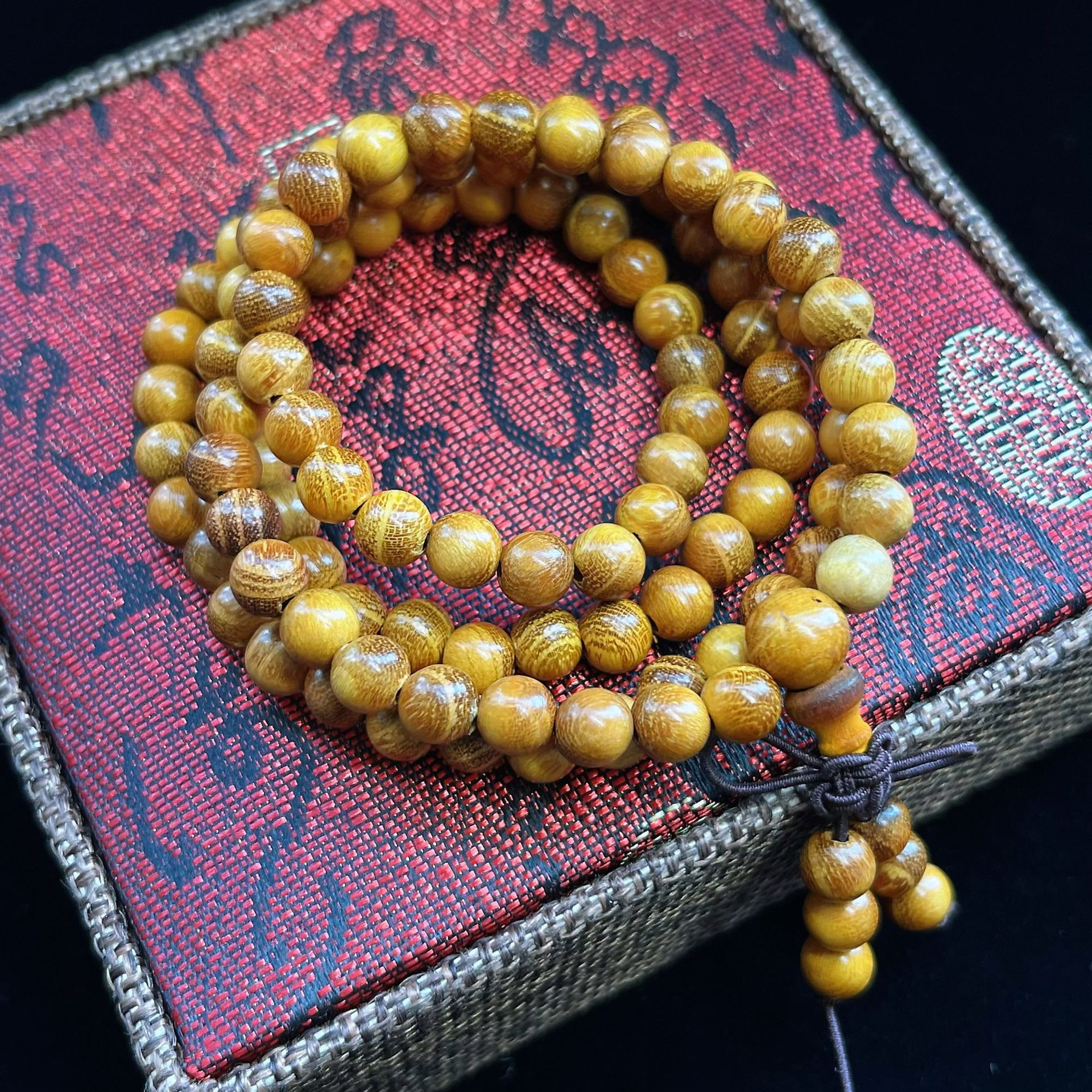 厂家直销天然黄金檀木手串 6-8mm108颗多圈佛珠手链男女款批发