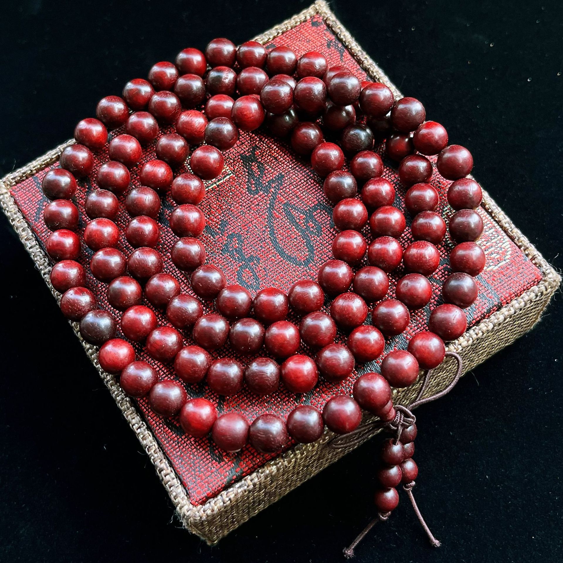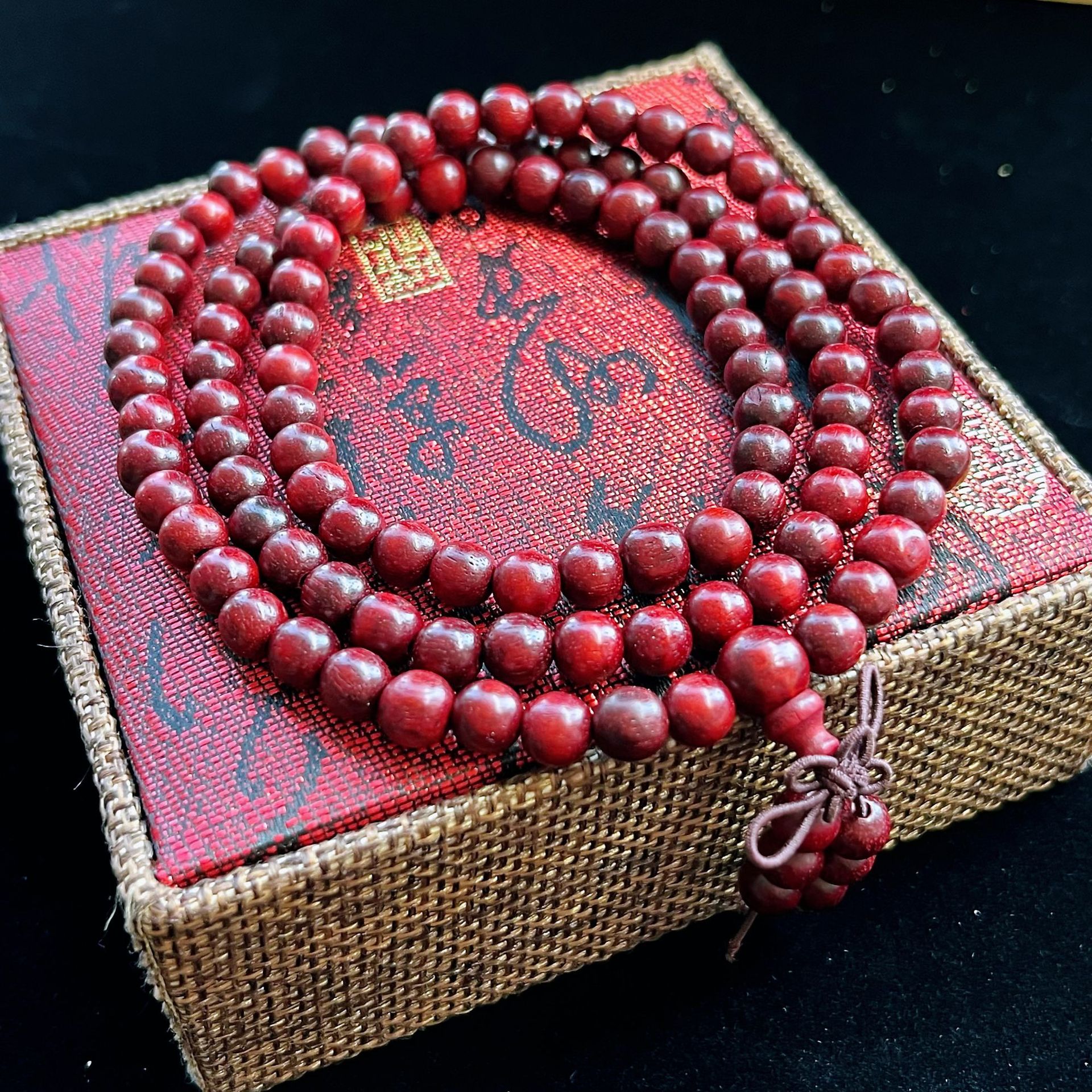 民族风血檀手串念珠108颗红檀手串老料高密佛珠木质男女手链批发