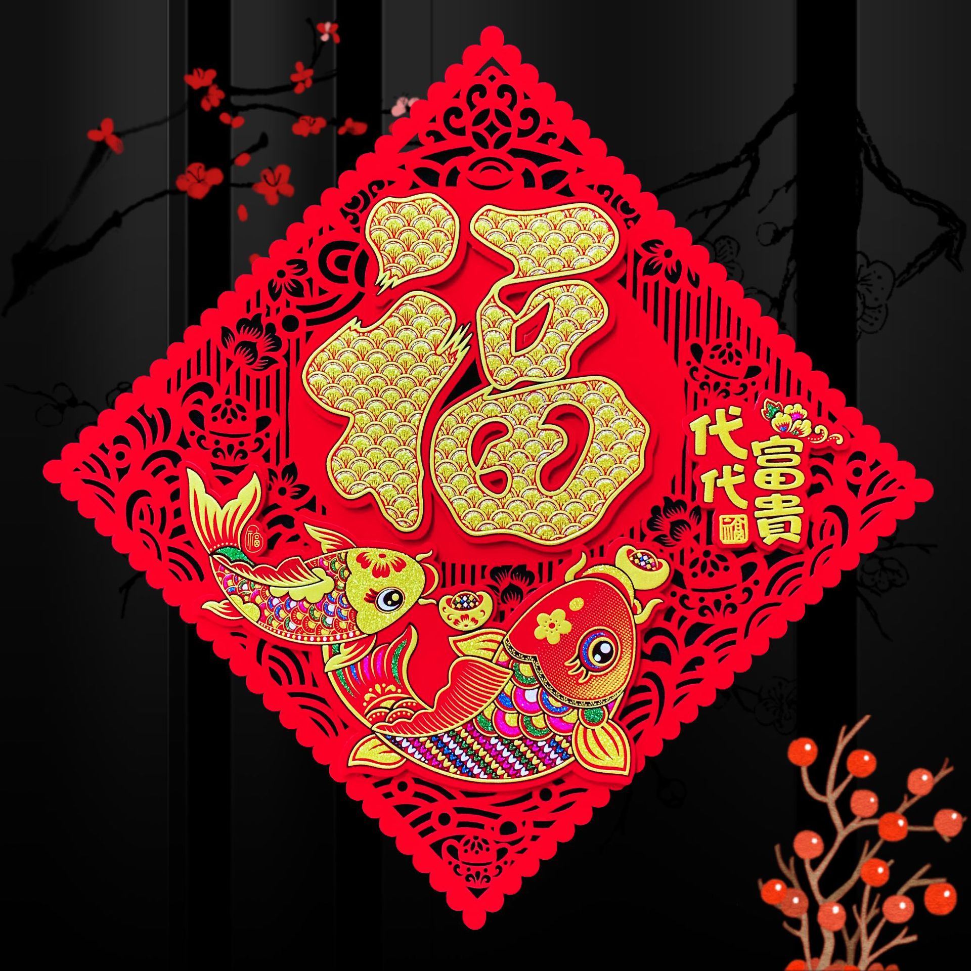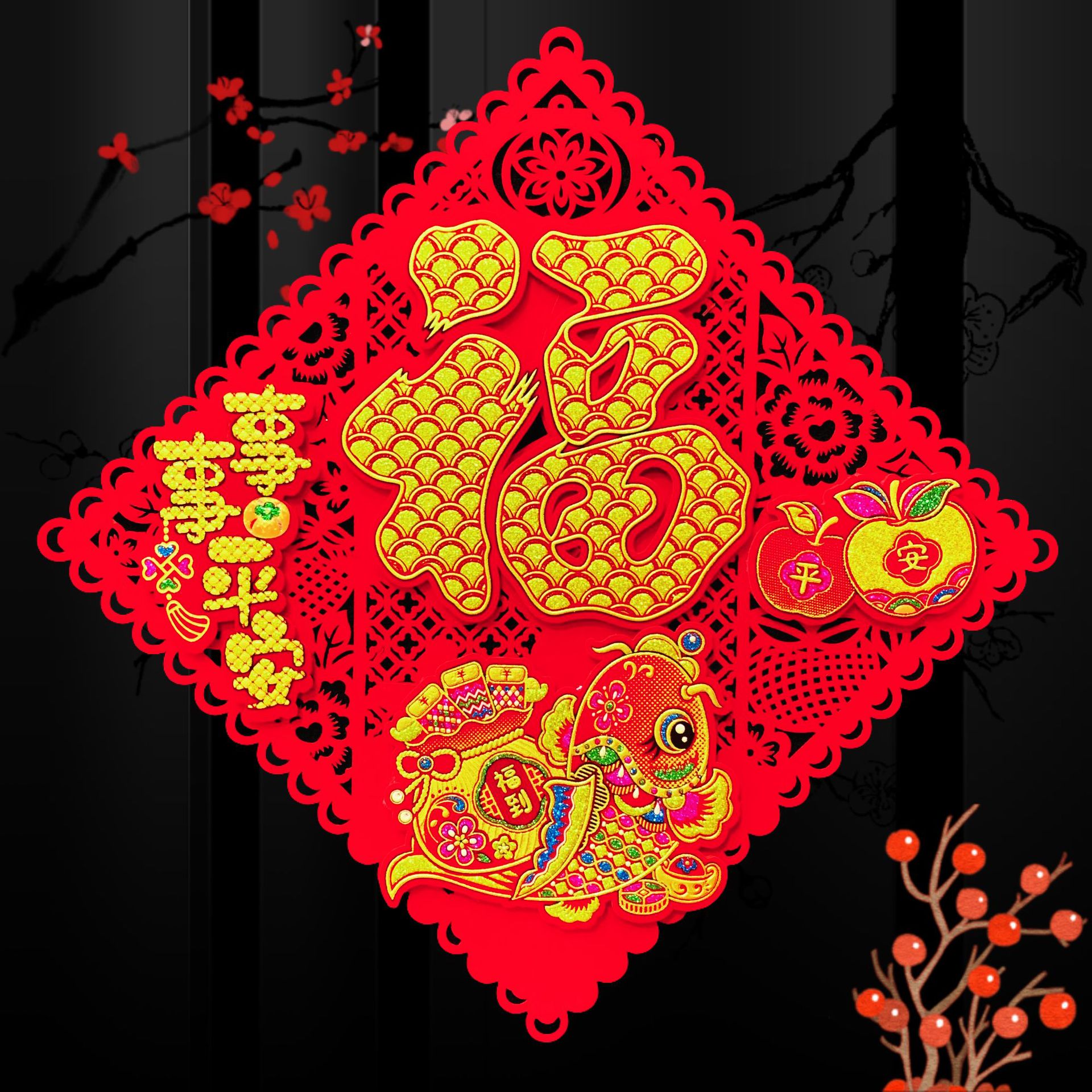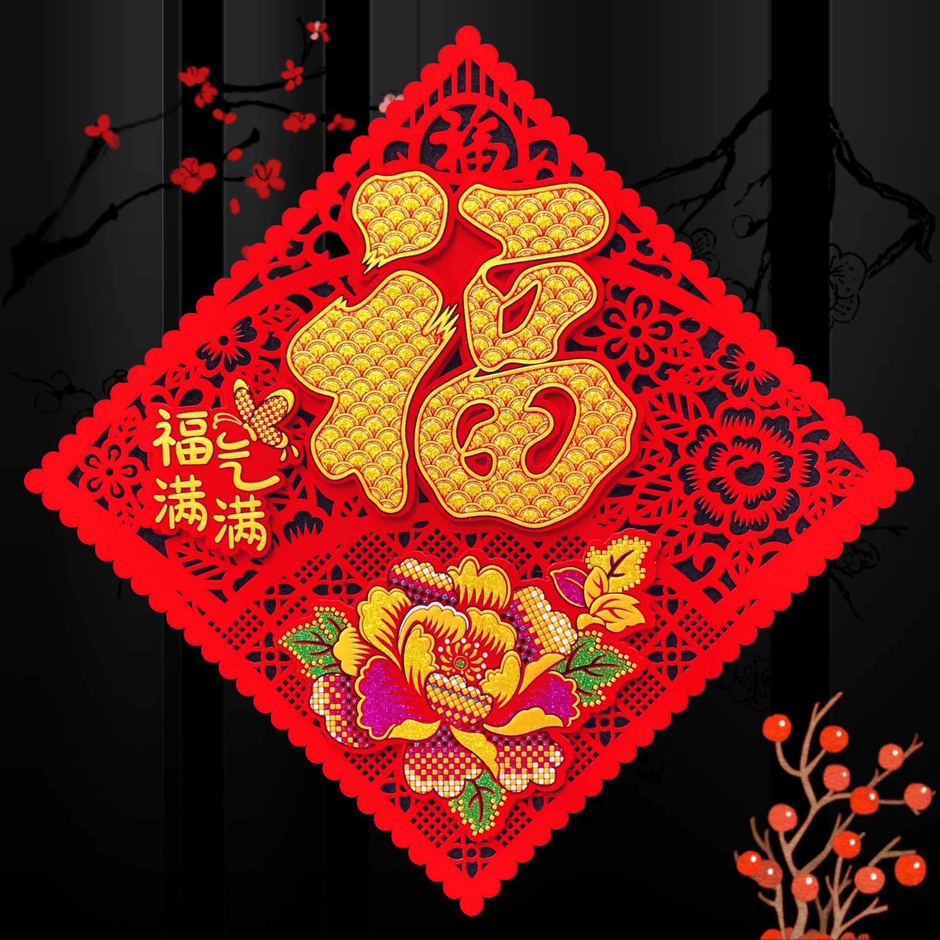 马年高端实心毛毡福字全背胶福字贴新年春节装饰福字门贴批发
