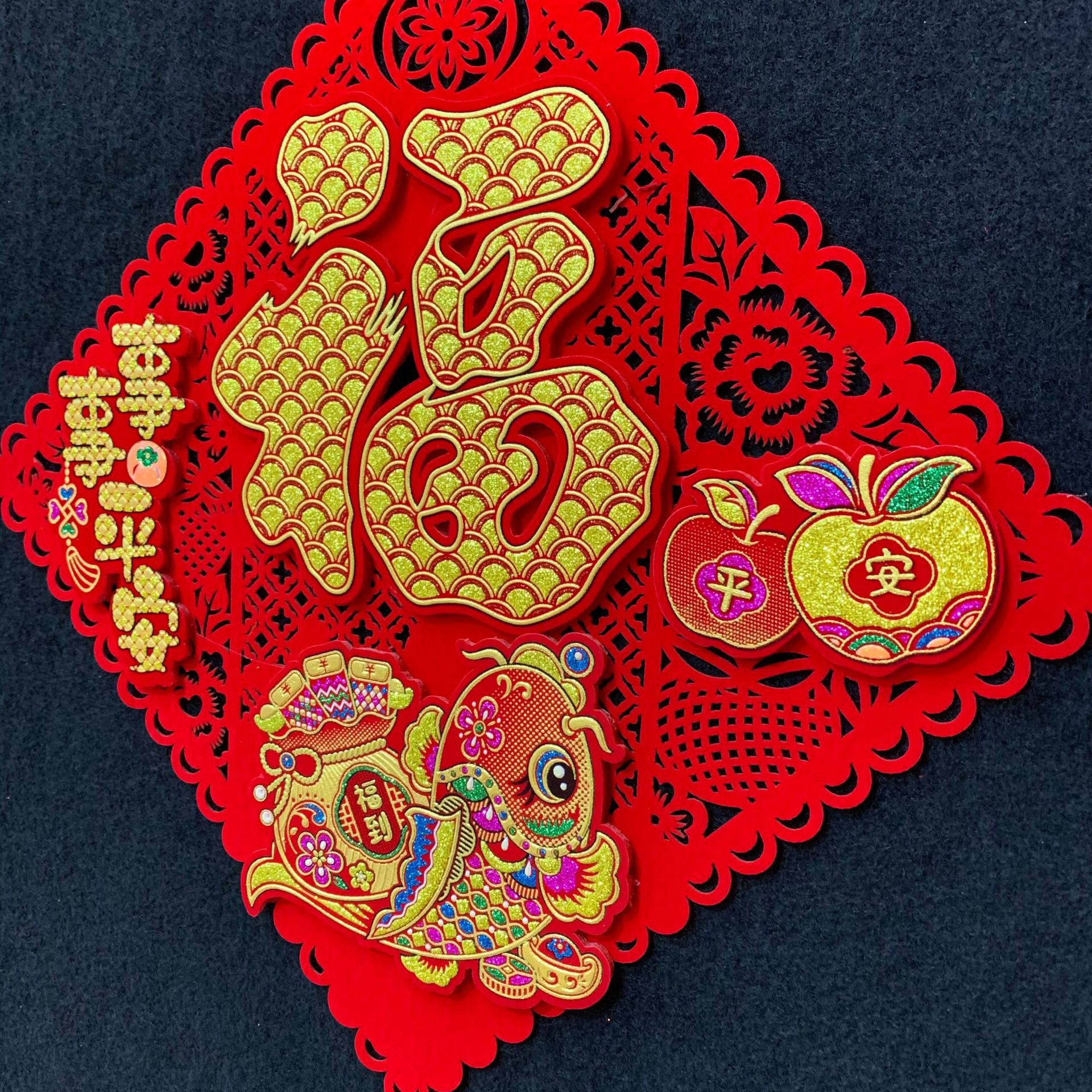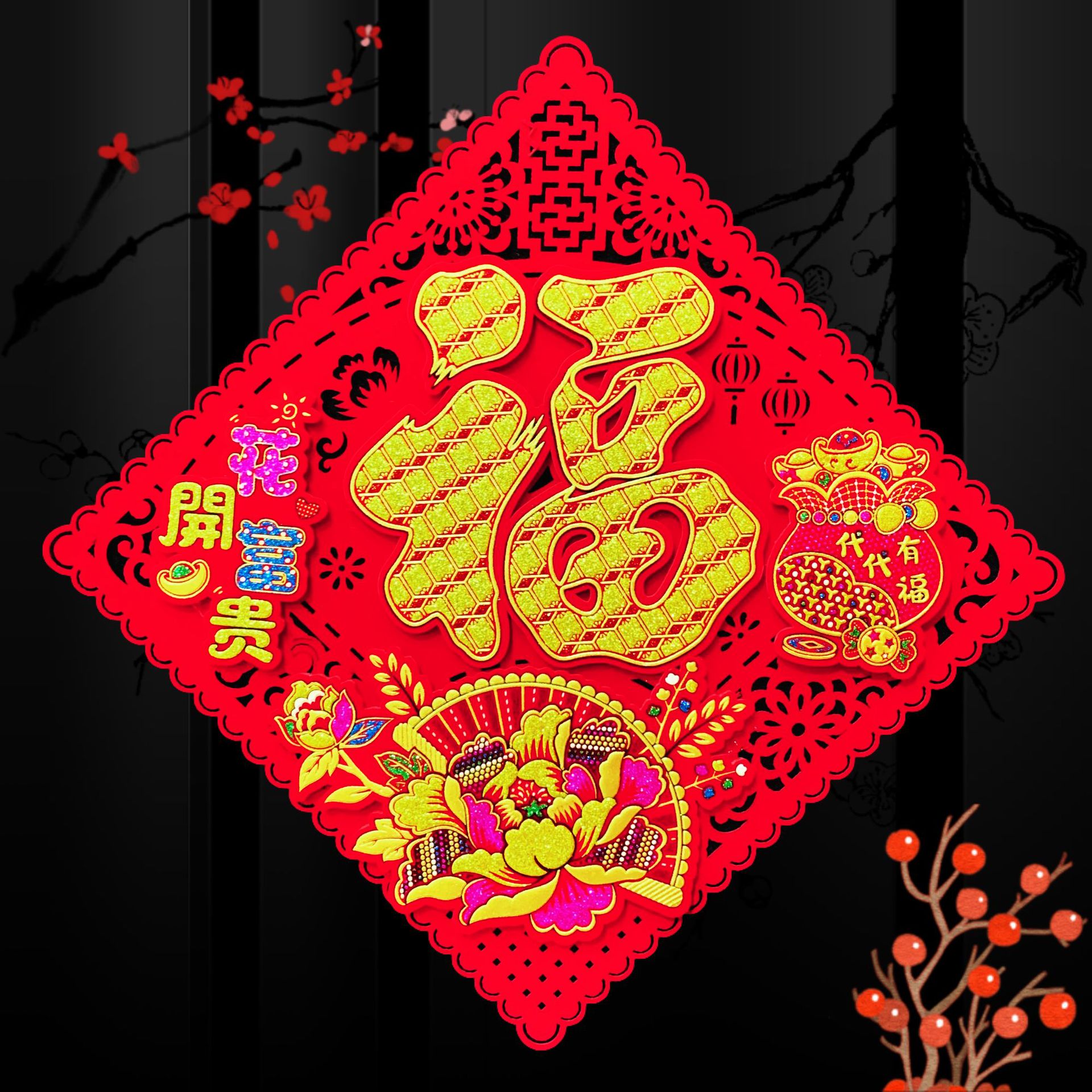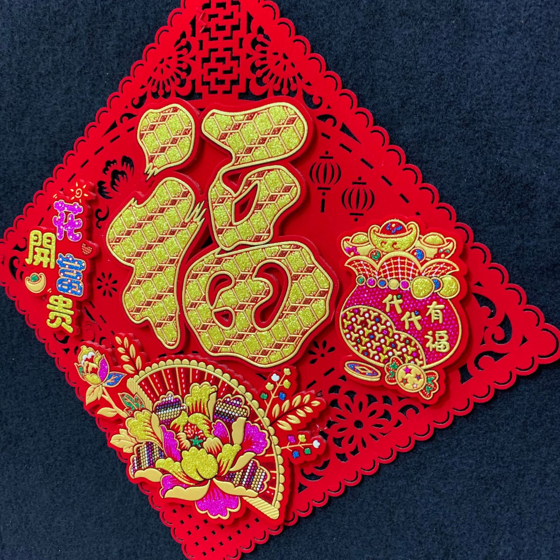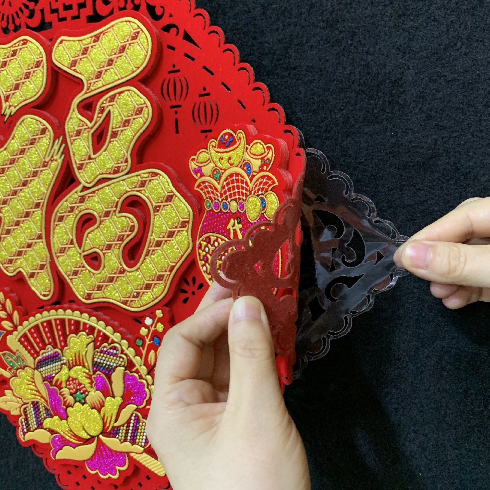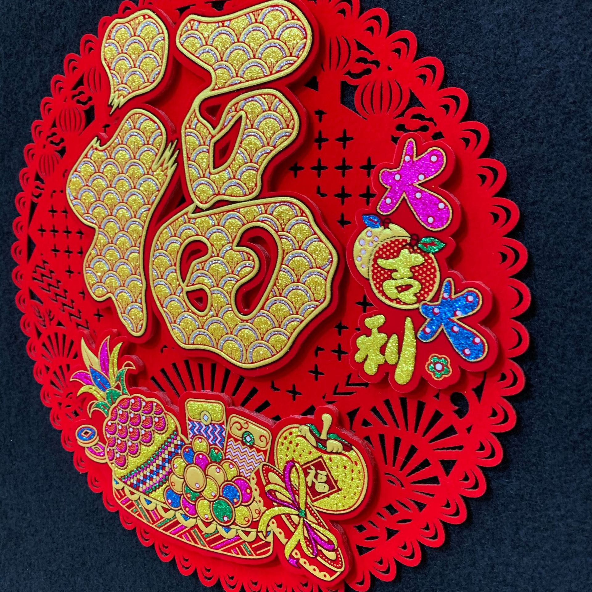 底板毛毡植绒激光雕刻镂空福字配件全实心,面绒布彩色发泡工艺款式高端大气上档次,实物比照片更漂亮更有质感
