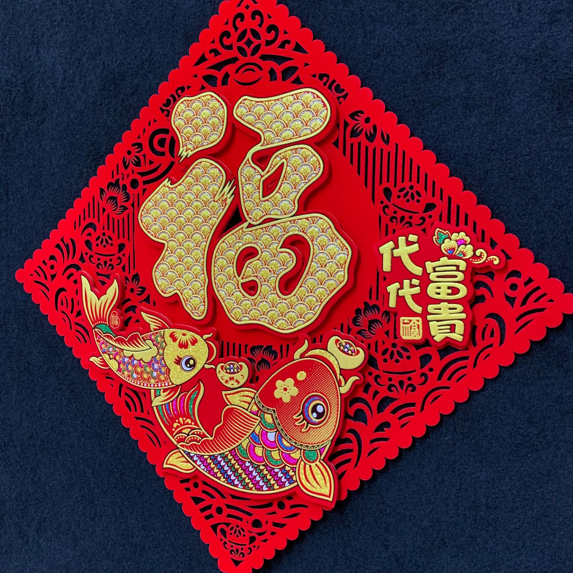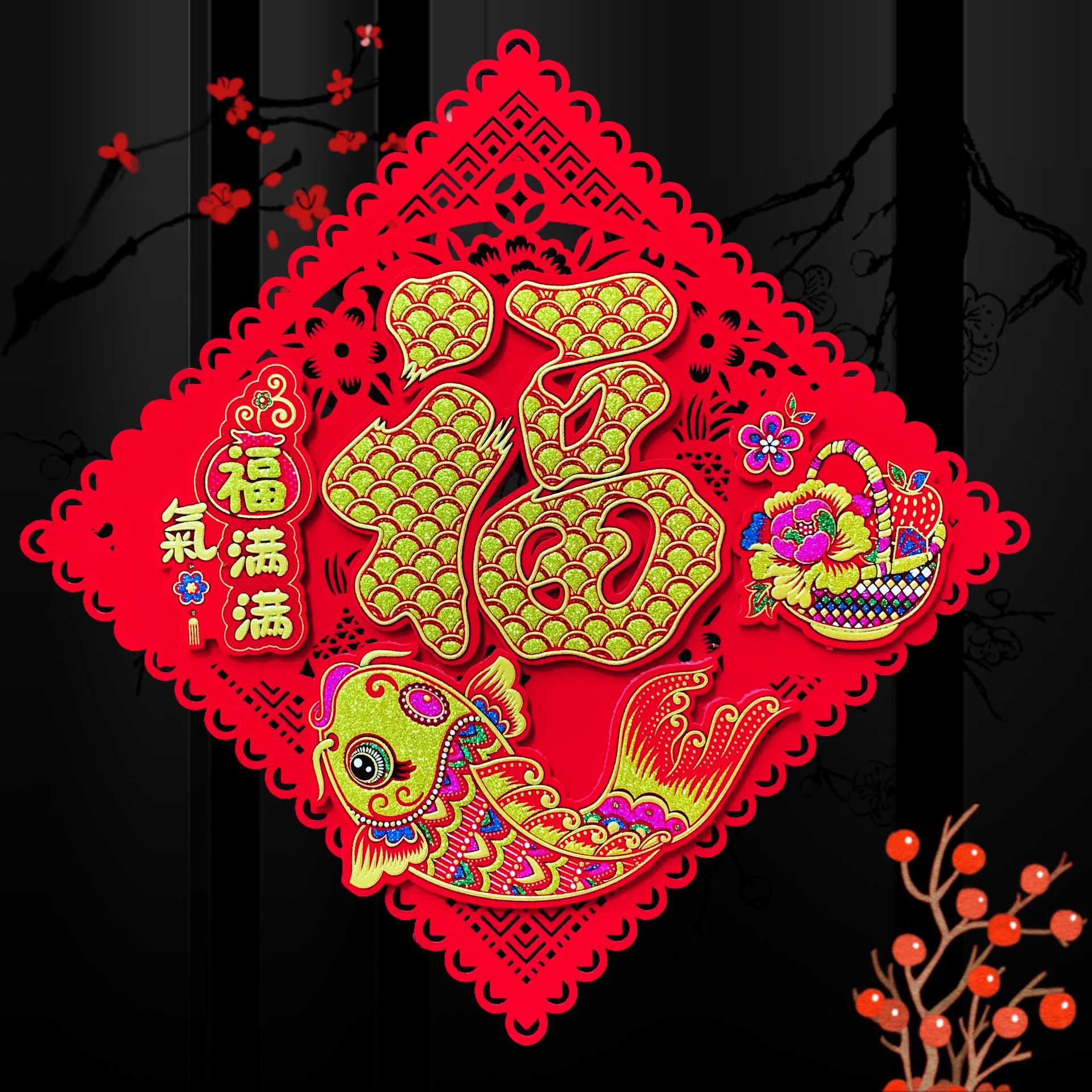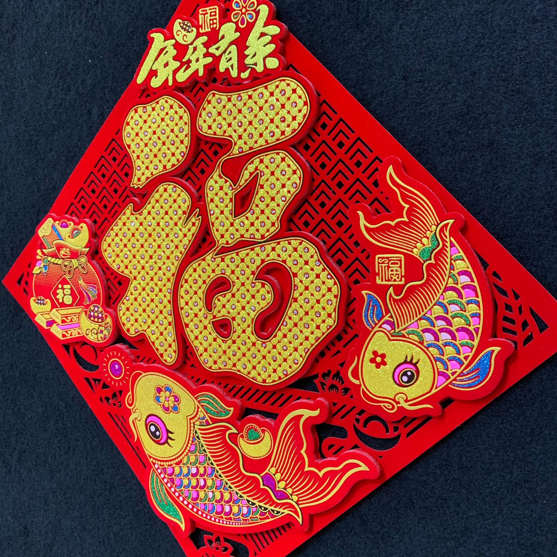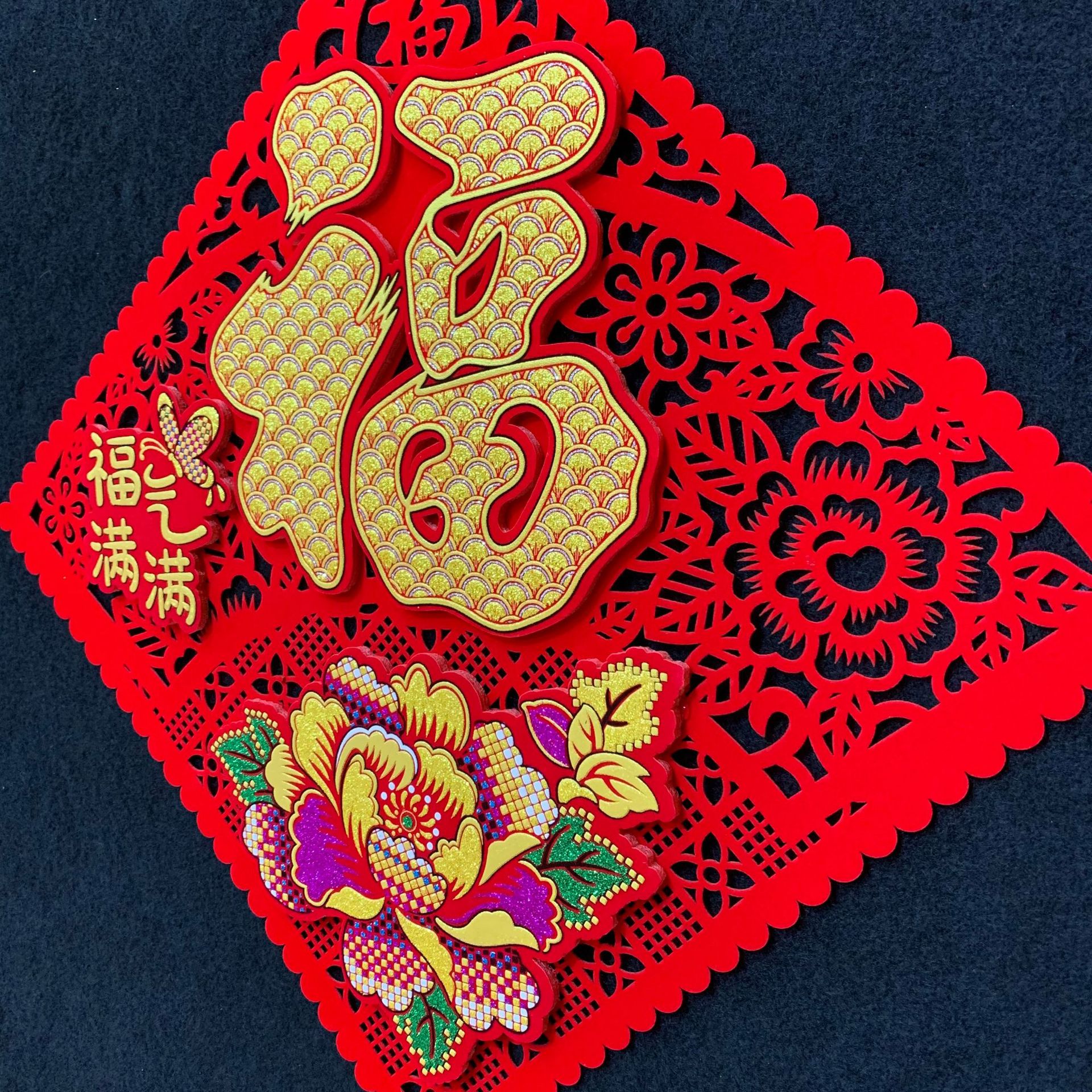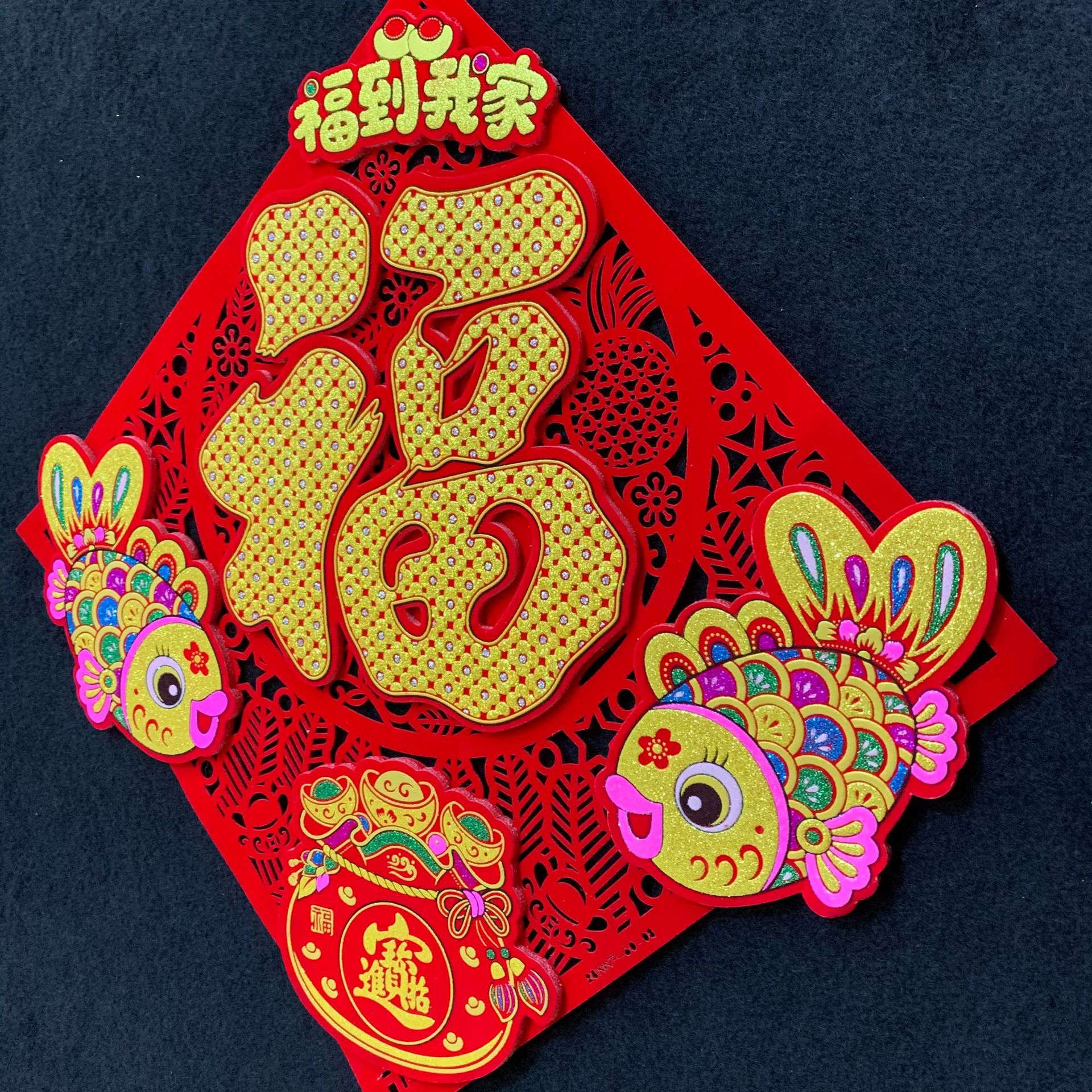 底板毛毡植绒激光雕刻镂空福字配件全实心,面绒布彩色发泡工艺款式高端大气上档次,实物比照片更漂亮更有质感