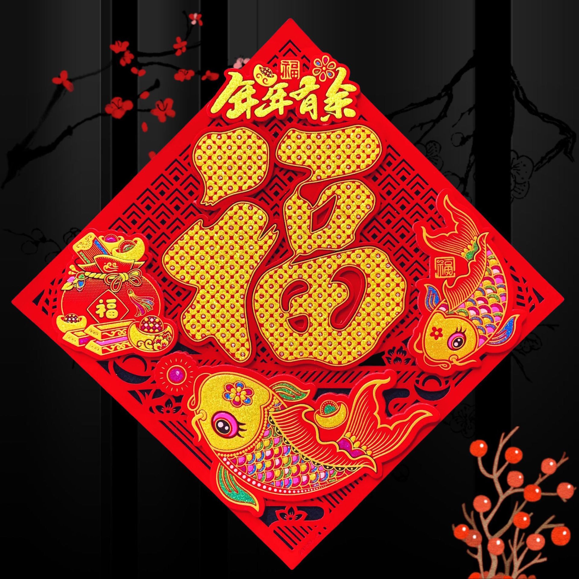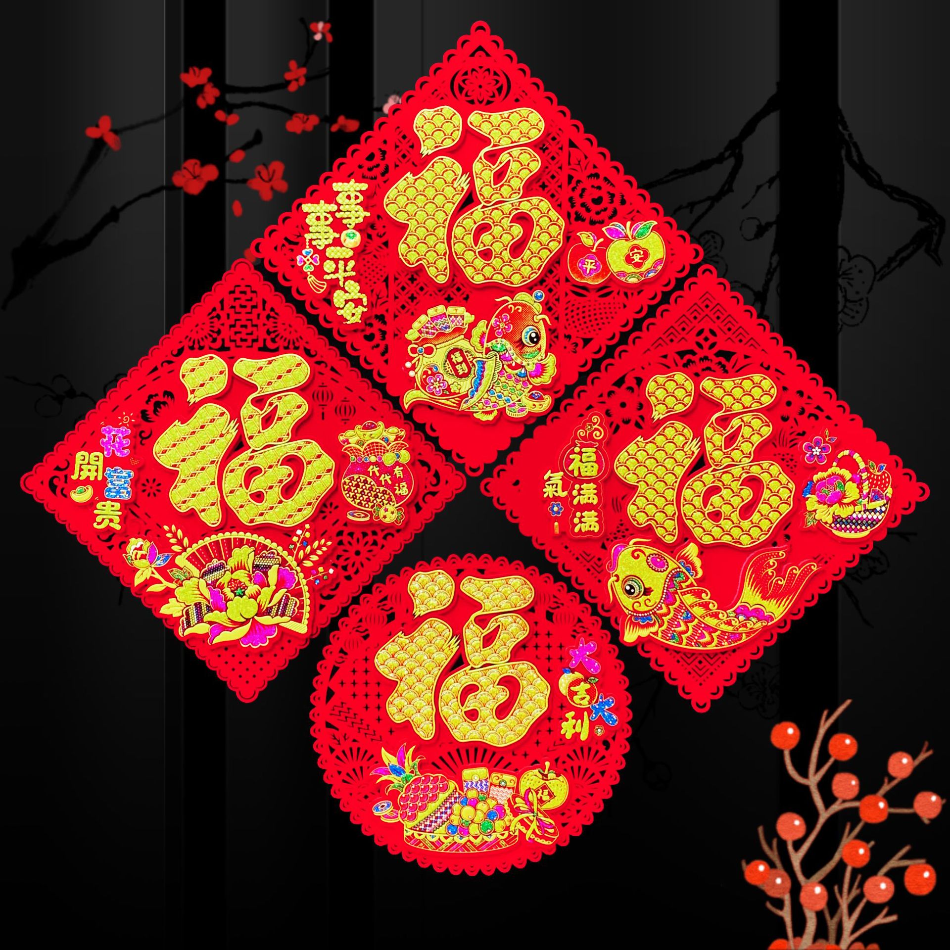 50#一小件40张一大件160张,全背胶福字配件全实心,4个款,可混搭发货,实际尺寸:50# 43×43cm