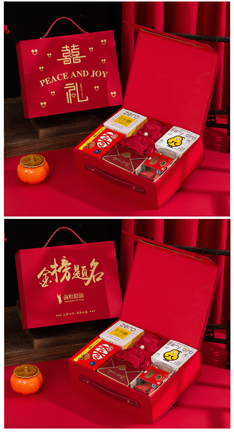 金榜题名礼盒空盒新款翻盖高档手提礼品盒送考结婚喜事伴手礼物盒