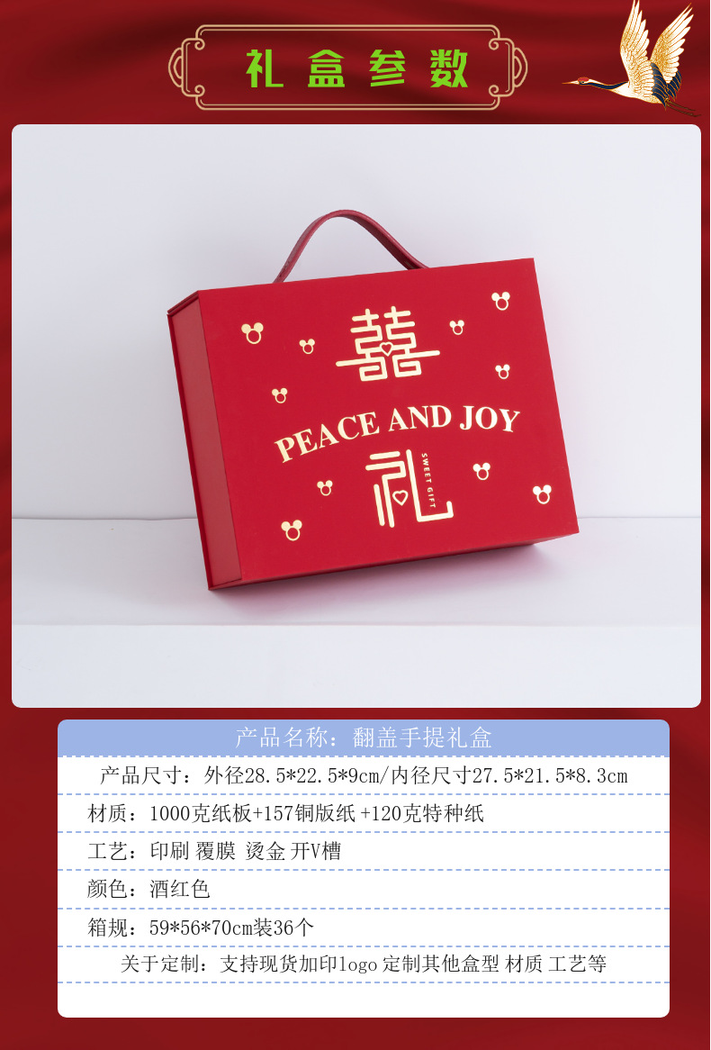 批发结婚喜糖盒 免折叠大号翻盖手提盒 订婚喜事宾客礼盒 包装盒