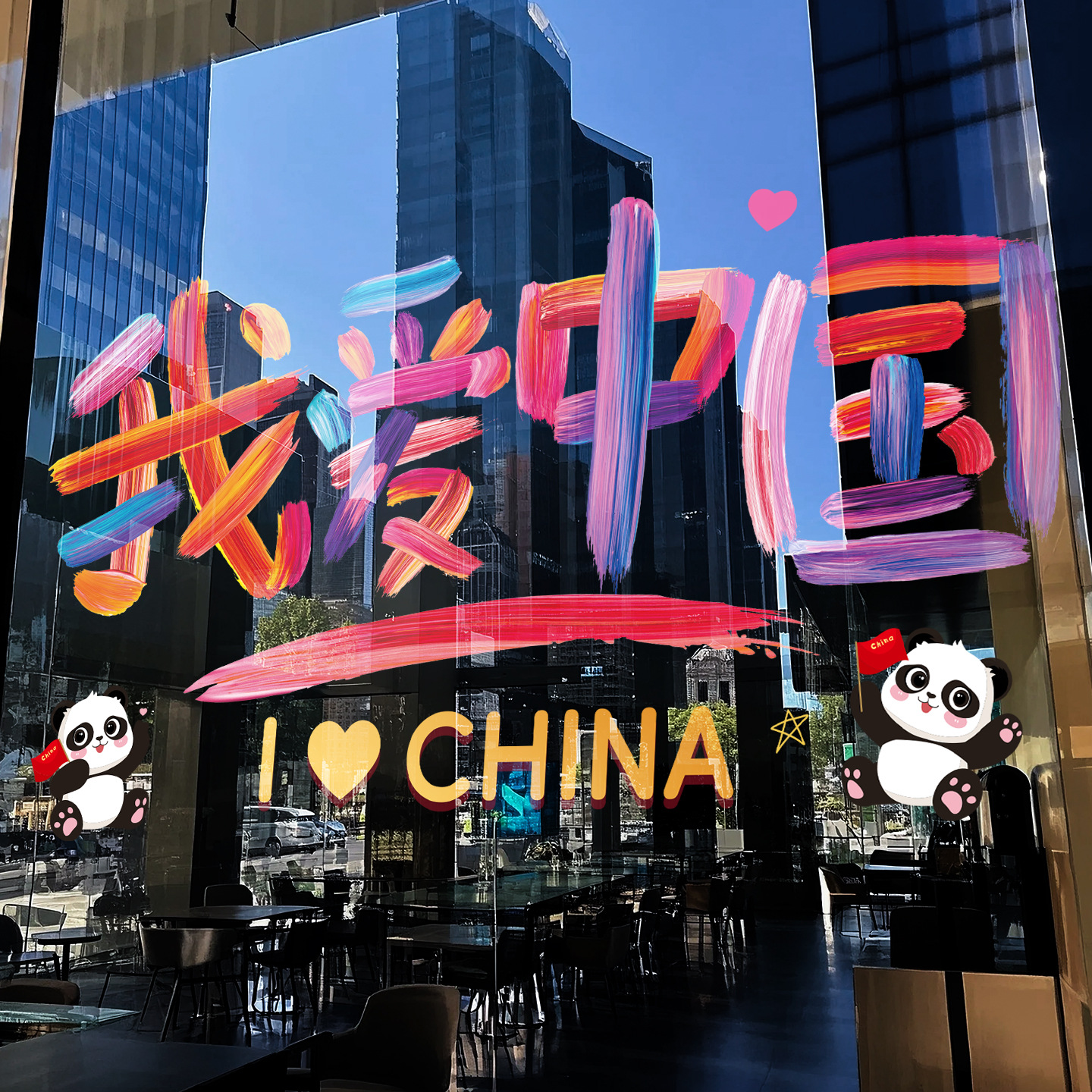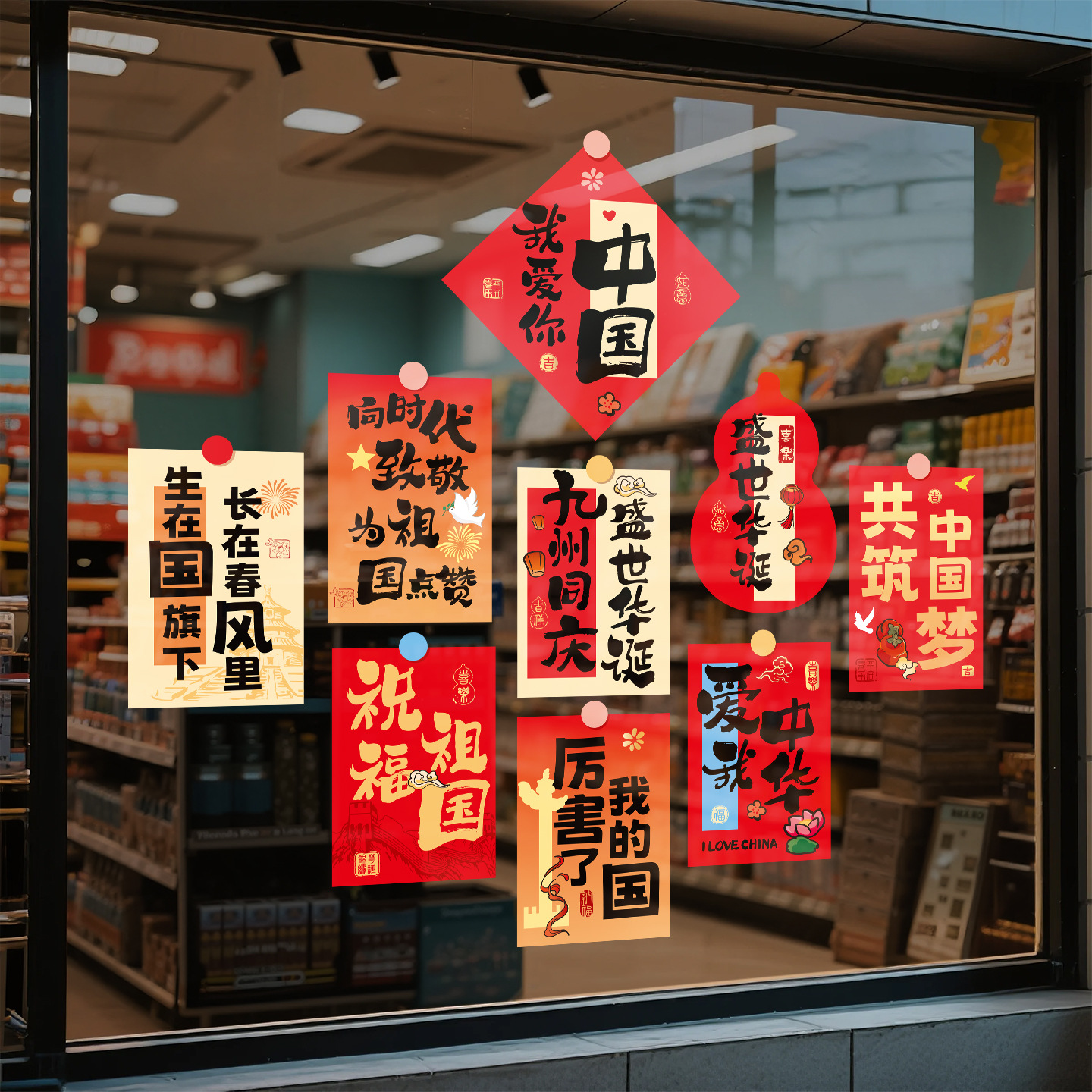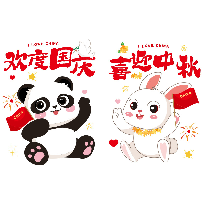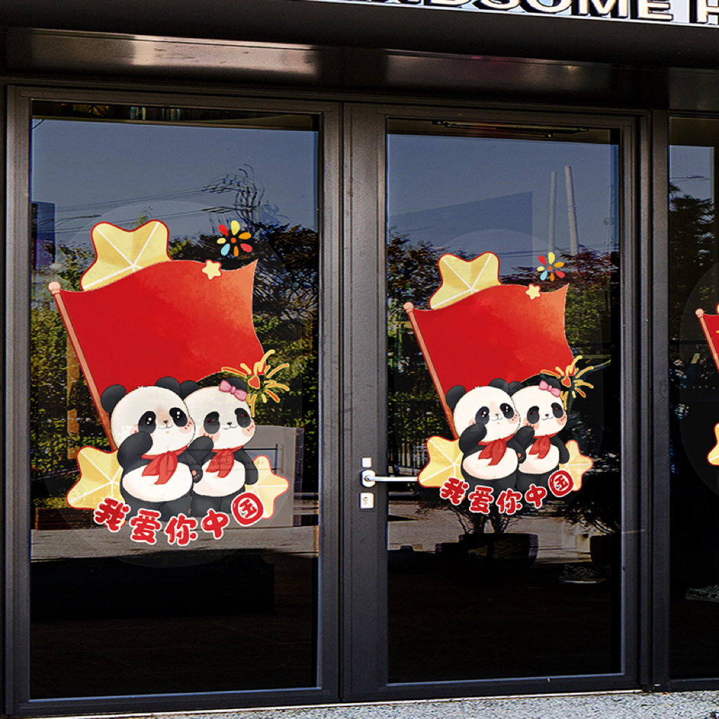 国庆装饰玻璃门贴纸节日创意公司店铺商场橱窗静电贴氛围布置窗花