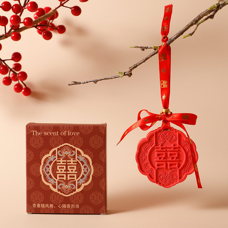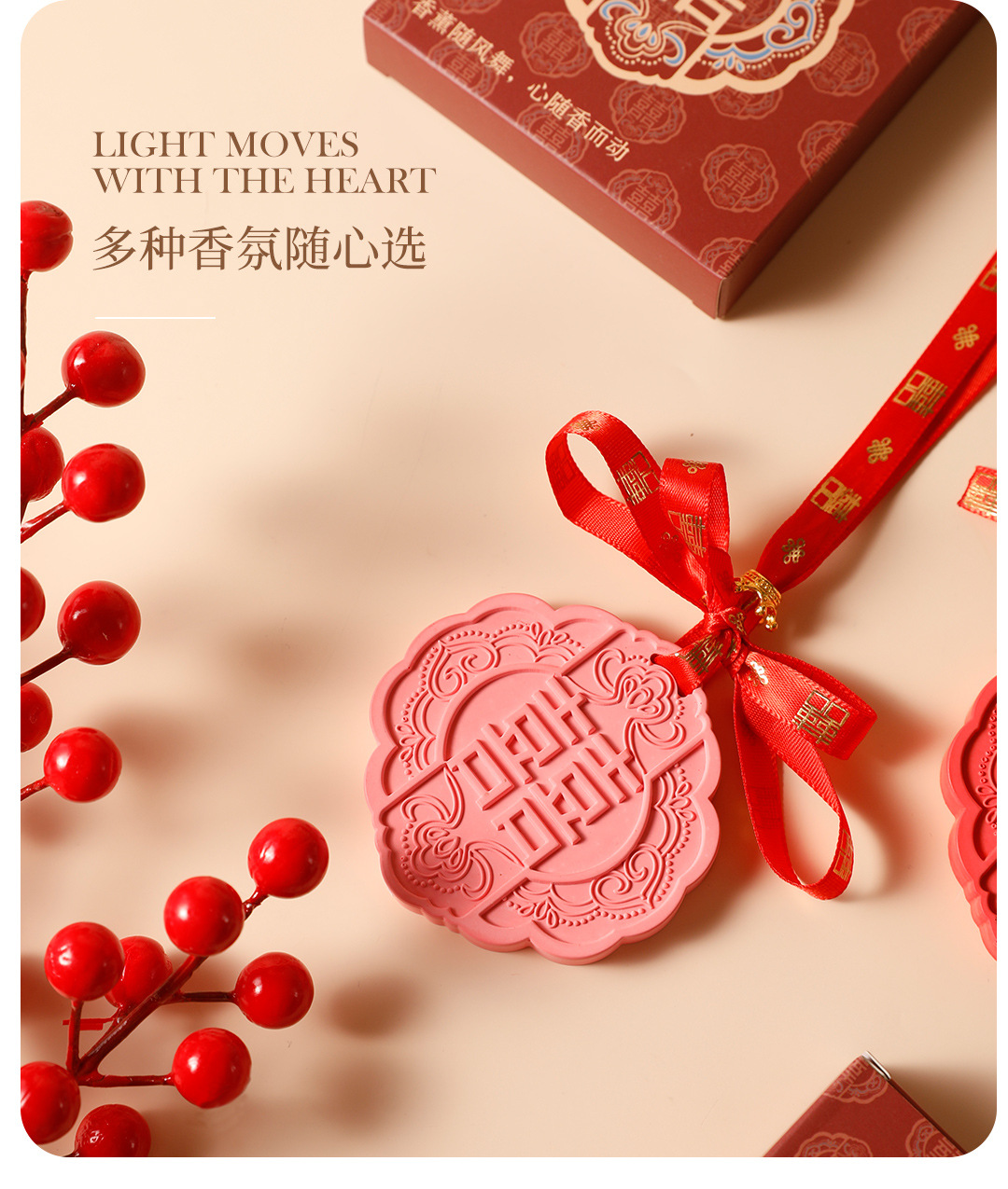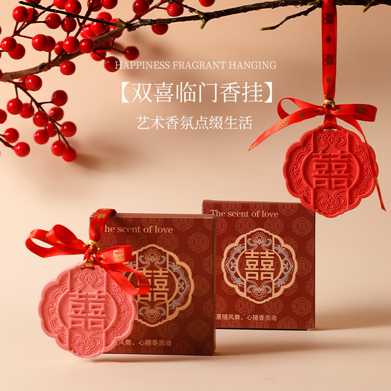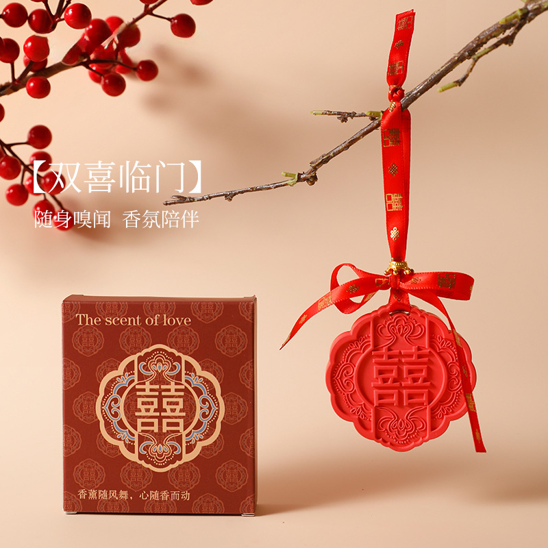 新婚礼伴手礼喜庆红色双喜香薰挂件结婚礼物盒扩香石衣柜香氛礼品