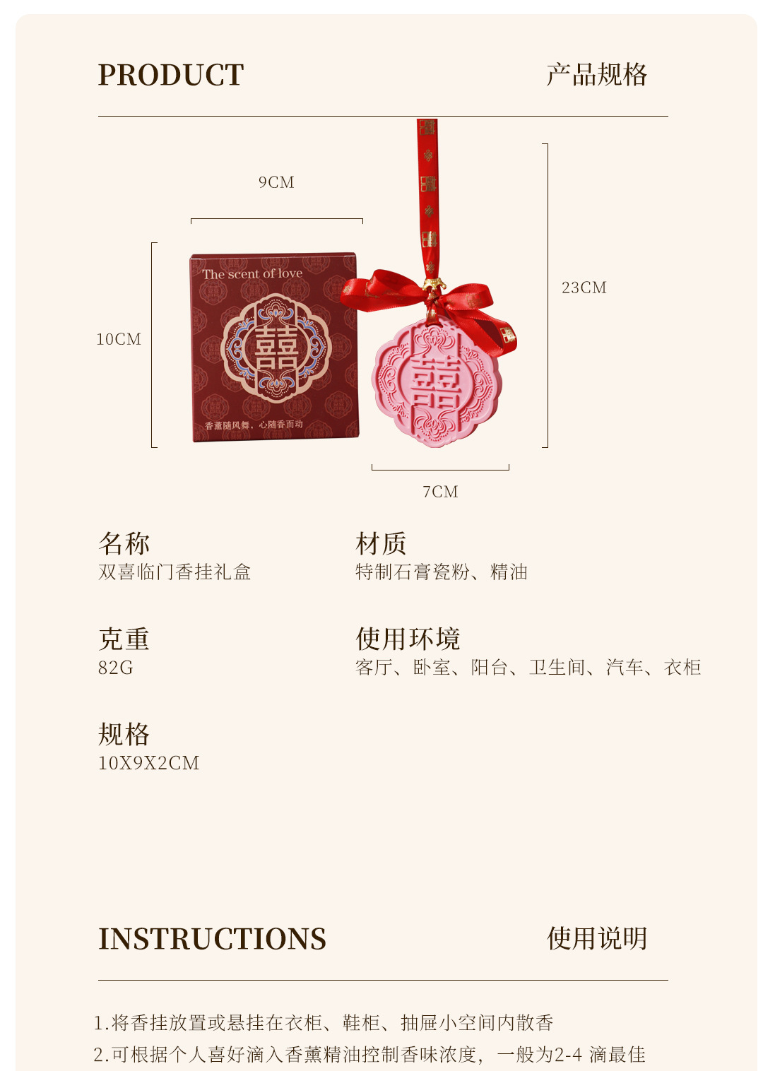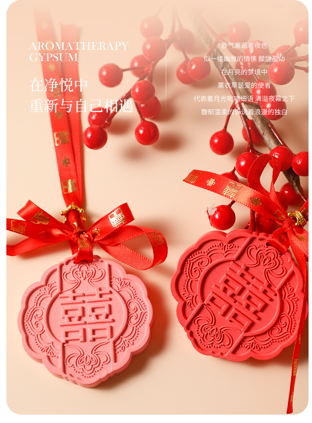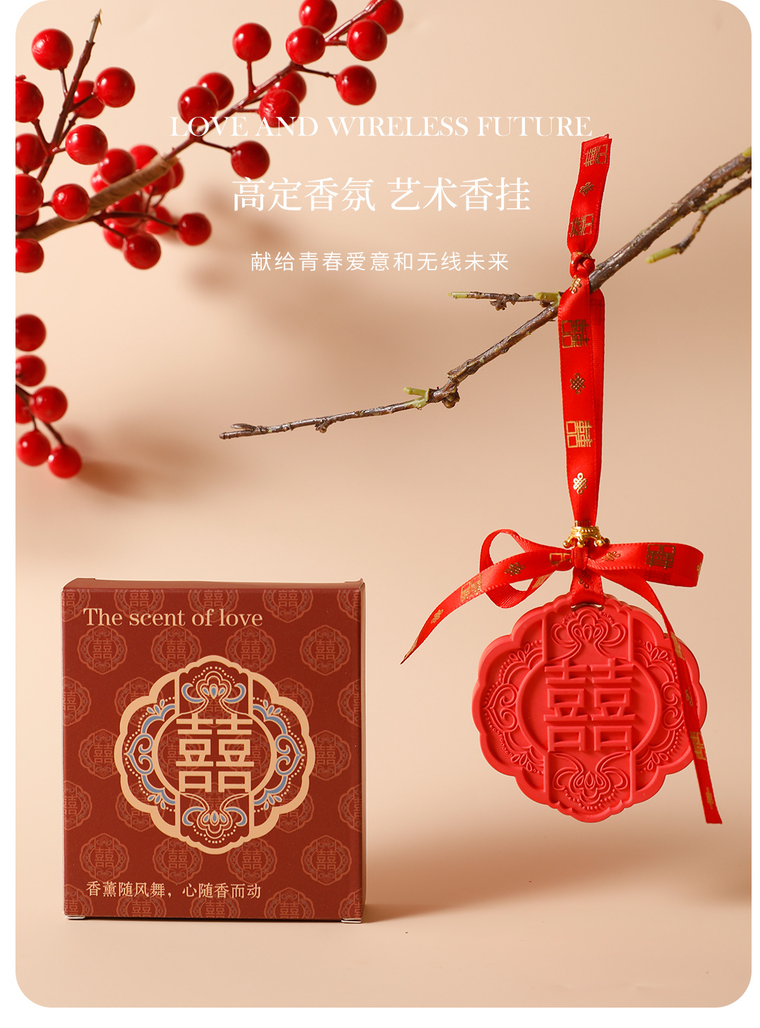 新婚礼伴手礼喜庆红色双喜香薰挂件结婚礼物盒扩香石衣柜香氛礼品