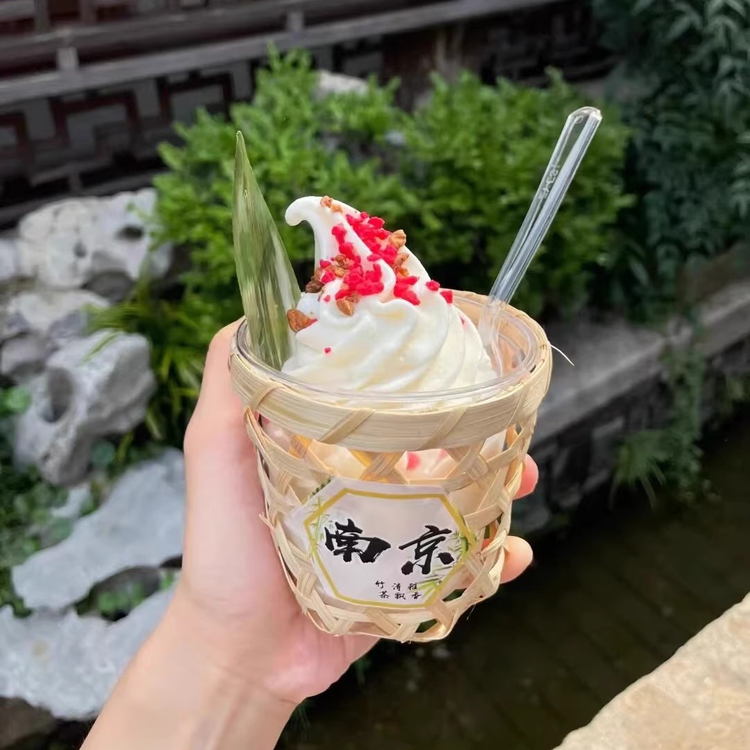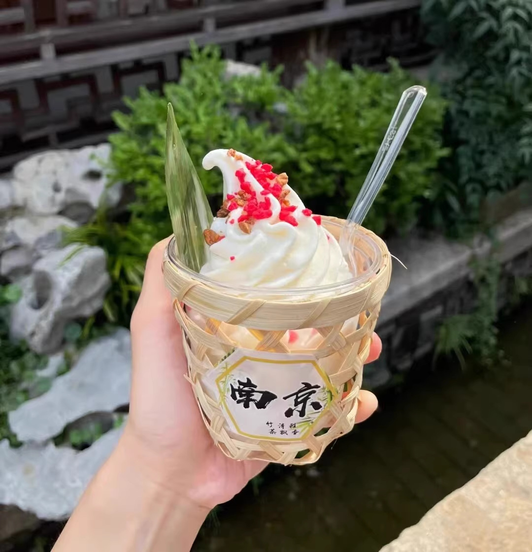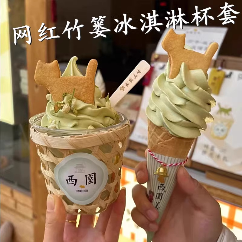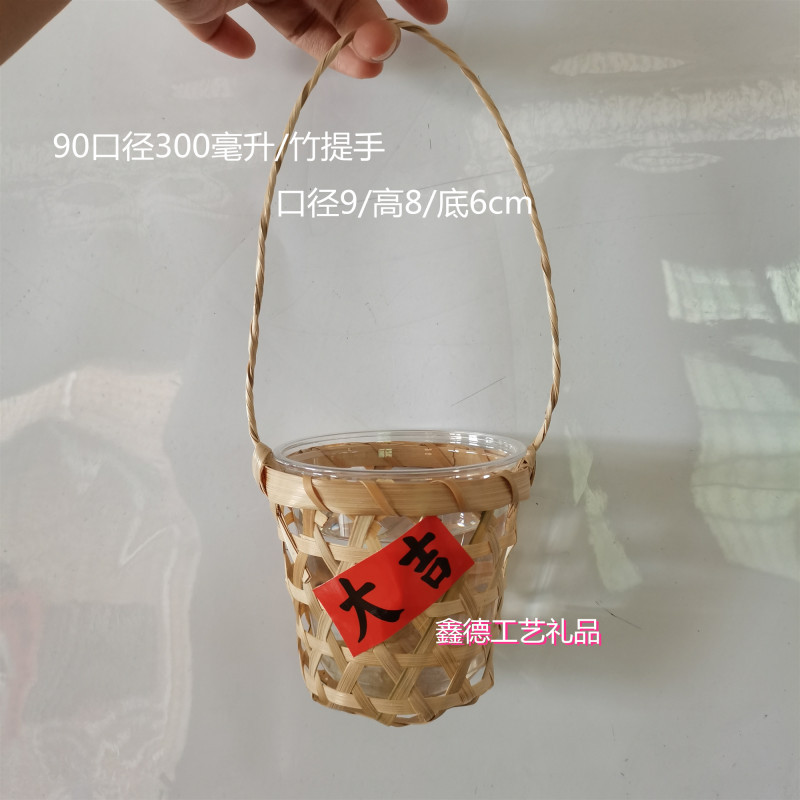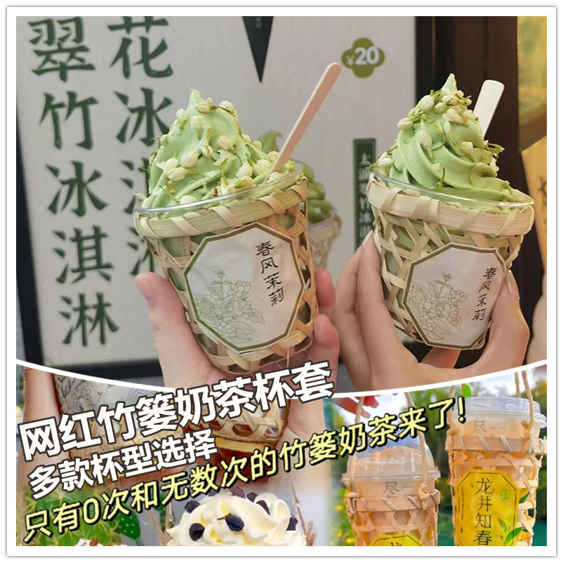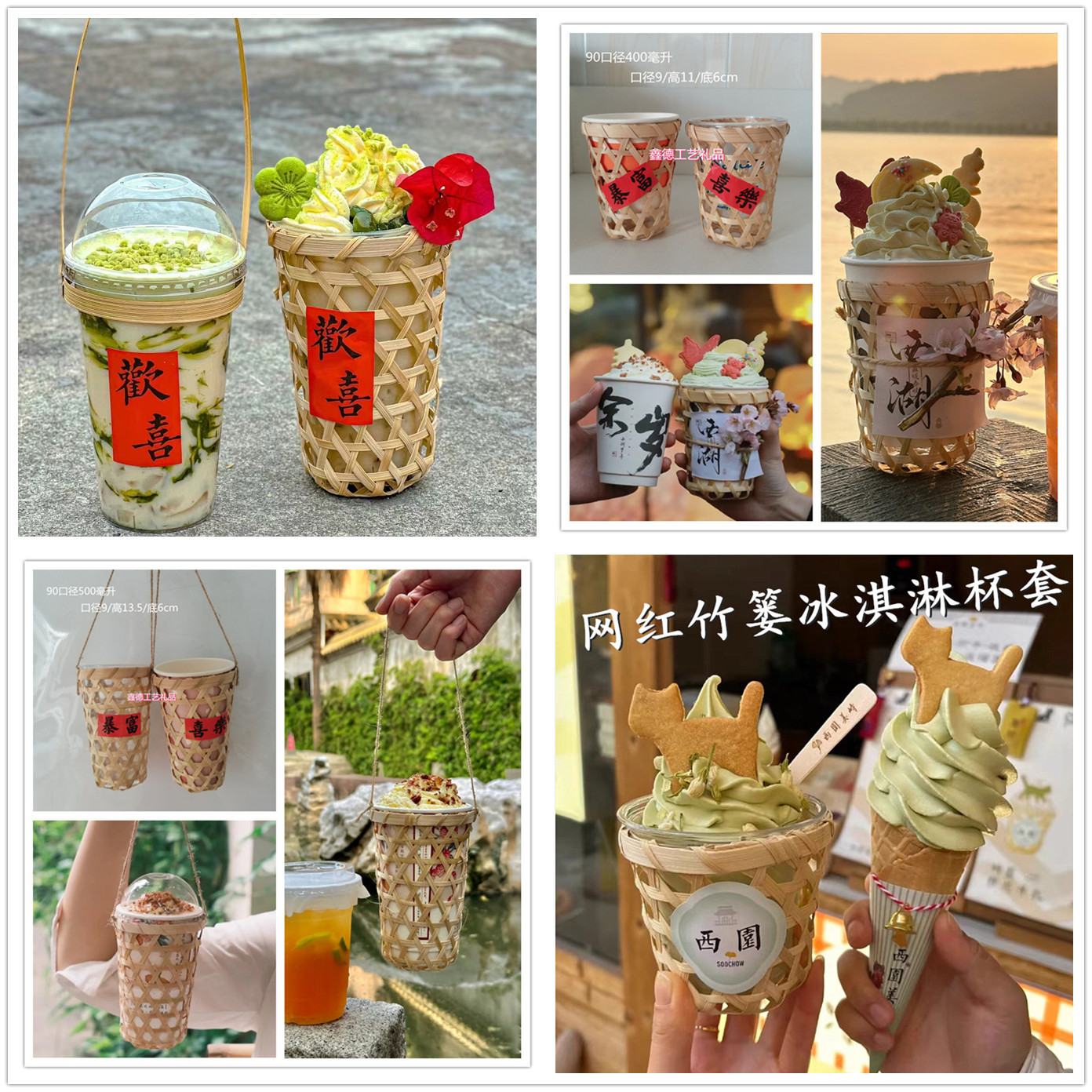网红打卡竹篮竹筒冰淇淋饮品杯套竹篓奶茶竹篓竹编杯套竹制品镂空