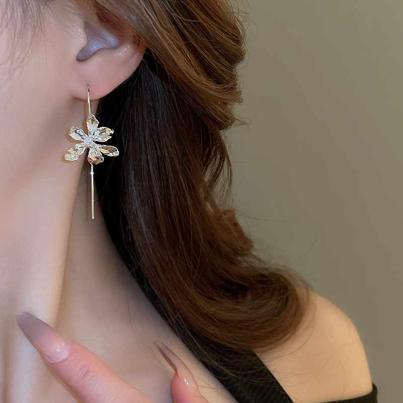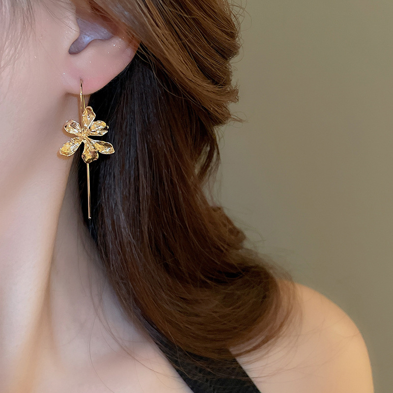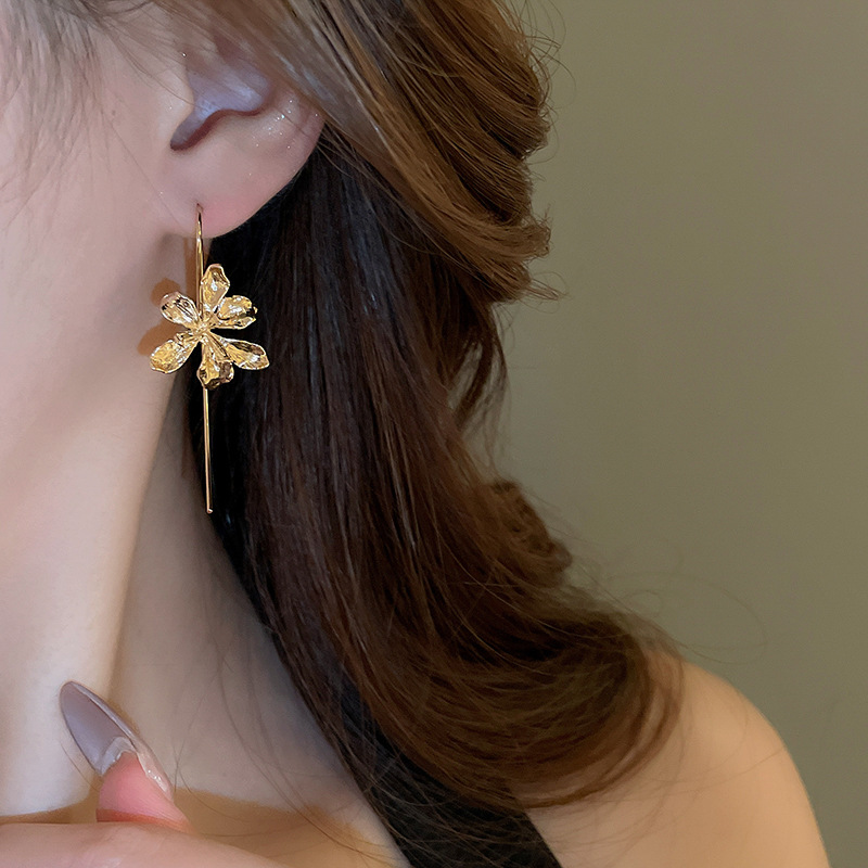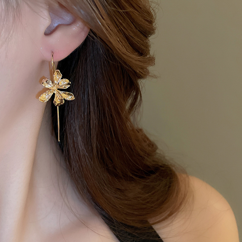 2024新款法式鸢尾花朵耳环轻奢优雅气质耳坠跨境时尚高级感耳饰女