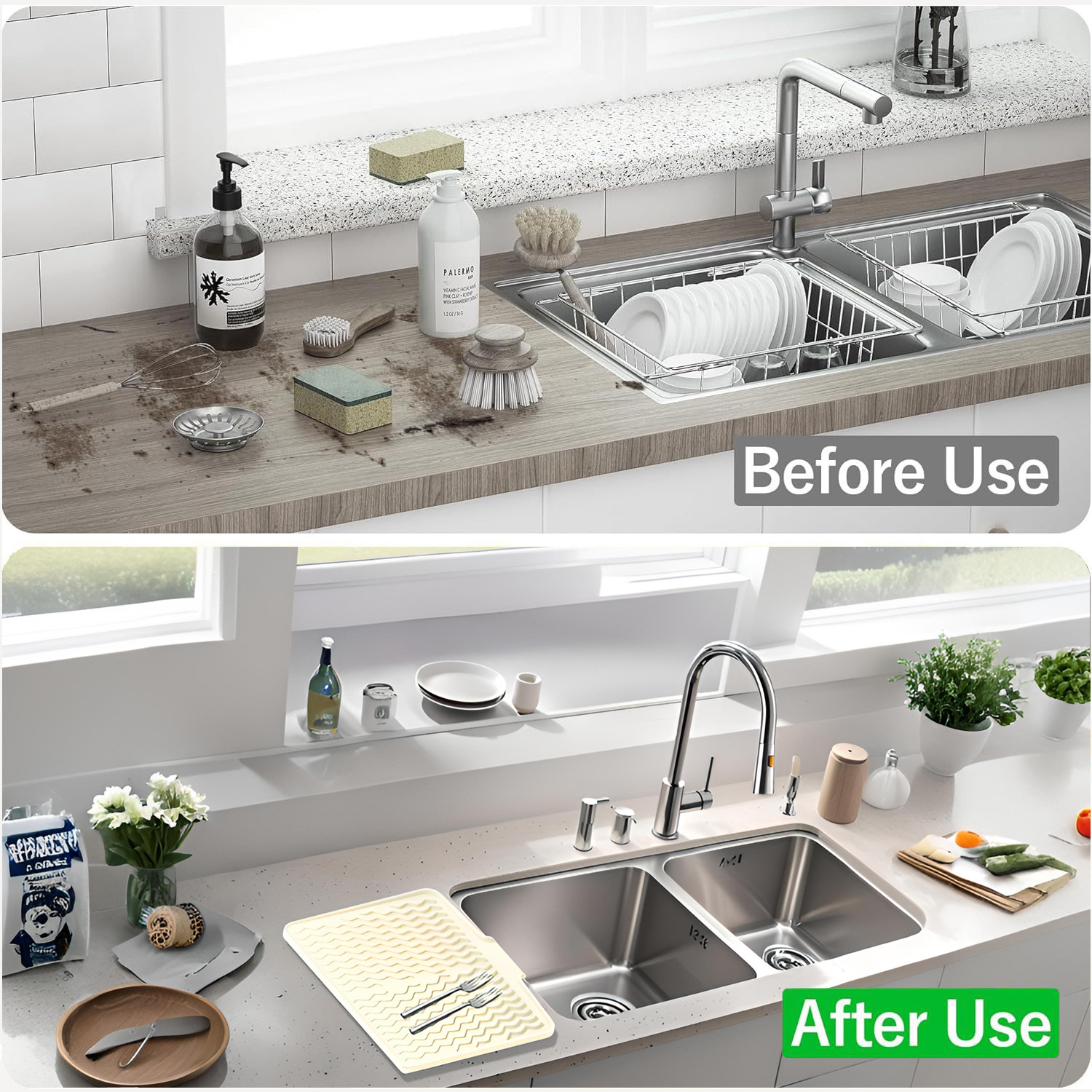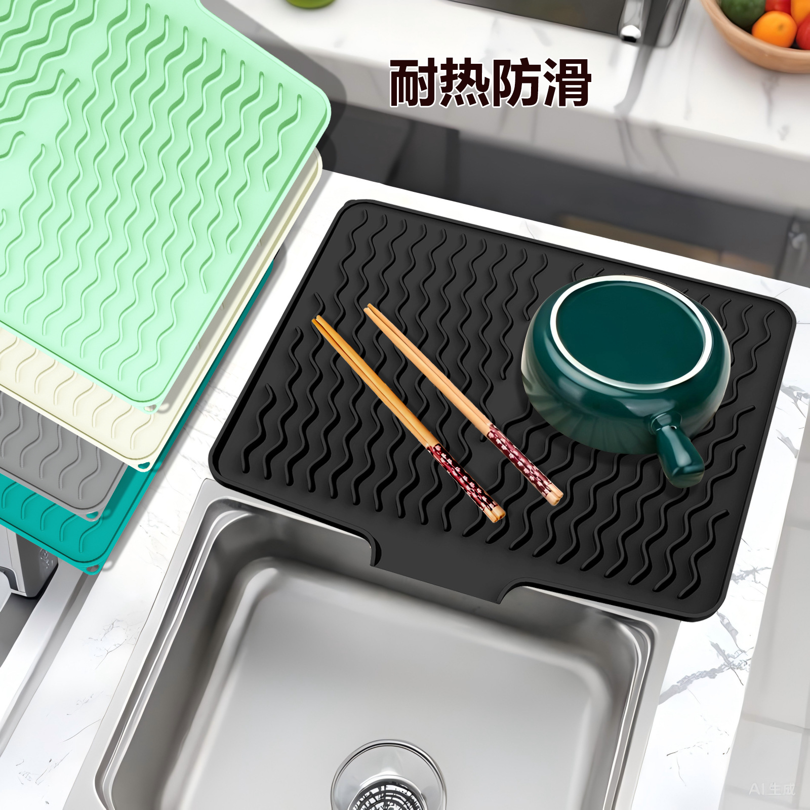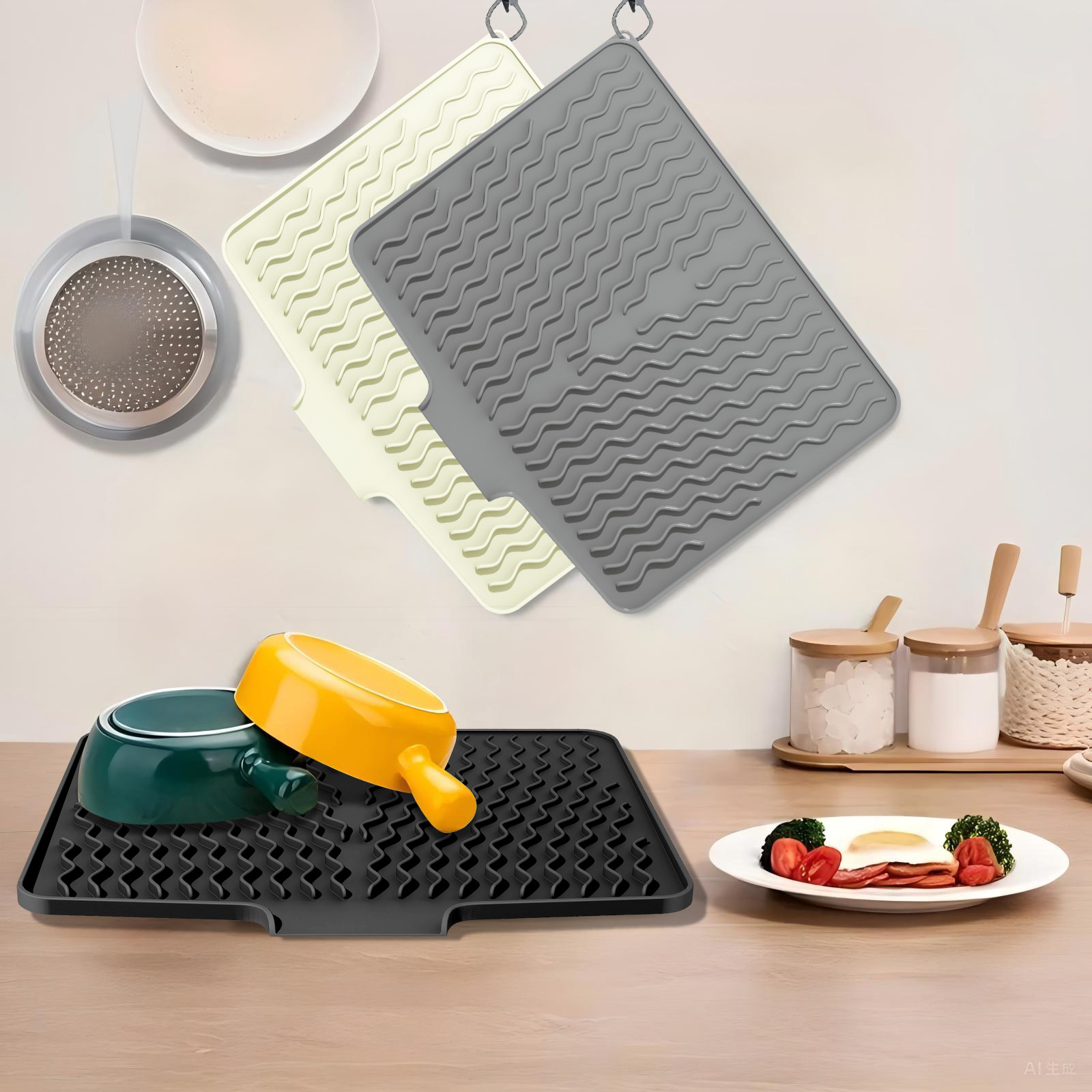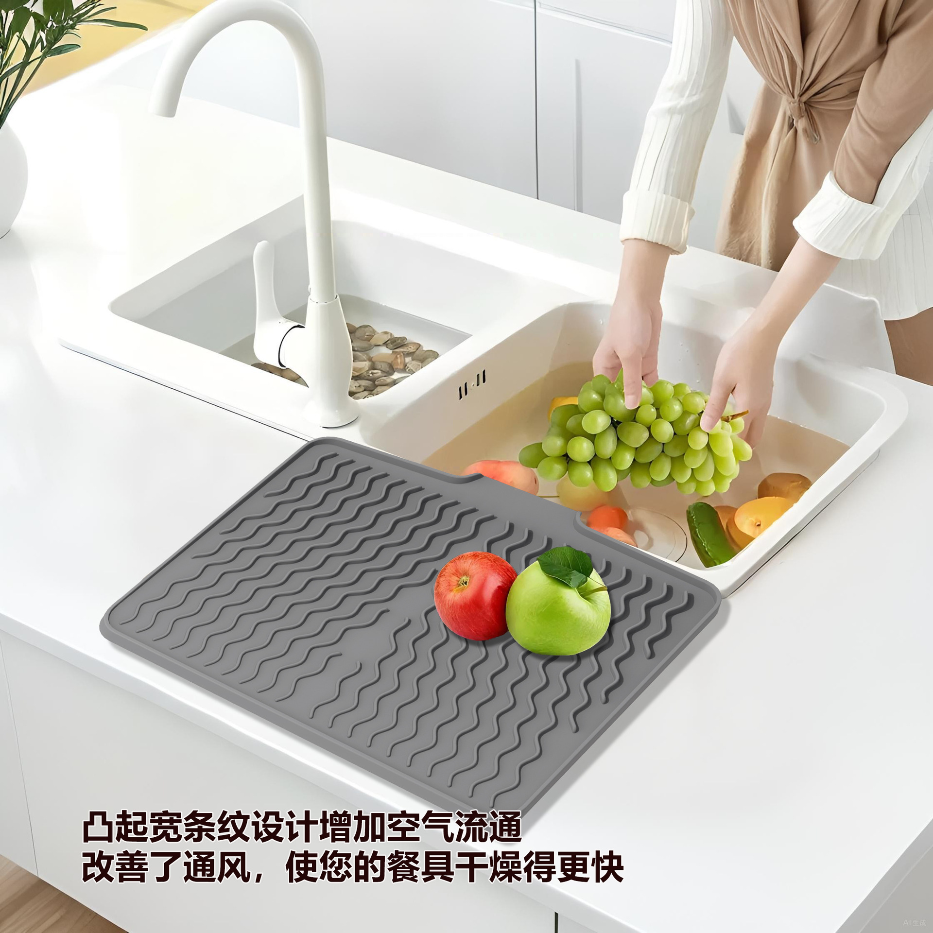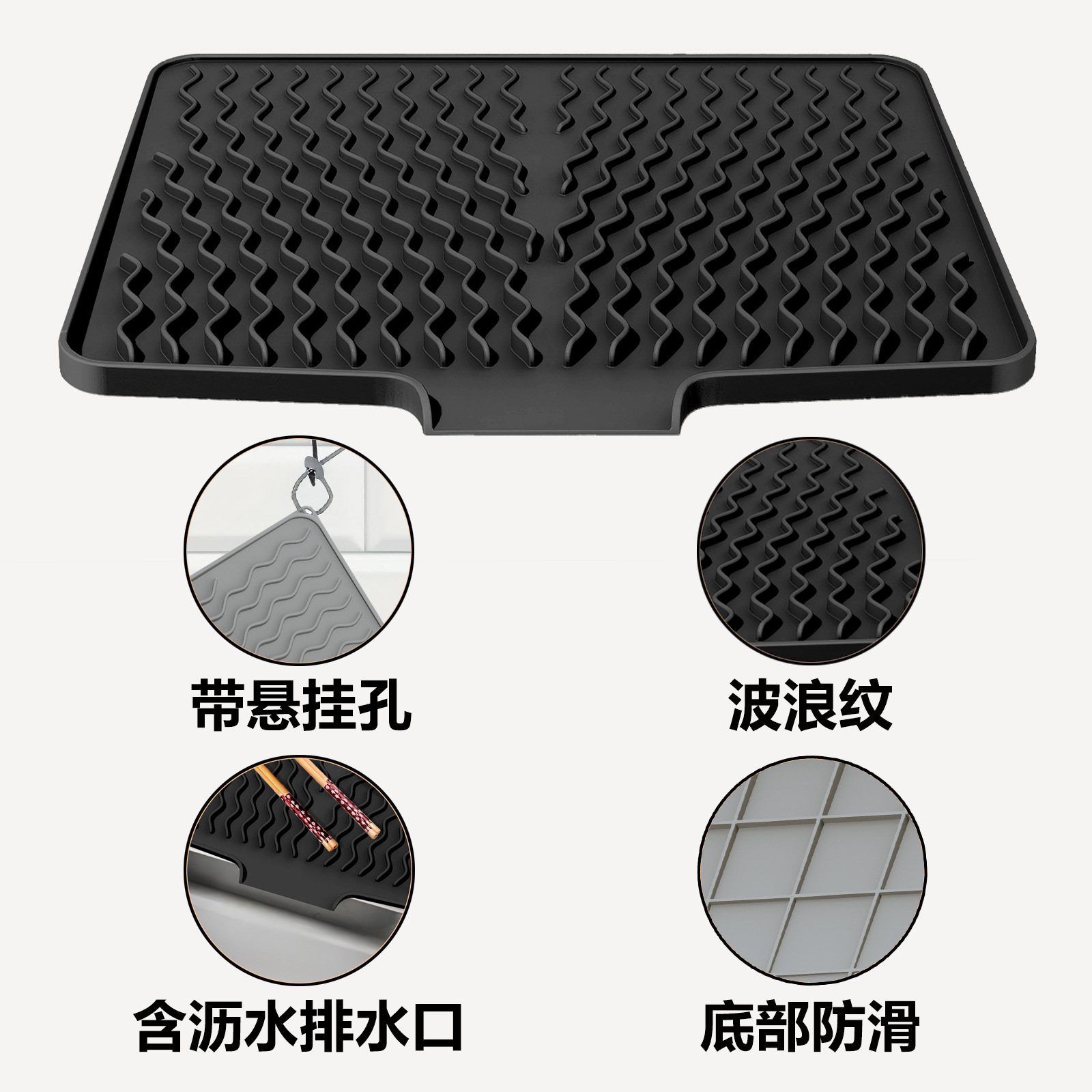 亚马逊硅胶餐具沥水垫防滑水槽垫斜坡导流碗碟干燥滤水垫隔热垫