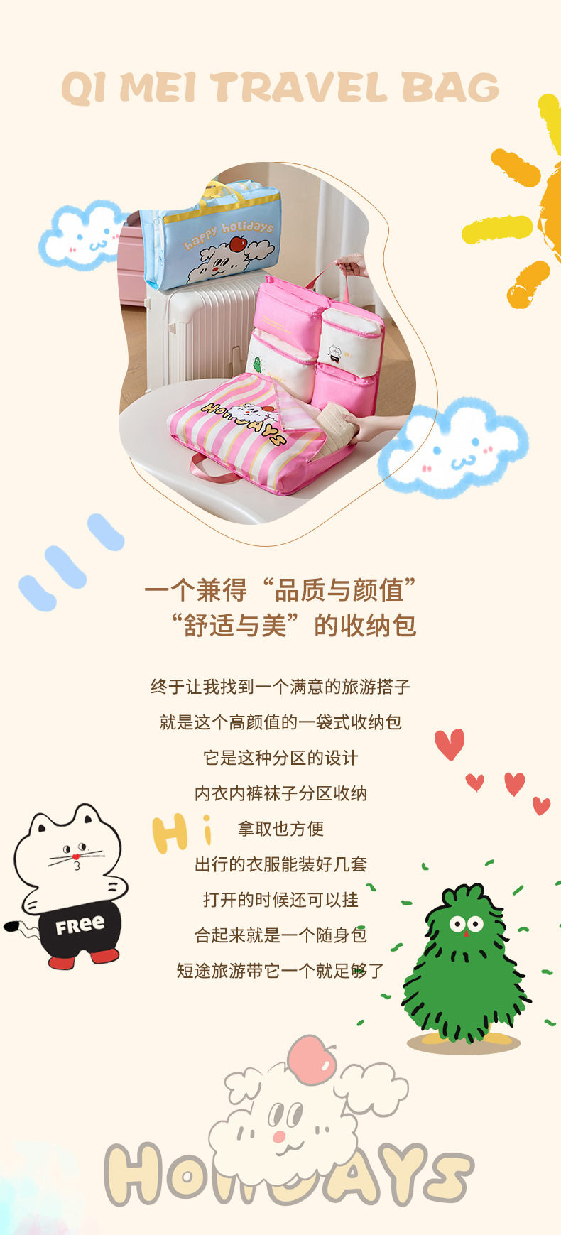 手提旅行收纳包 可折叠衣物多功能收纳袋 大容量七合一旅行收纳袋