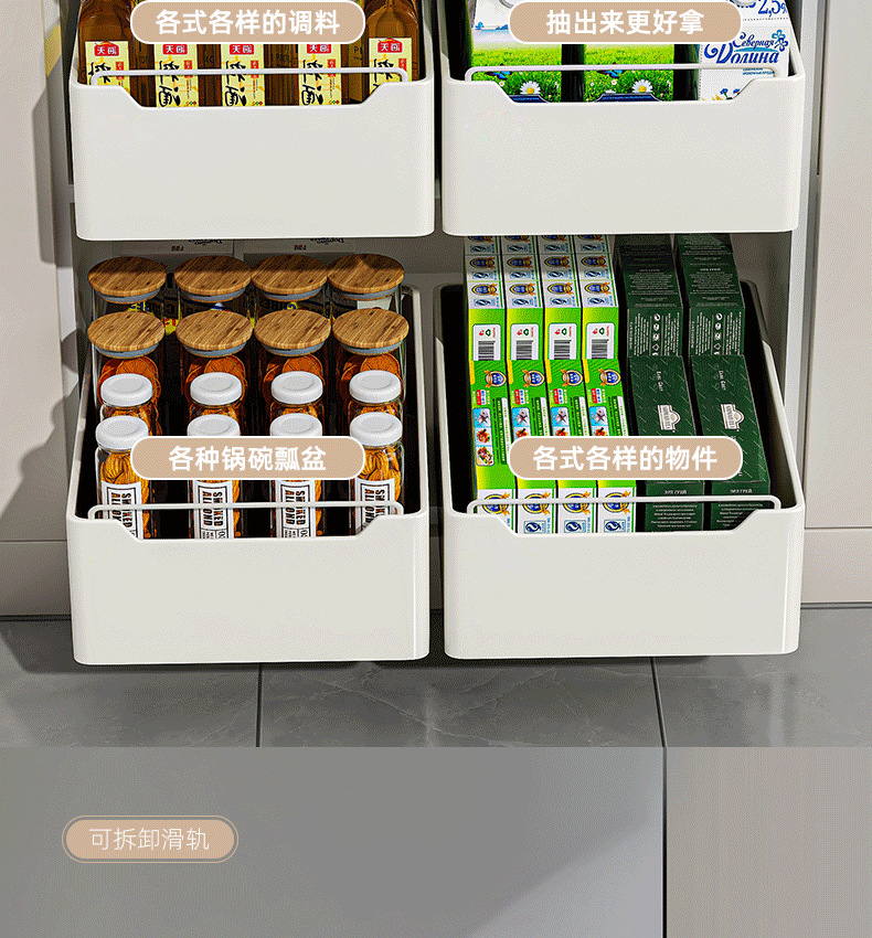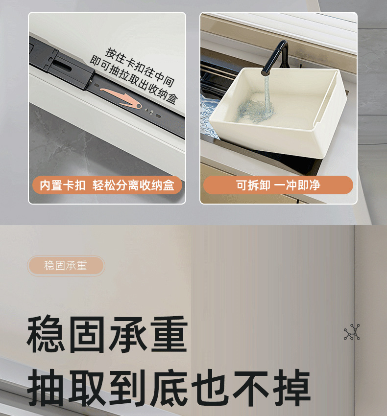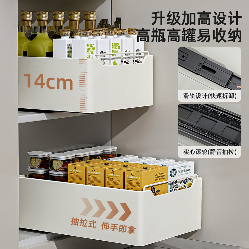 厨房抽拉式置物架橱柜内抽屉储物整理多功能收纳盒收纳筐水槽拉篮